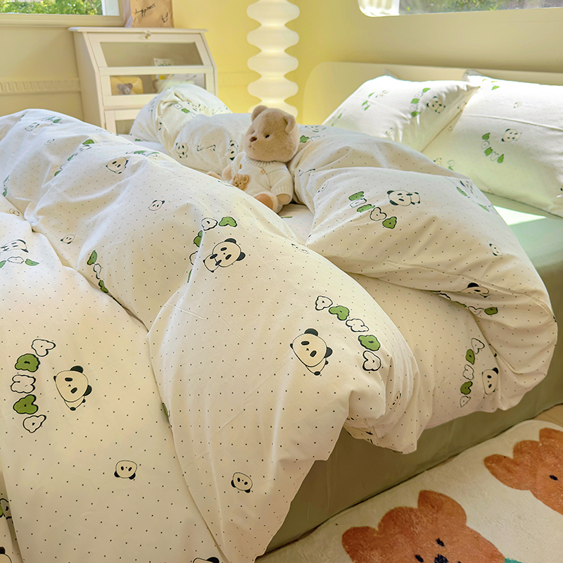 (总)田野 2025新款全棉水洗棉提花四件套,花田,花颜,帽子狗,蘑菇,飘带,泰迪狗,小树林-咖,小象,小雨点,樱桃-绿