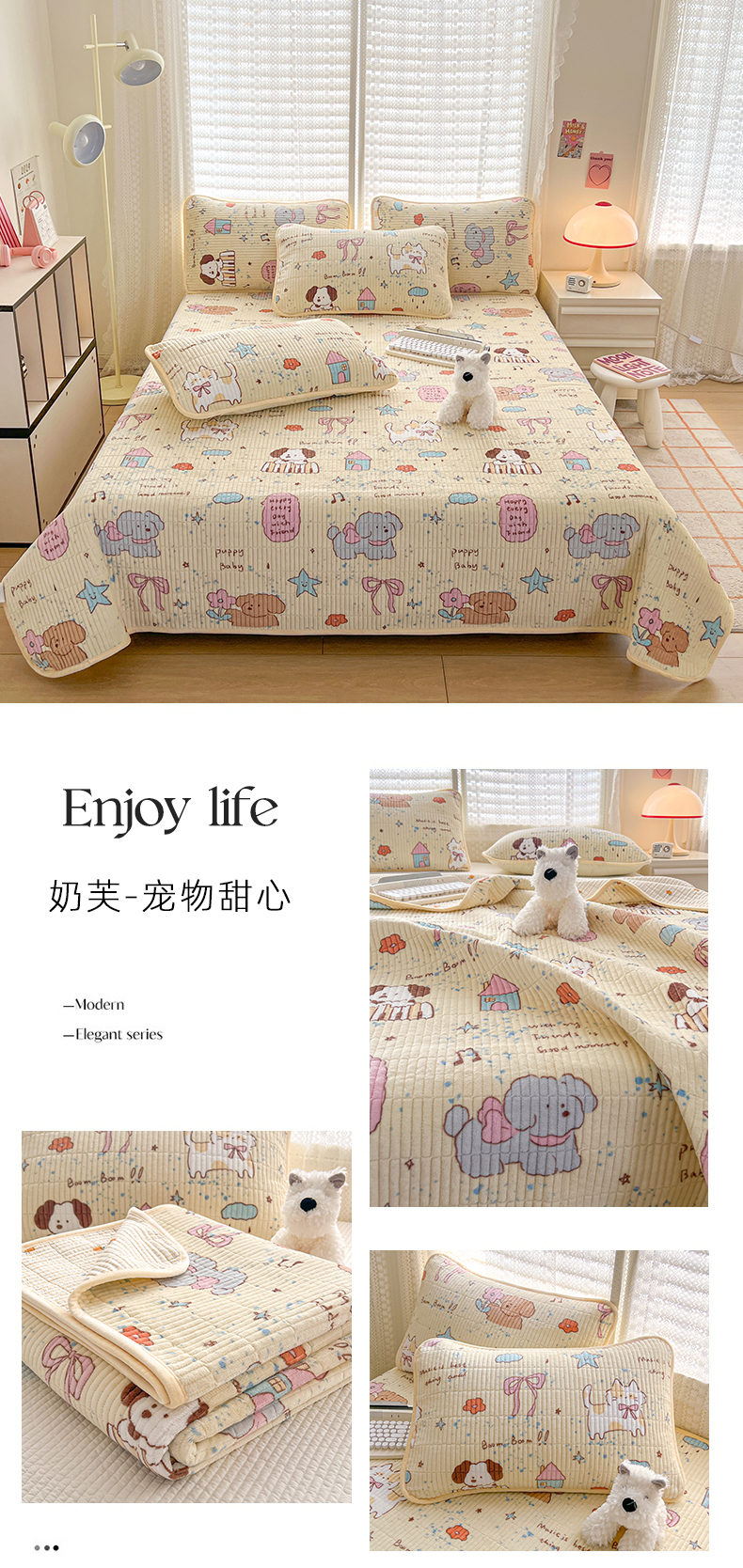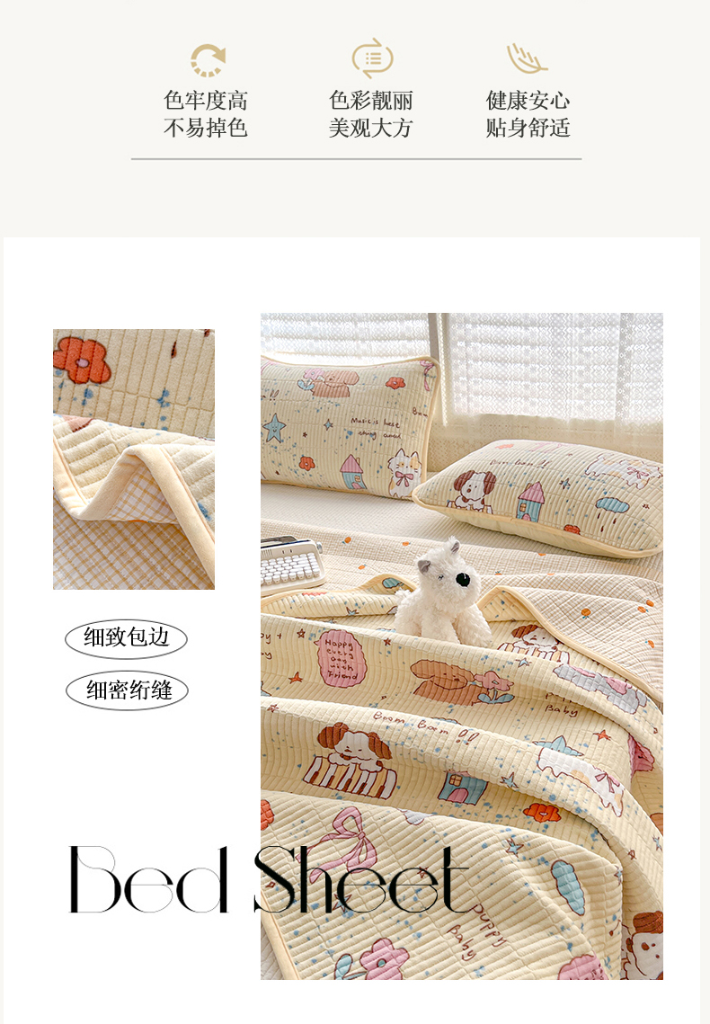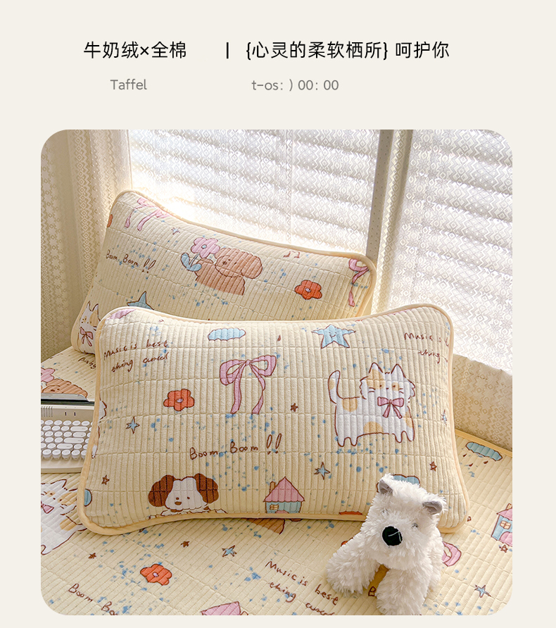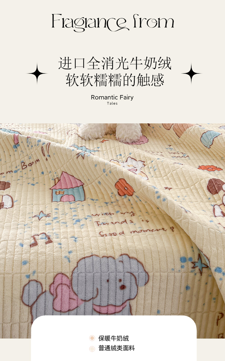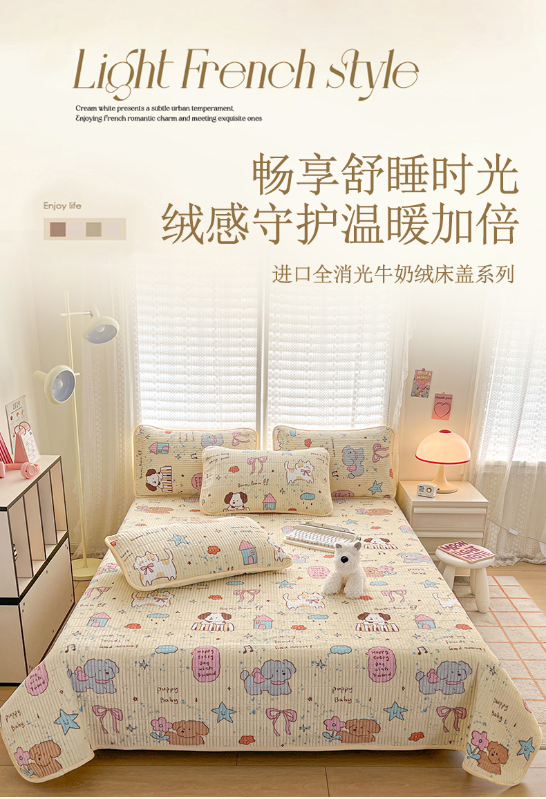 • 91家纺网 家纺一手货源 找家纺 茉夕家纺 2024新款奶芙纯棉印花牛奶绒水洗床盖 奶芙-宠物甜心
