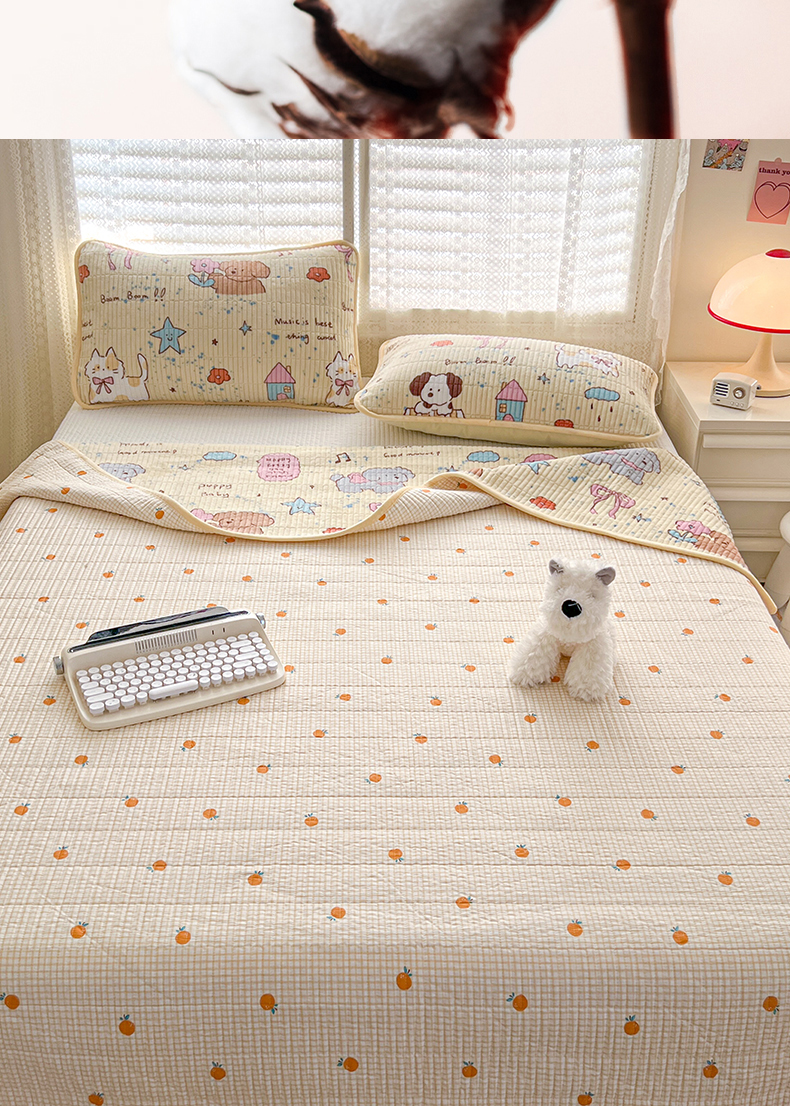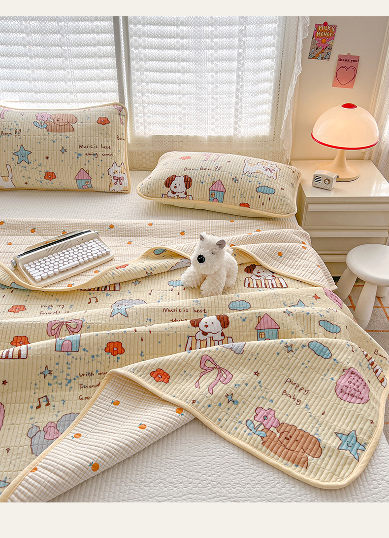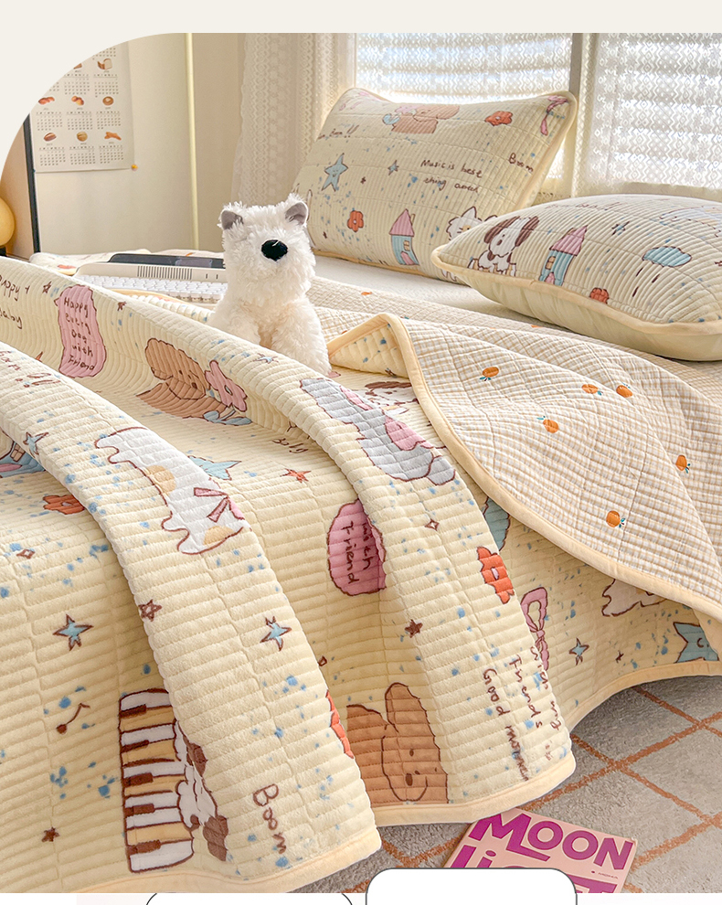 茉夕家纺 2024新款奶芙纯棉印花牛奶绒水洗床盖 奶芙-宠物甜心