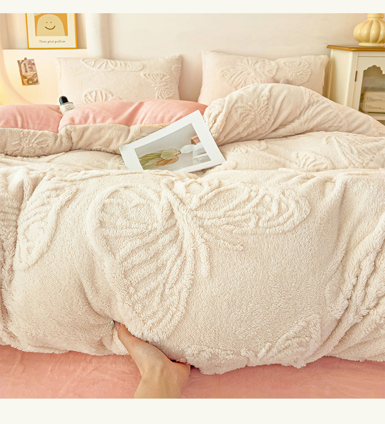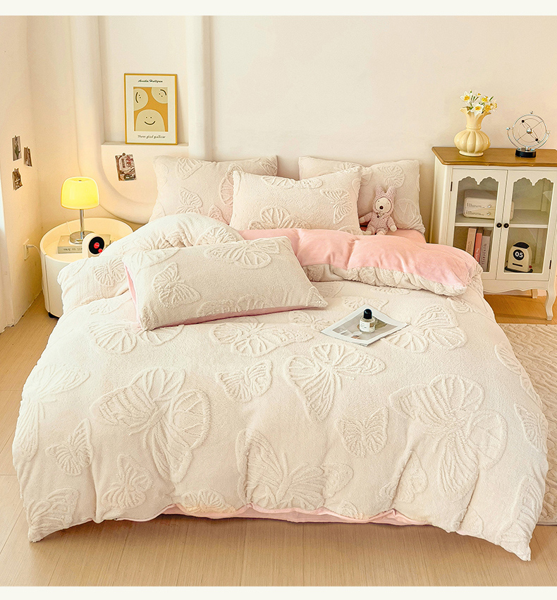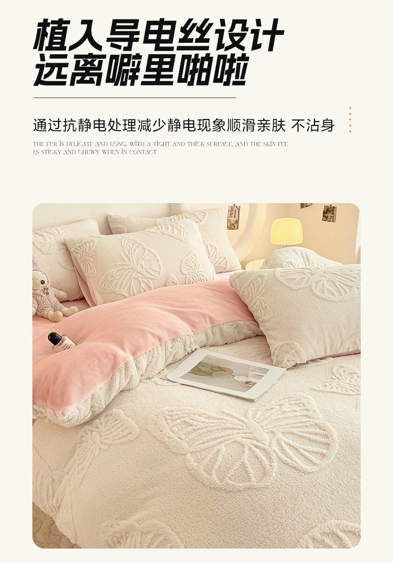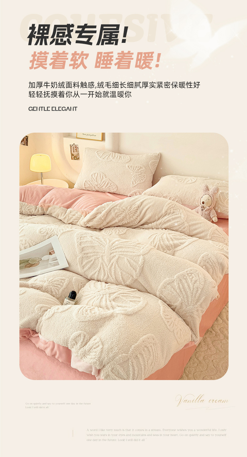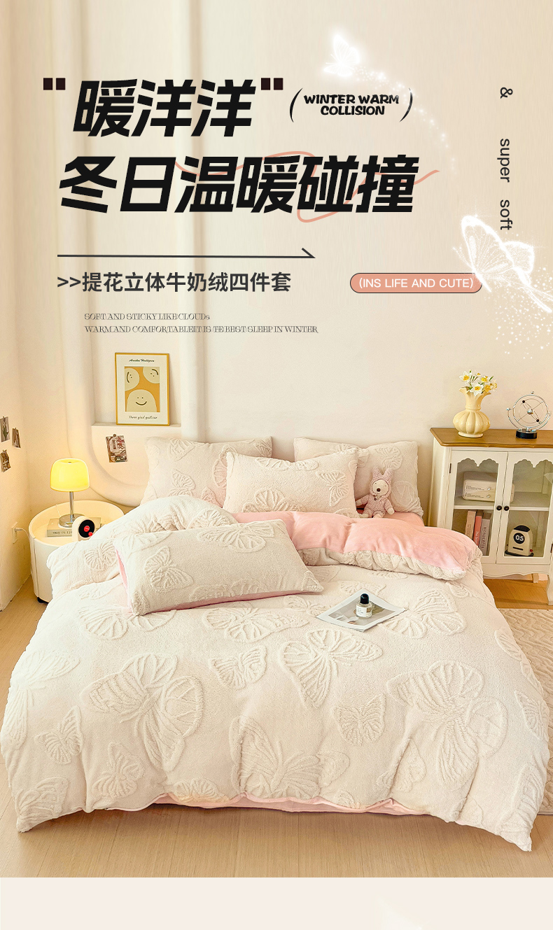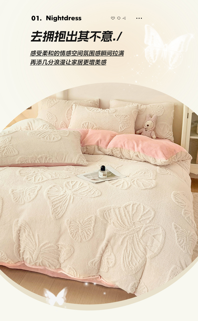 当前位置: 91家纺网 > 商品网购 > 床品套件 > 四件套 > 牛奶绒四件套 > 梦之岛 2024新款高克重提花雕花牛奶绒四件套 蝴蝶公主-白粉