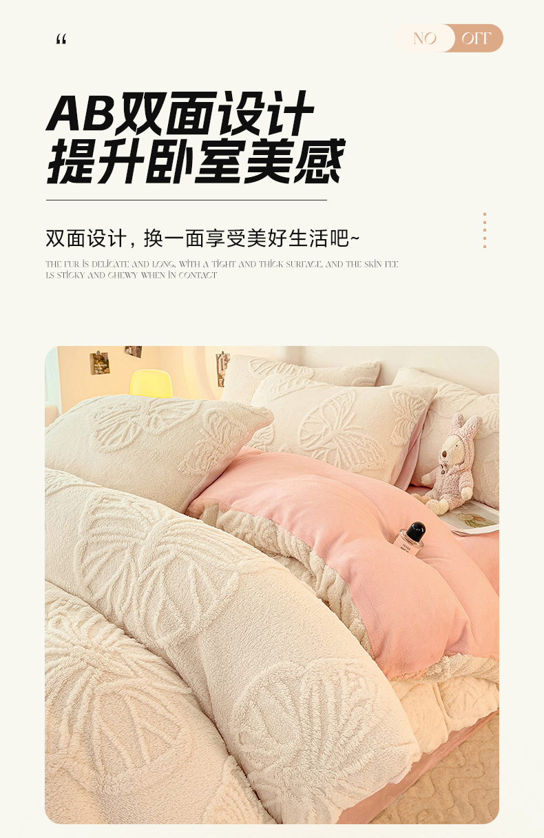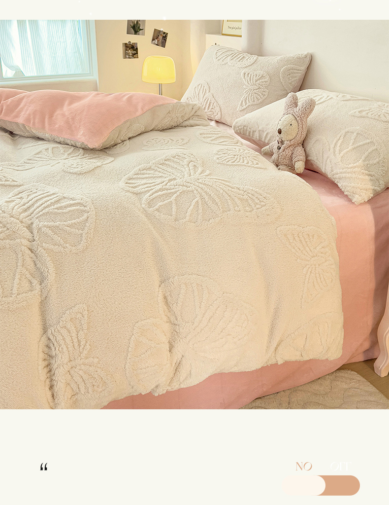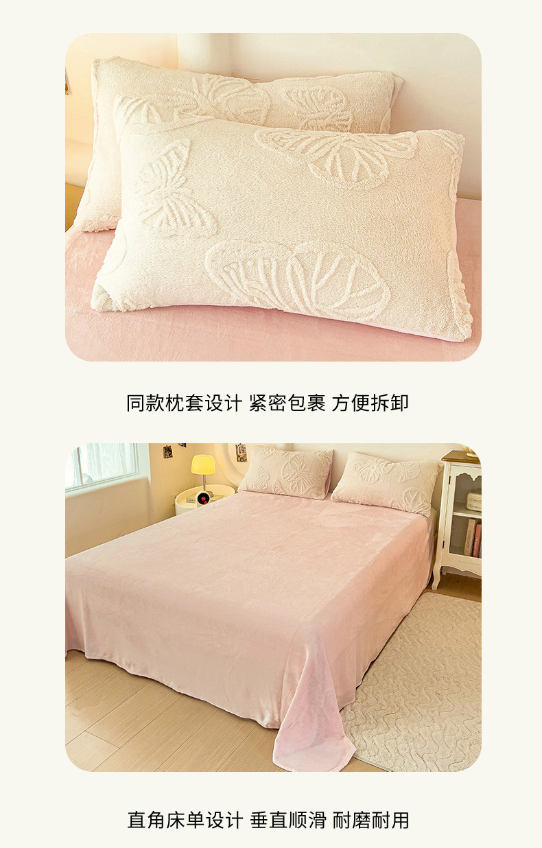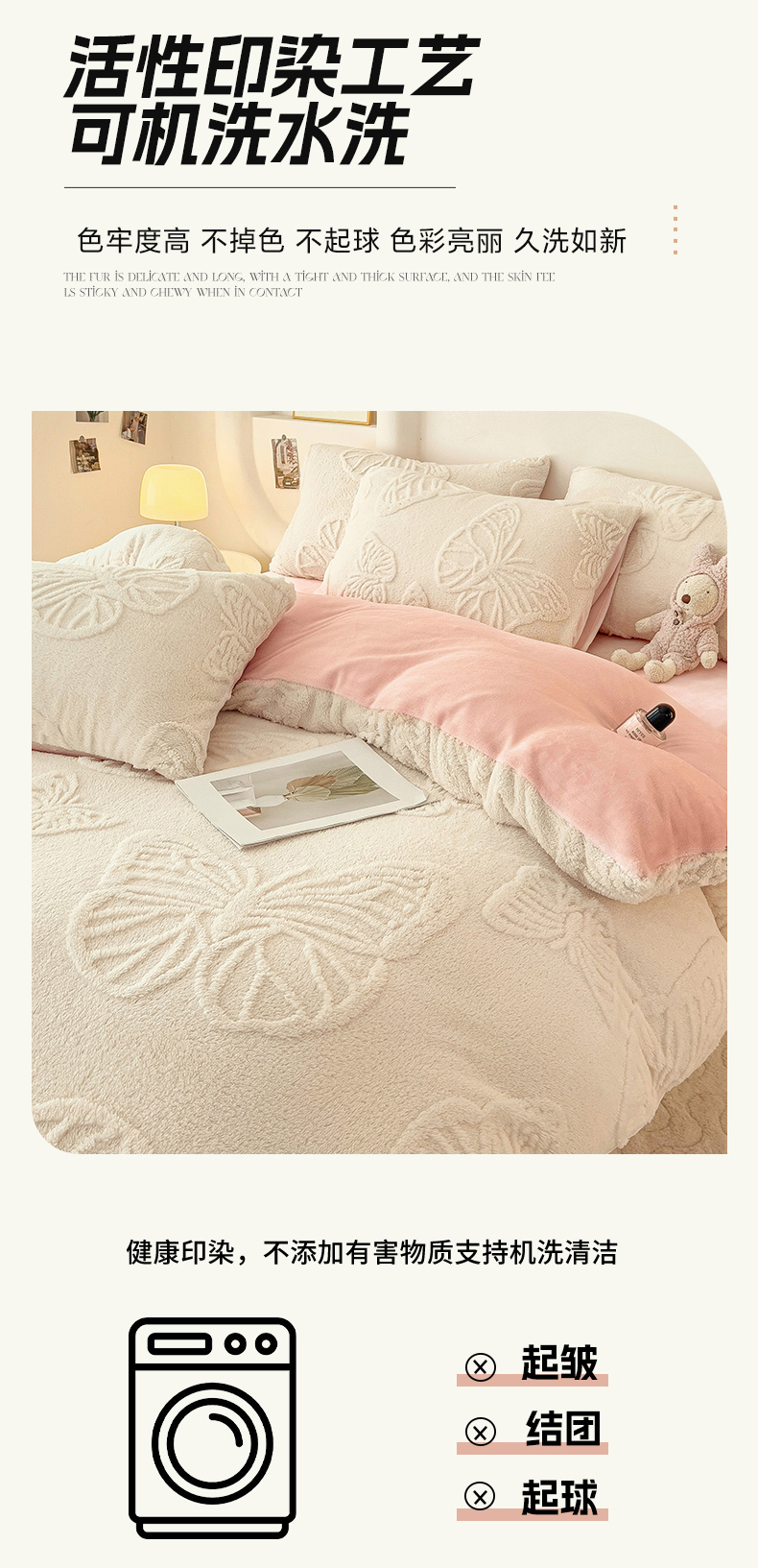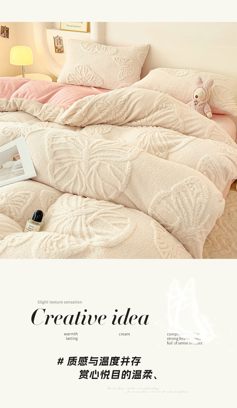 当前位置: 91家纺网 > 商品网购 > 床品套件 > 四件套 > 牛奶绒四件套 > 梦之岛 2024新款高克重提花雕花牛奶绒四件套 蝴蝶公主-白粉