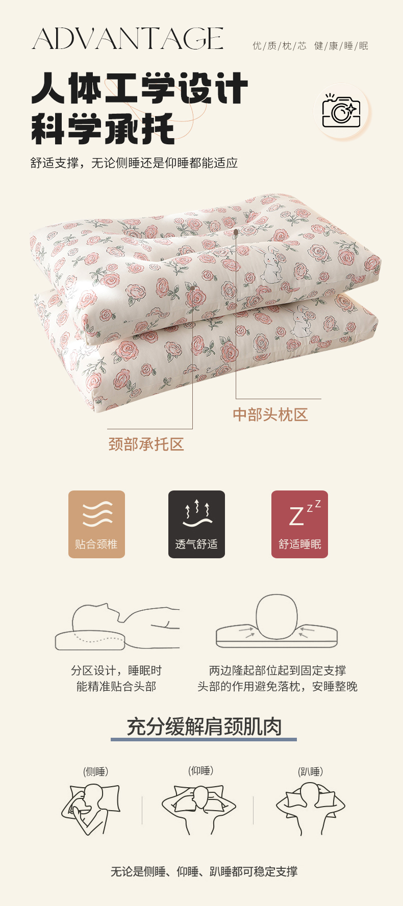 当前位置: 91家纺网 > 商品网购 > 枕头/枕芯/保健枕/颈椎枕 > 普通枕芯 > 圣楚家纺 2024新款云朵护颈枕枕头枕芯45*60cm 花香