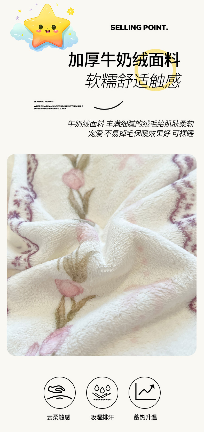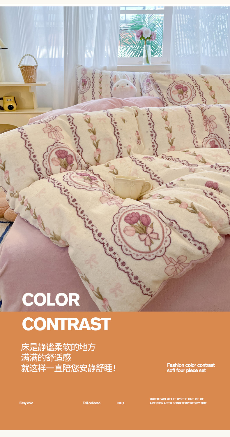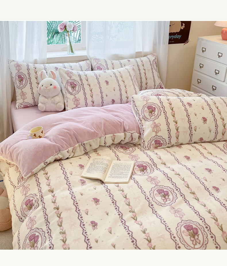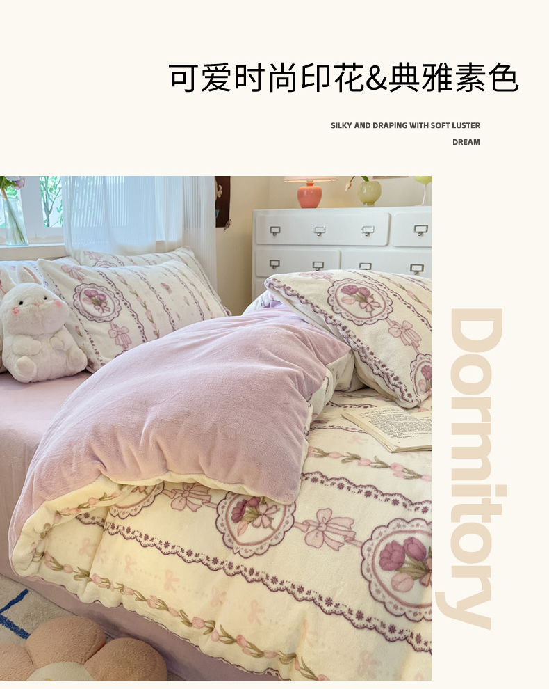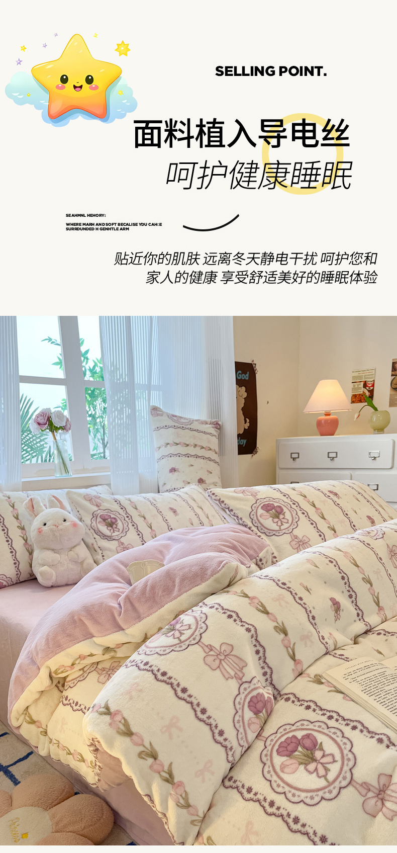 当前位置: 91家纺网 > 商品网购 > 床品套件 > 四件套 > 牛奶绒四件套 > 慕澄家纺 2024新款小清新可爱印花牛奶绒加厚保暖四件套 竖条花