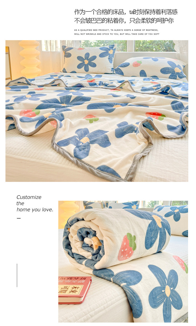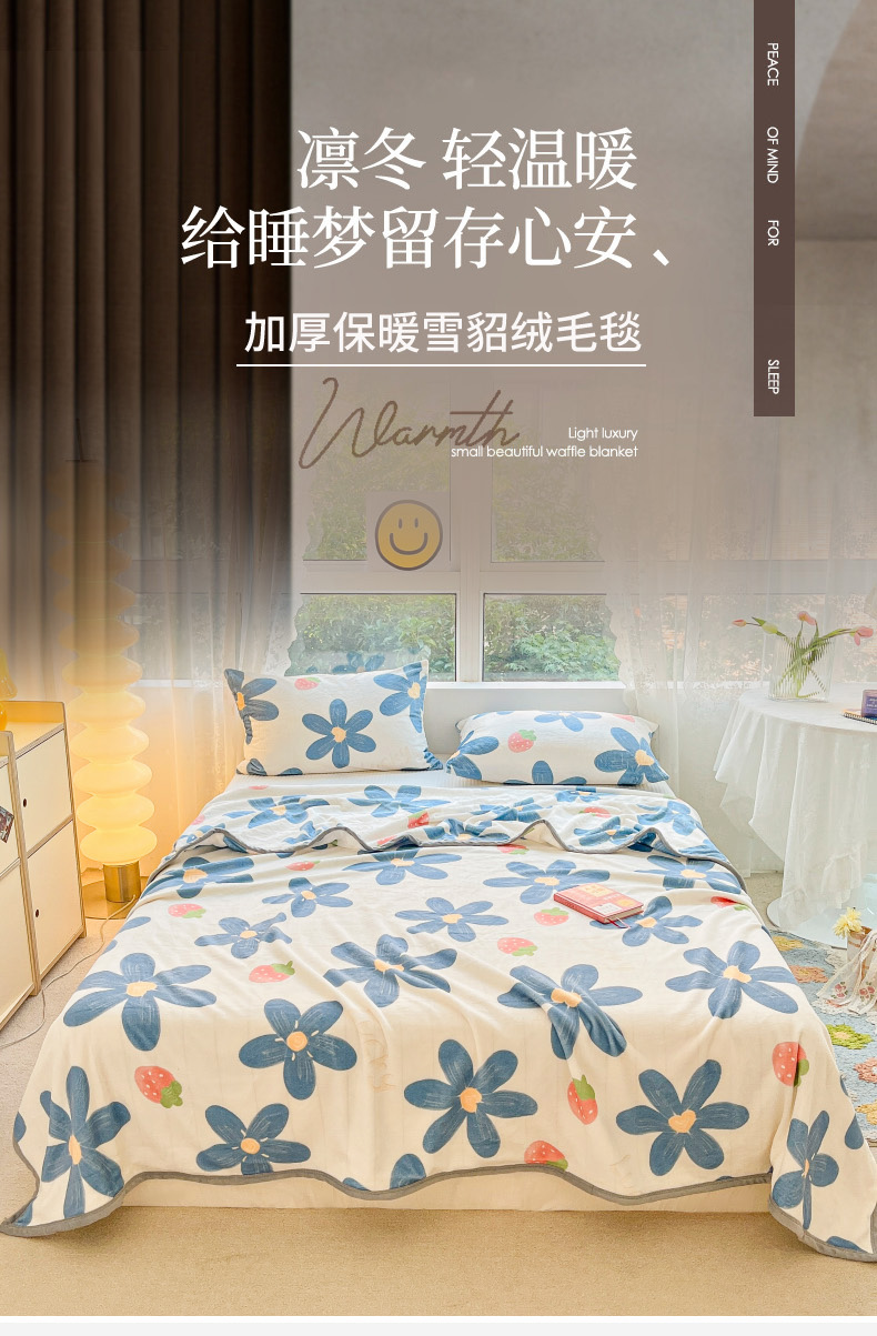 当前位置: 91家纺网 > 商品网购 > 毛毯休闲毯绒毯 > 毛毯 > 慕尚家纺 2025新款雪貂绒高克重300g毛毯家用毛毯 草莓蓝花