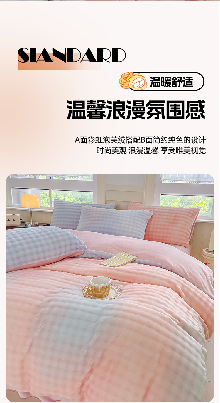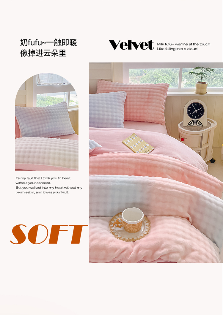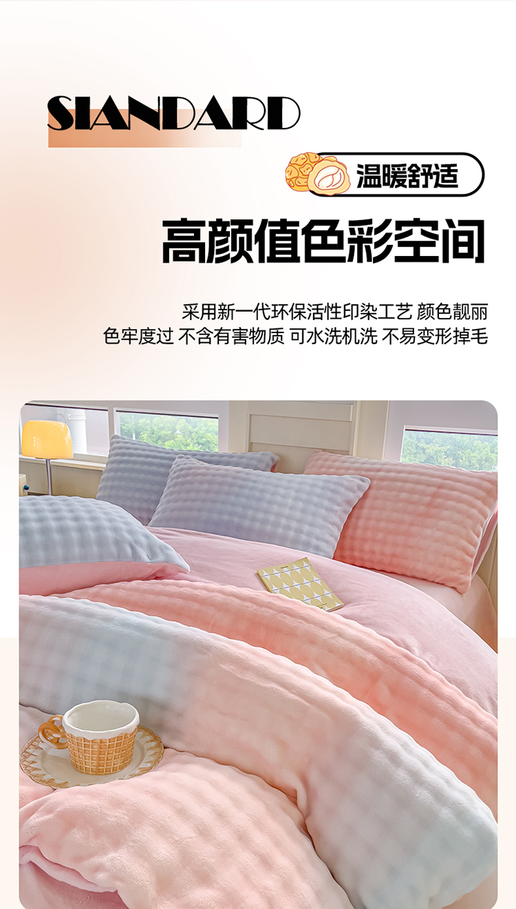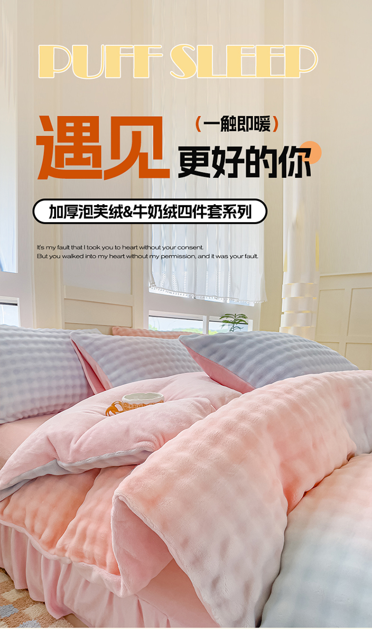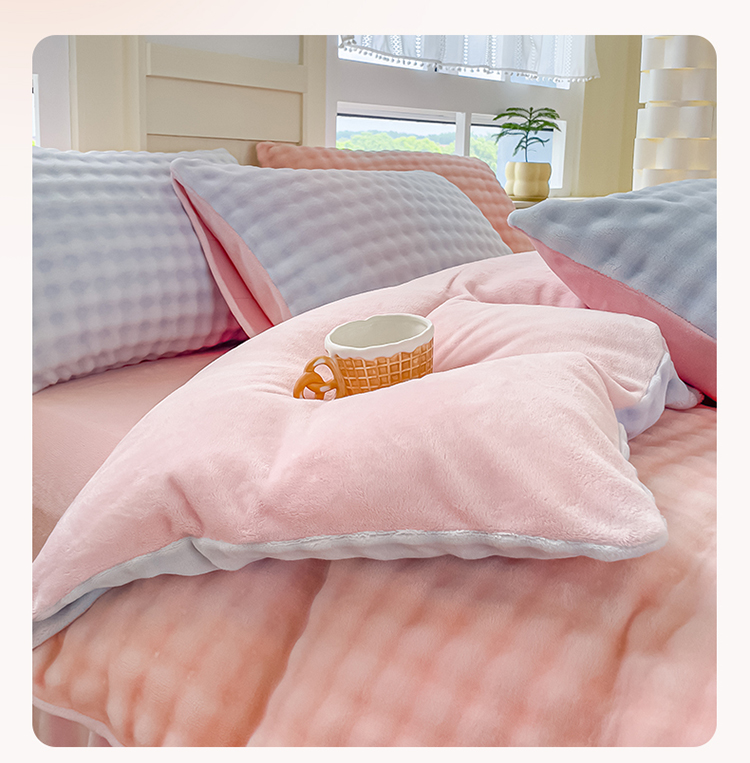 言熙居2024新款-A面泡芙绒B面全消光8到9斤牛奶绒三四件套 泡芙-粉蓝