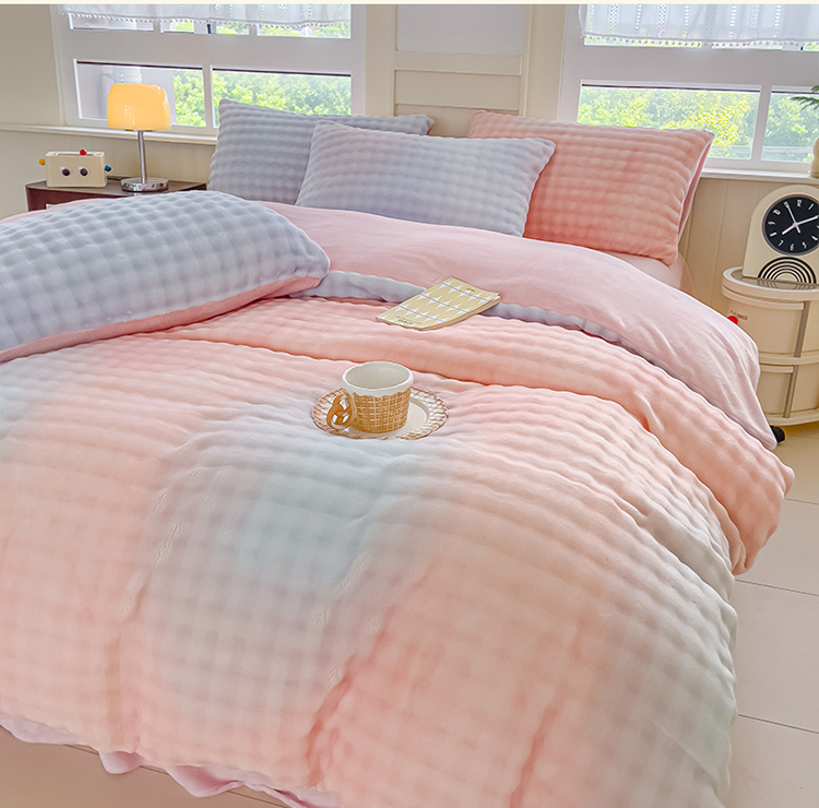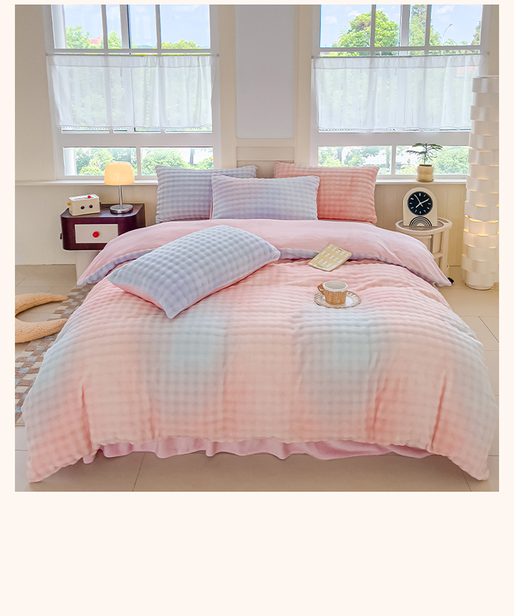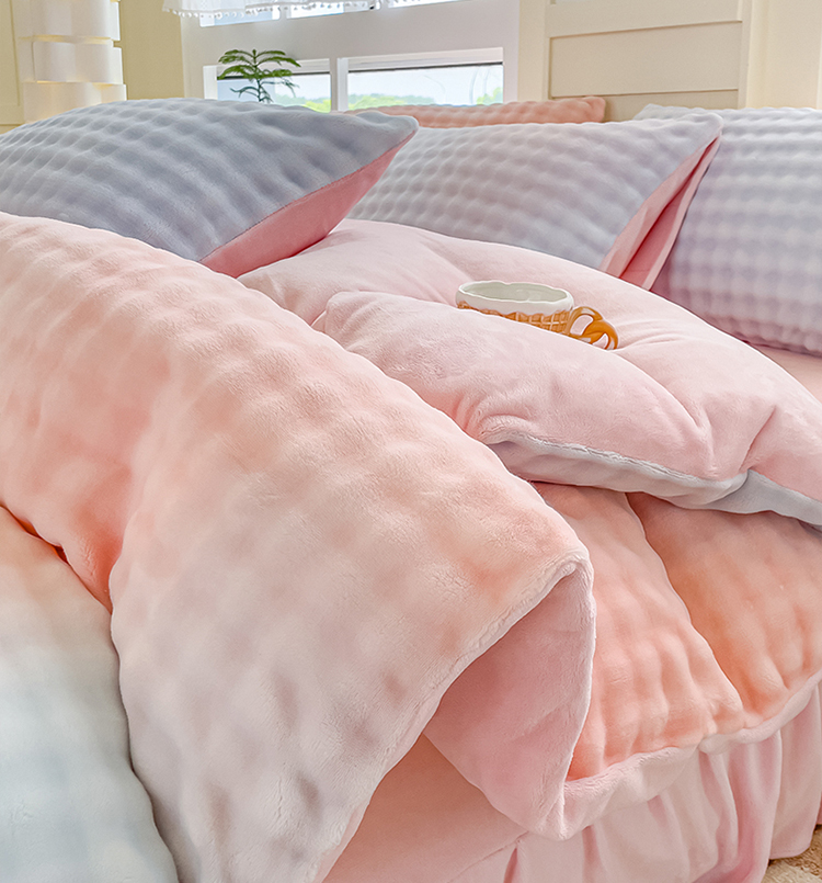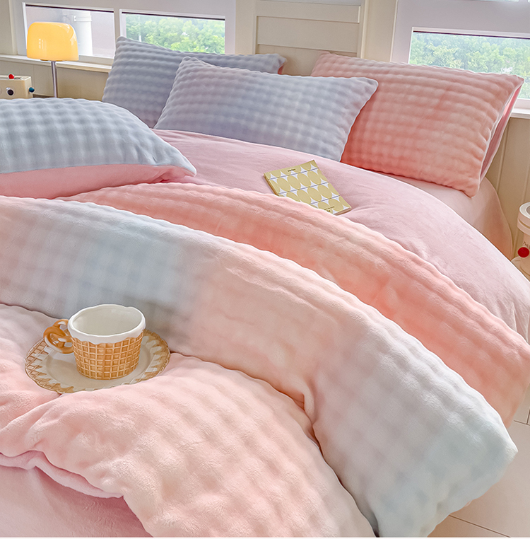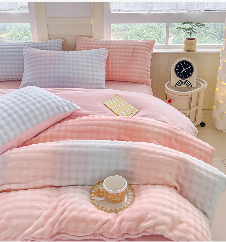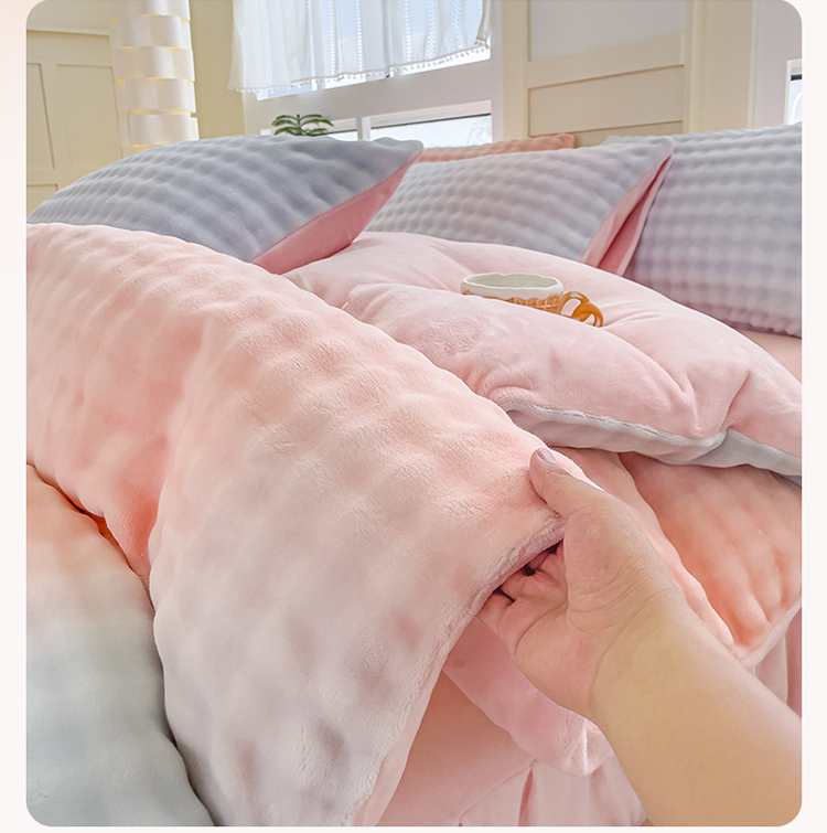 言熙居2024新款-A面泡芙绒B面全消光8到9斤牛奶绒三四件套 泡芙-粉蓝