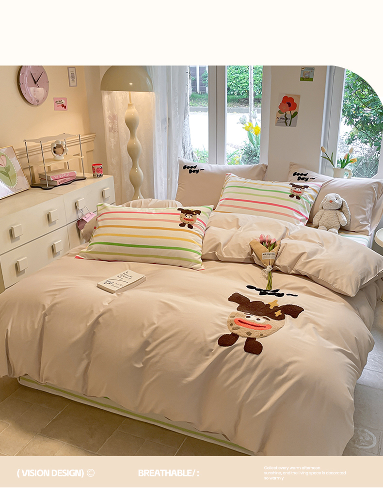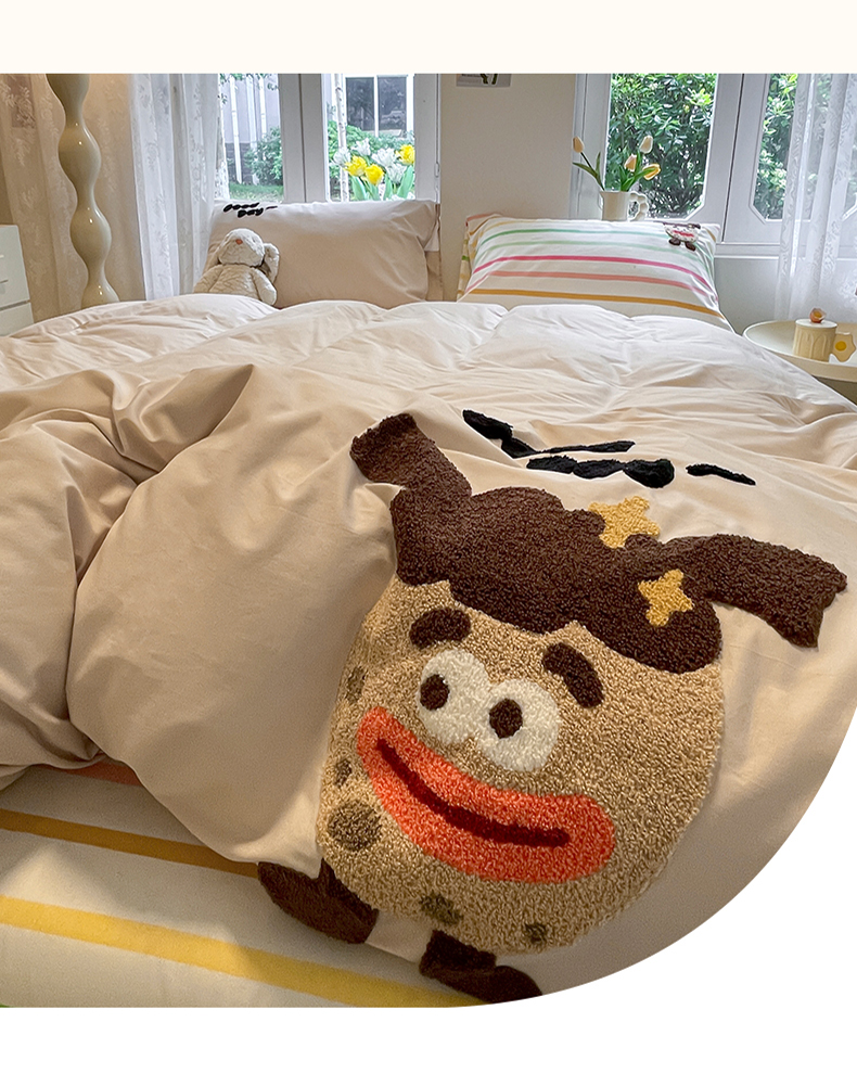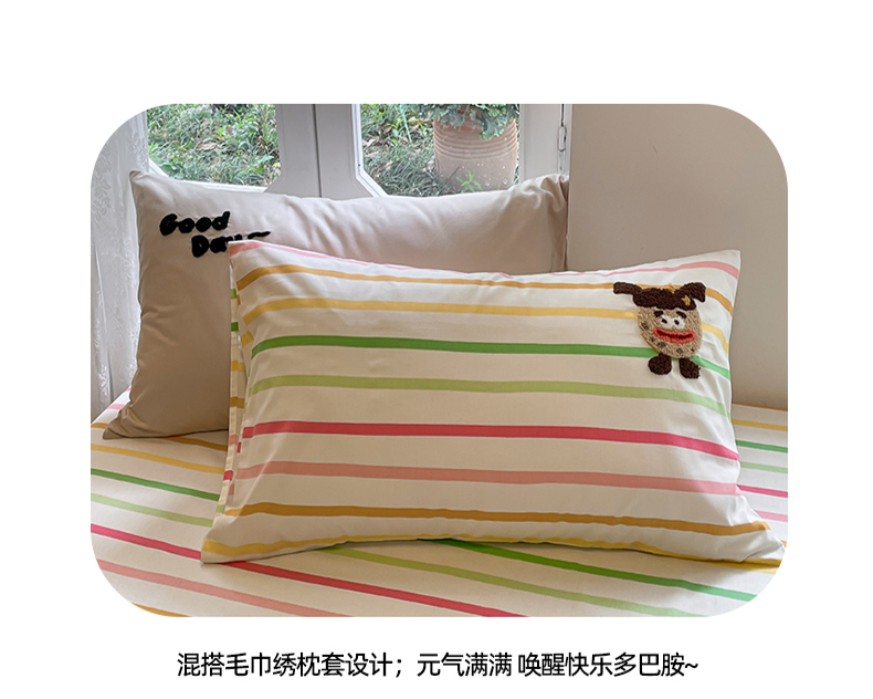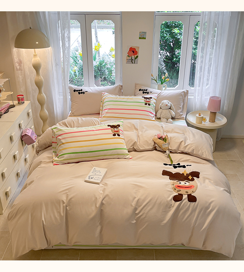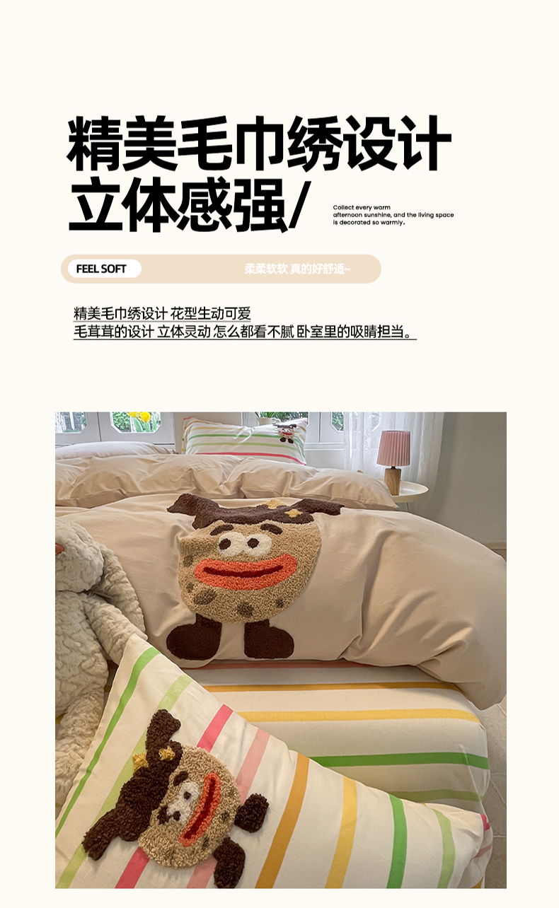 吉象家纺 2024新款全棉斜纹毛巾绣混搭四件套 香肠嘴娃娃
