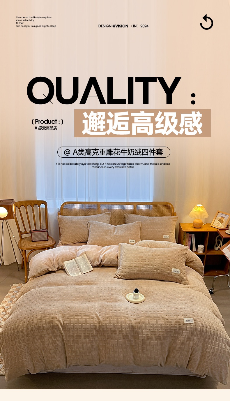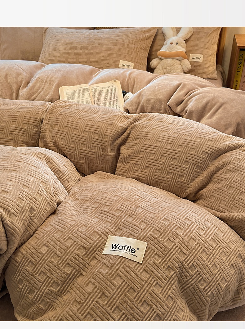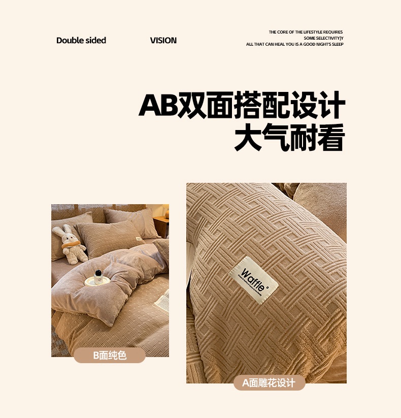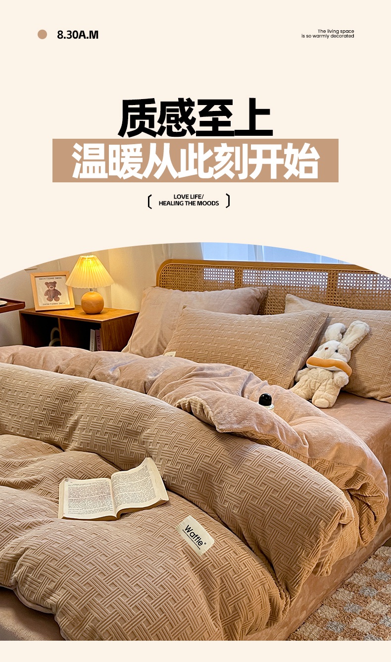 当前位置: 91家纺网 > 商品网购 > 床品套件 > 四件套 > 牛奶绒四件套 > 莱茵家居 2024新款A类高克重雕花牛奶绒四件套-糖果格 糖果格-咖色