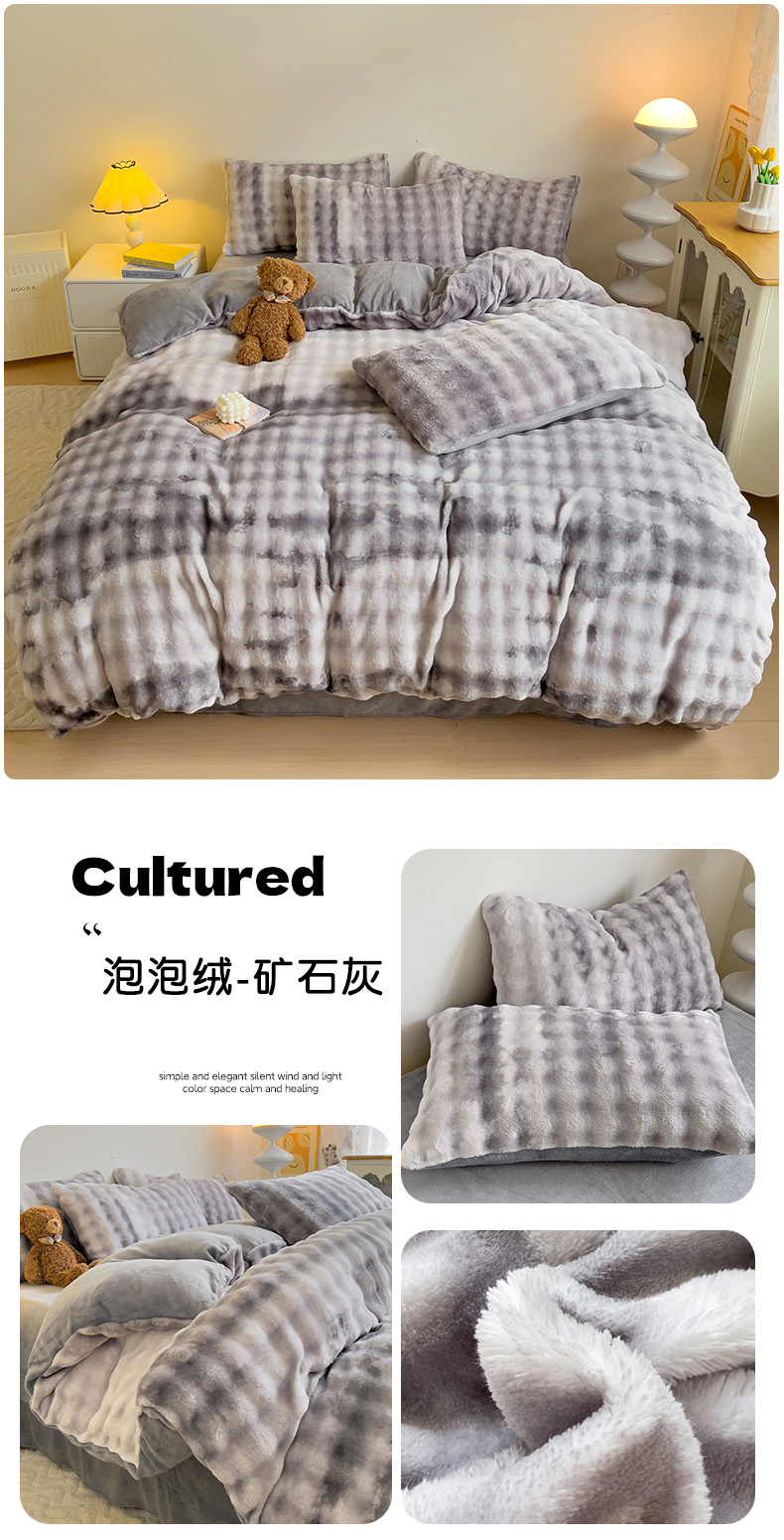 商品名称:金梦拉家纺 2024直播爆款牛奶绒大泡泡渐变纯色四件套 泡泡绒-矿石灰