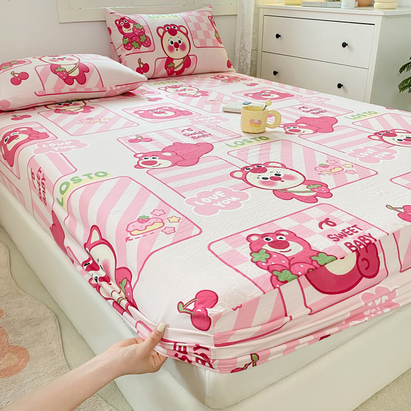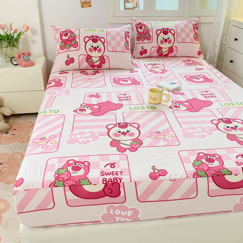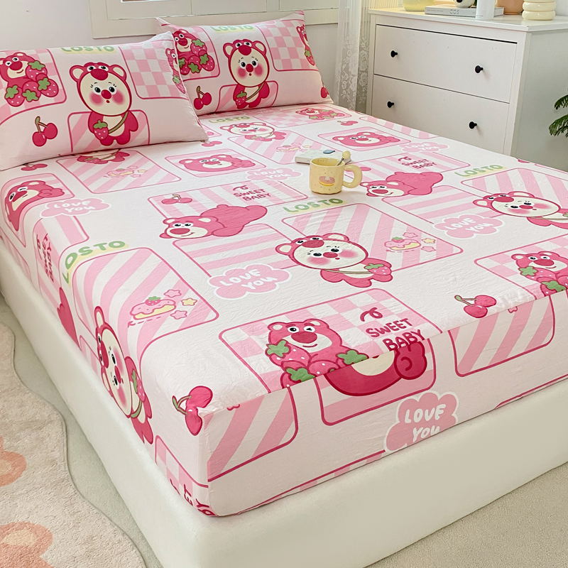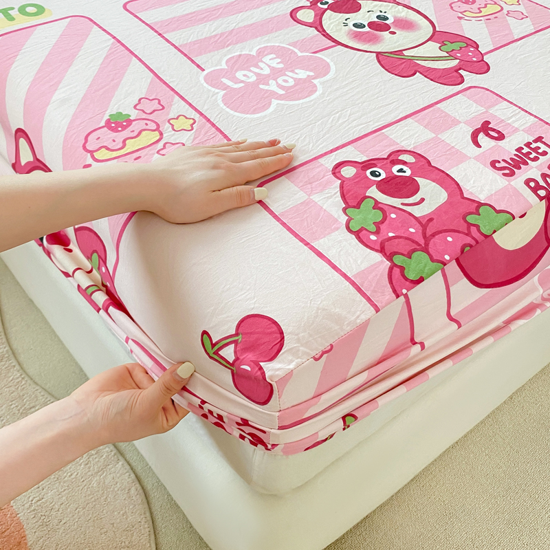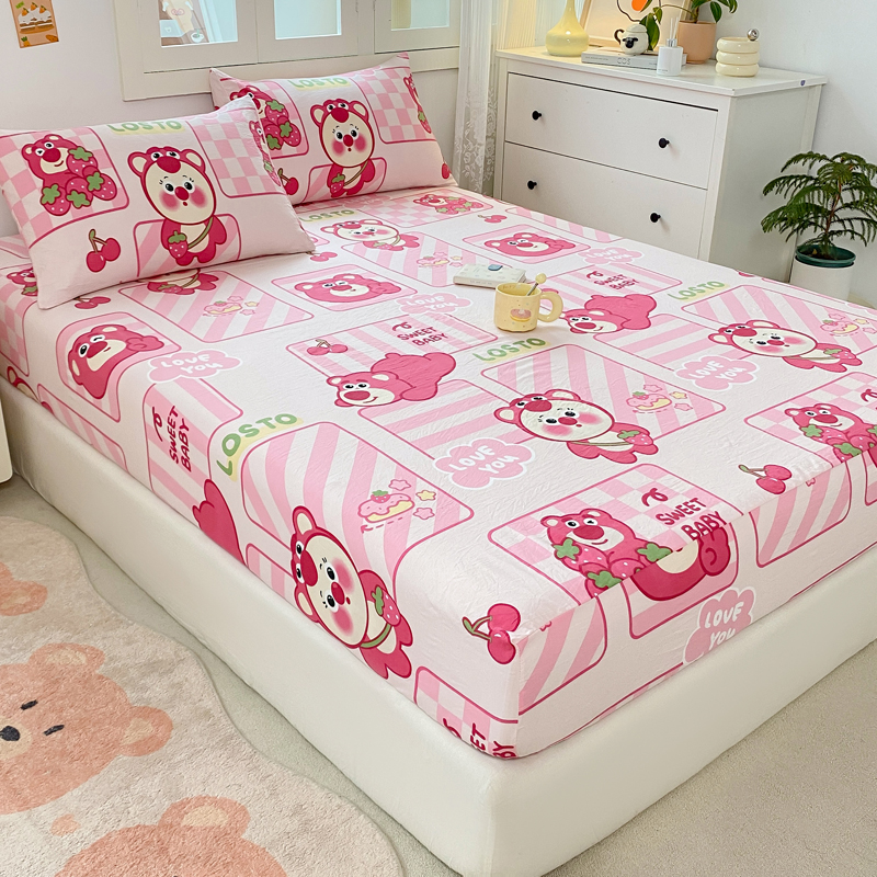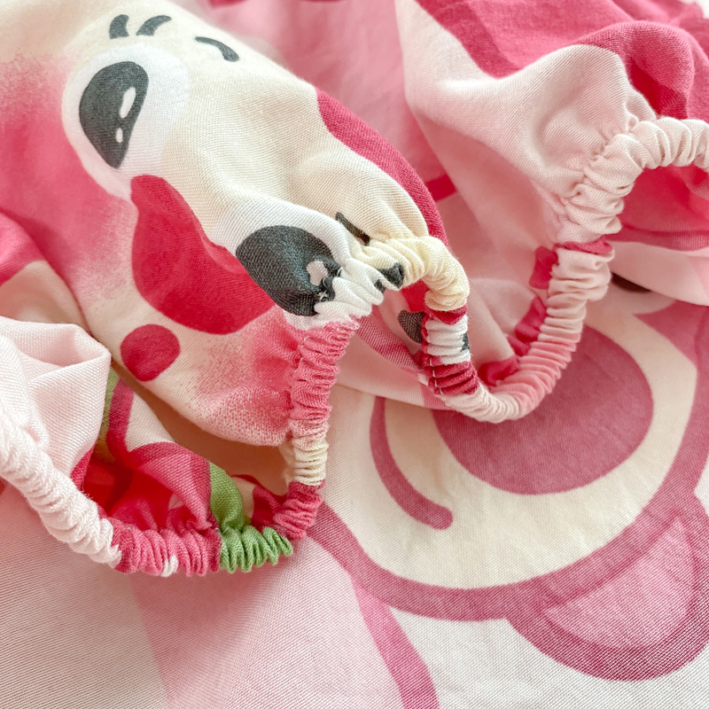 商品名称:伊凡 2025新款印花亲肤水洗棉床笠单床笠跨境电商爆款 粉红熊