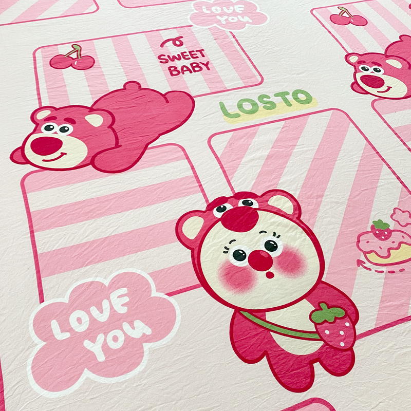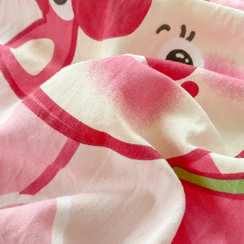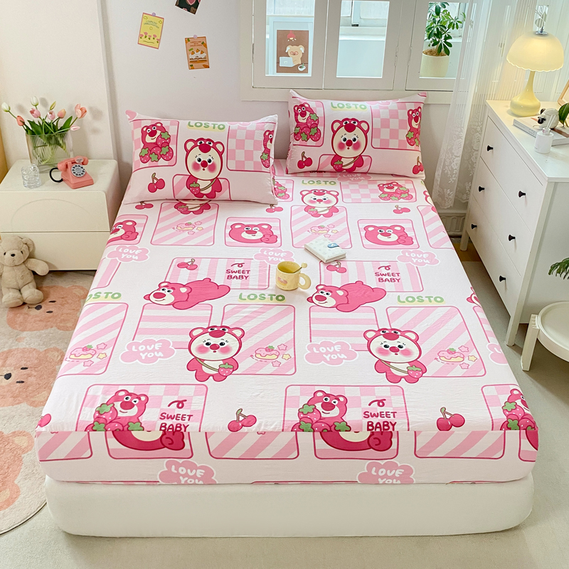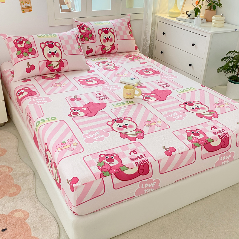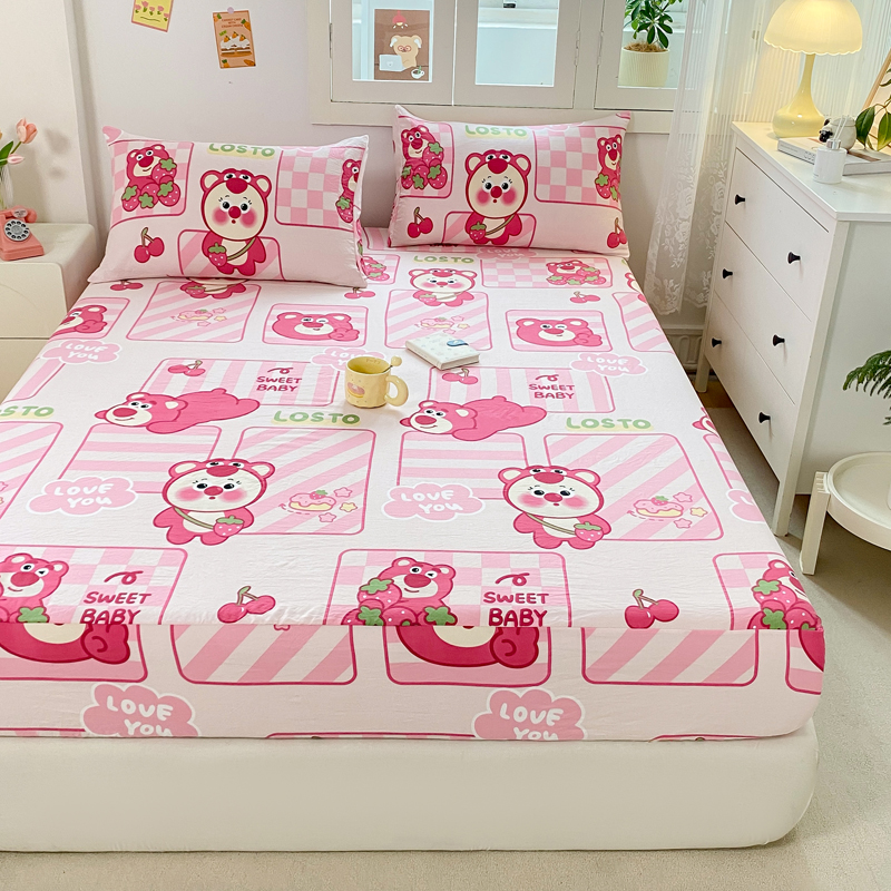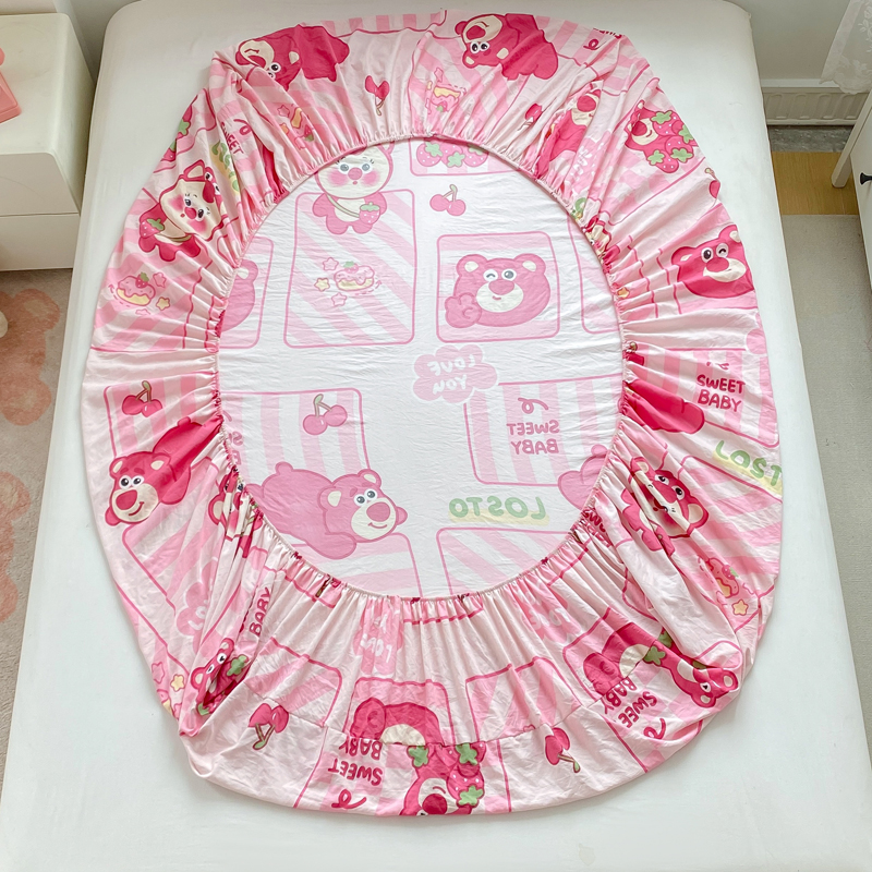 商品名称:伊凡 2025新款印花亲肤水洗棉床笠单床笠跨境电商爆款 粉红熊