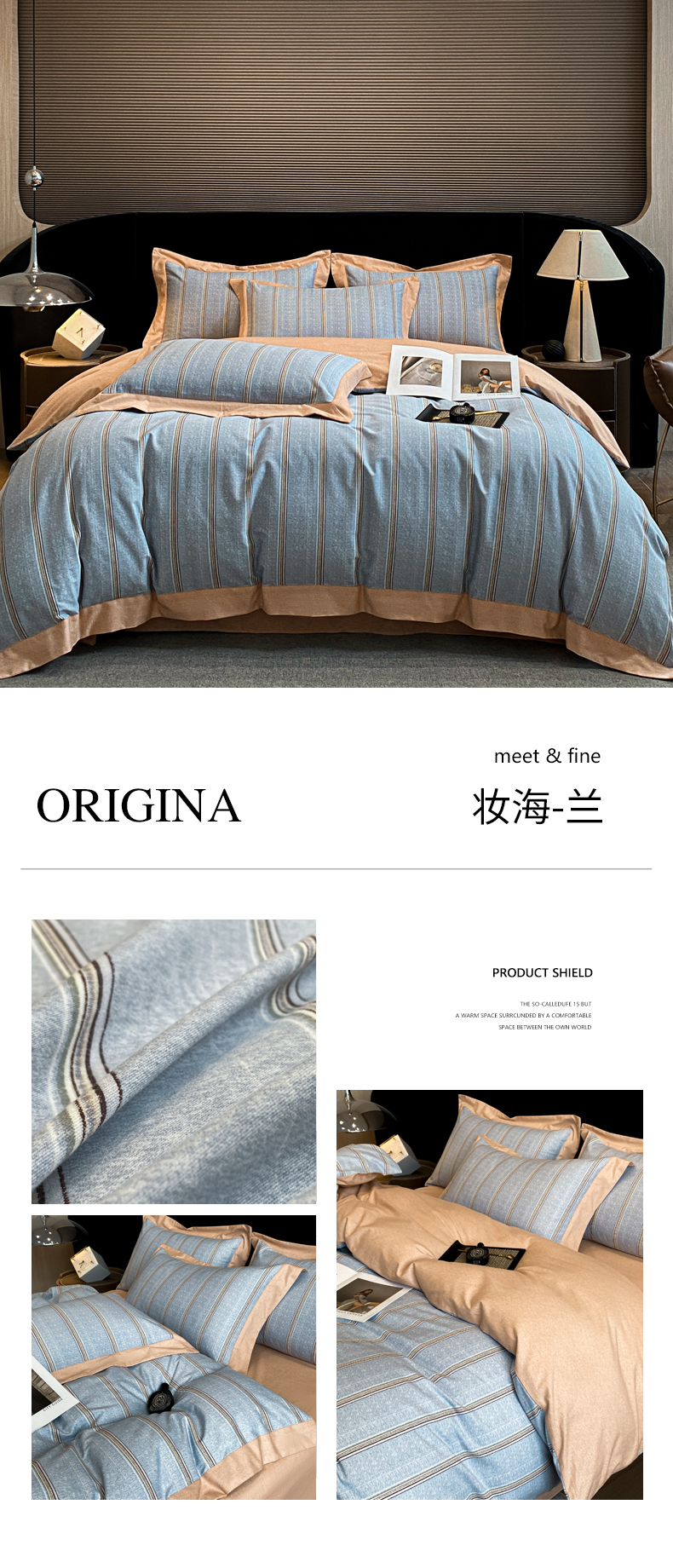 商品名称:慕晨 2024新款A类全棉贡缎磨毛数码印花宽边轻奢风中高端四件套直播爆款 妆海-兰