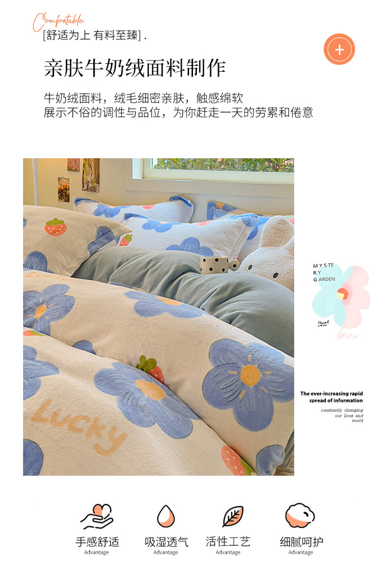 当前位置: 91家纺网 > 商品网购 > 床品套件 > 四件套 > 牛奶绒四件套 > 慕尚家纺 2025新款3.5kg高克重田园花卉类牛奶绒四件套 幸运花