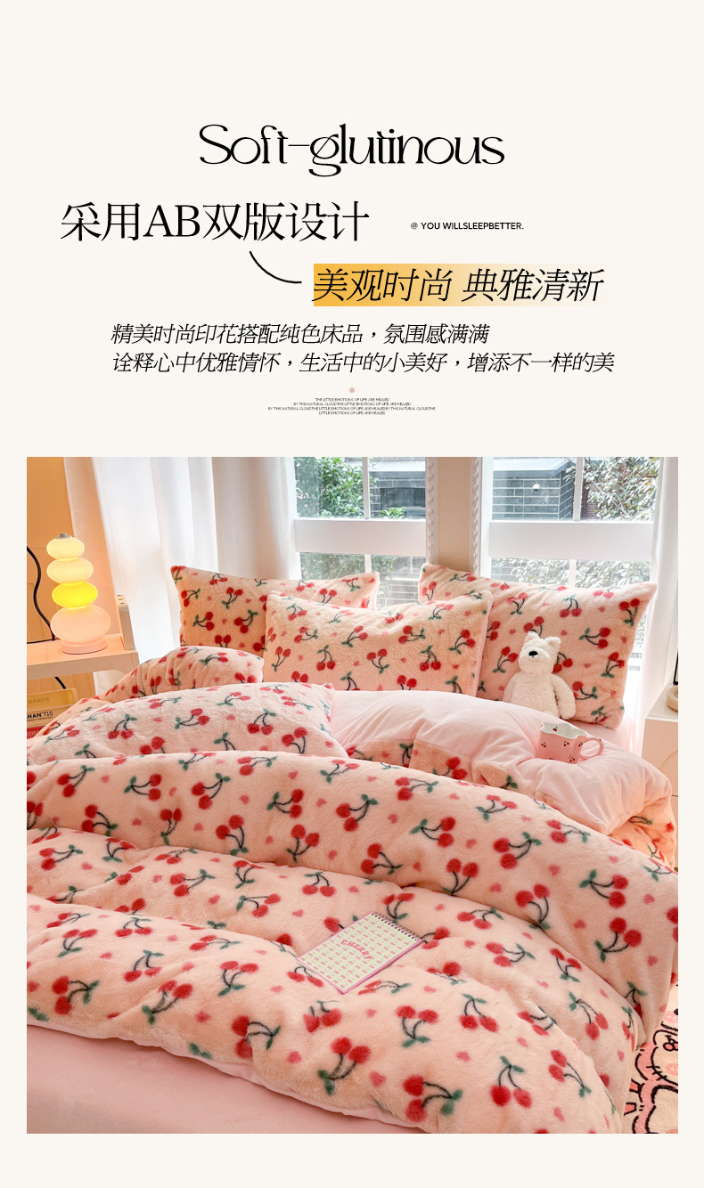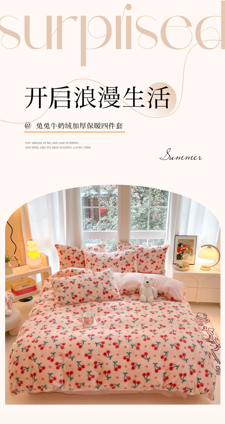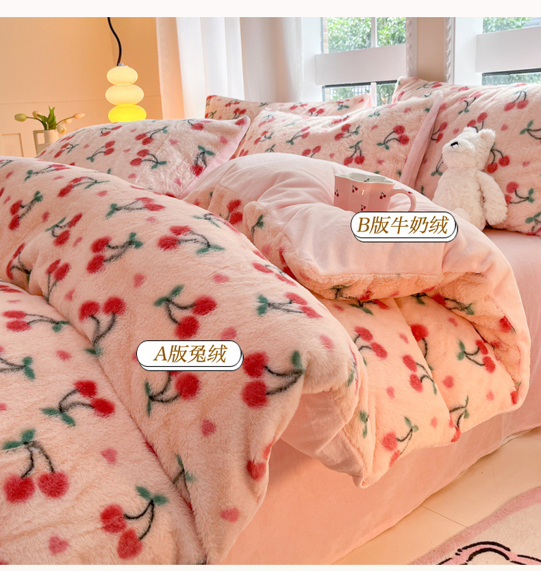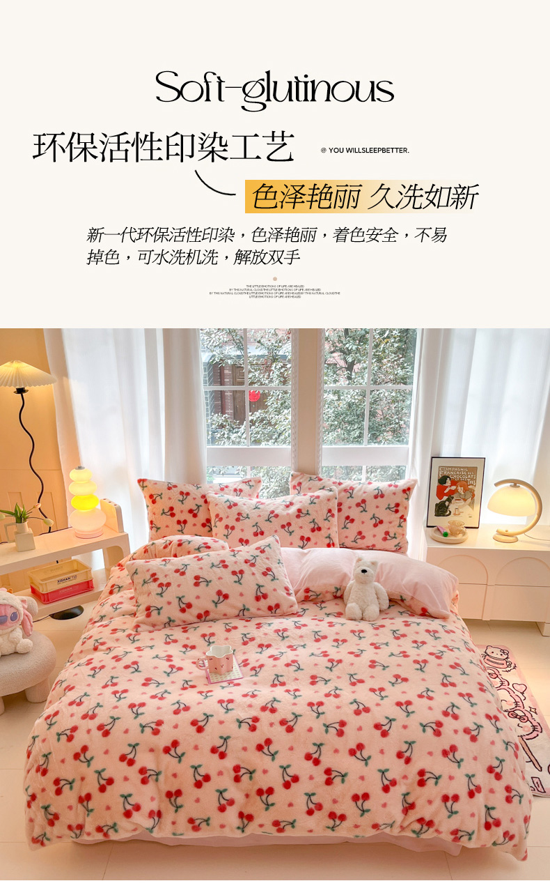 慕澄家纺 2024新款兔绒牛奶绒加厚保暖印花四件套 樱桃小丸子