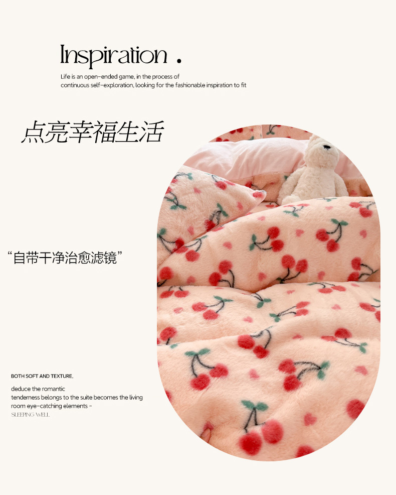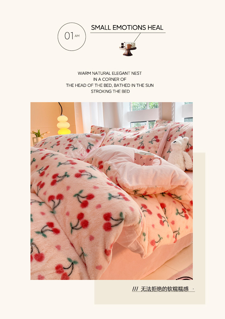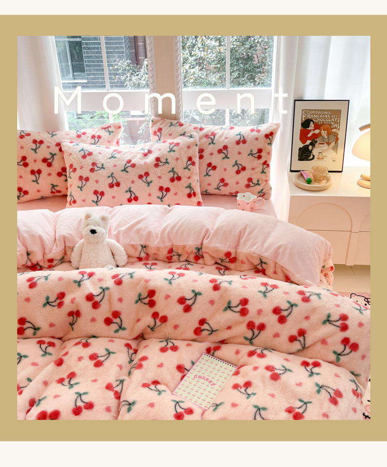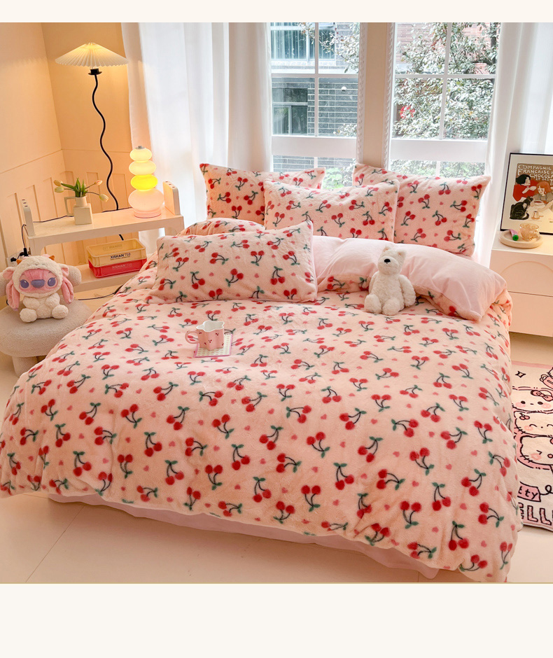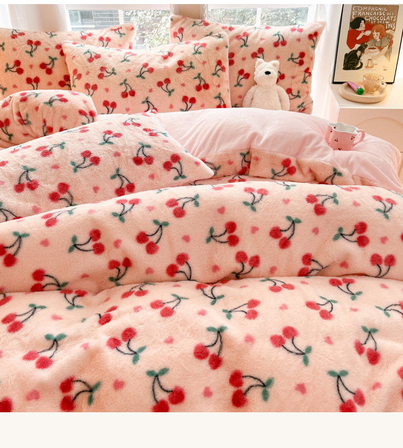 慕澄家纺 2024新款兔绒牛奶绒加厚保暖印花四件套 樱桃小丸子