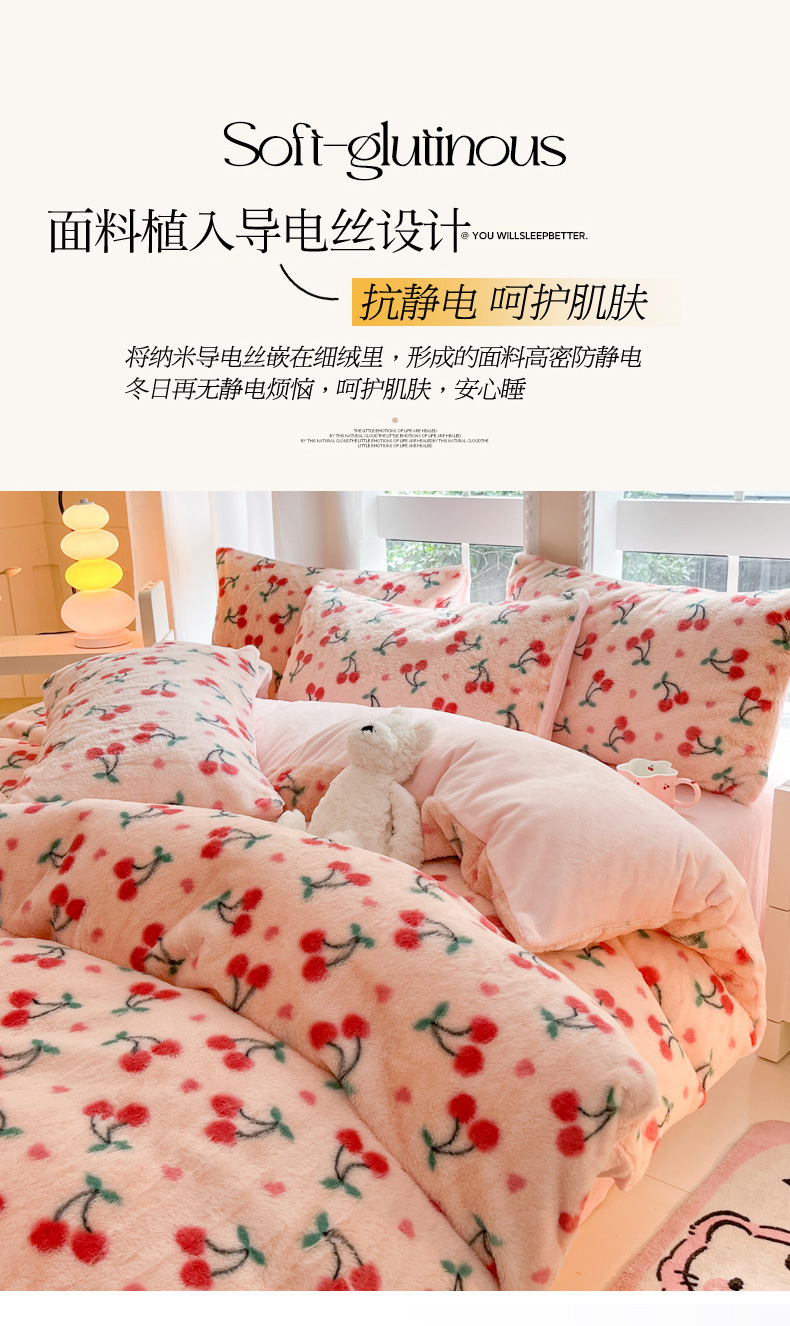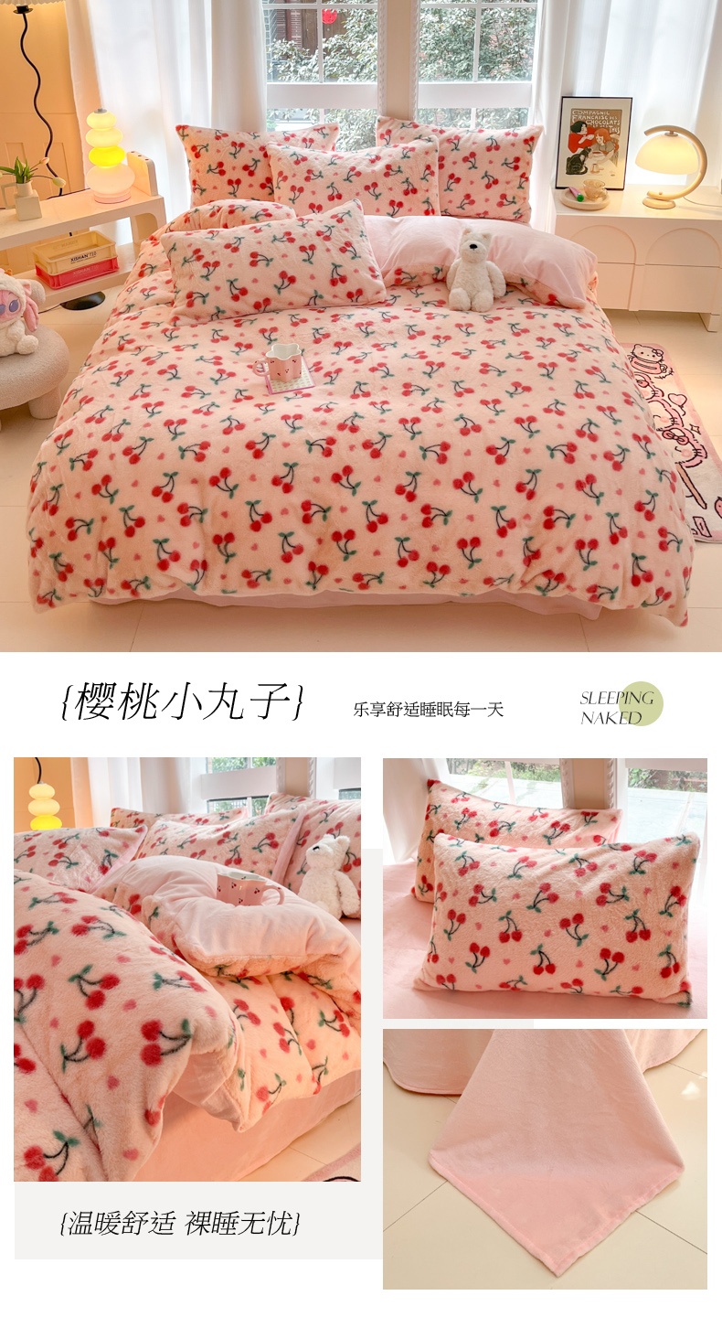 商品名称:慕澄家纺 2024新款兔绒牛奶绒加厚保暖印花四件套 樱桃小丸子