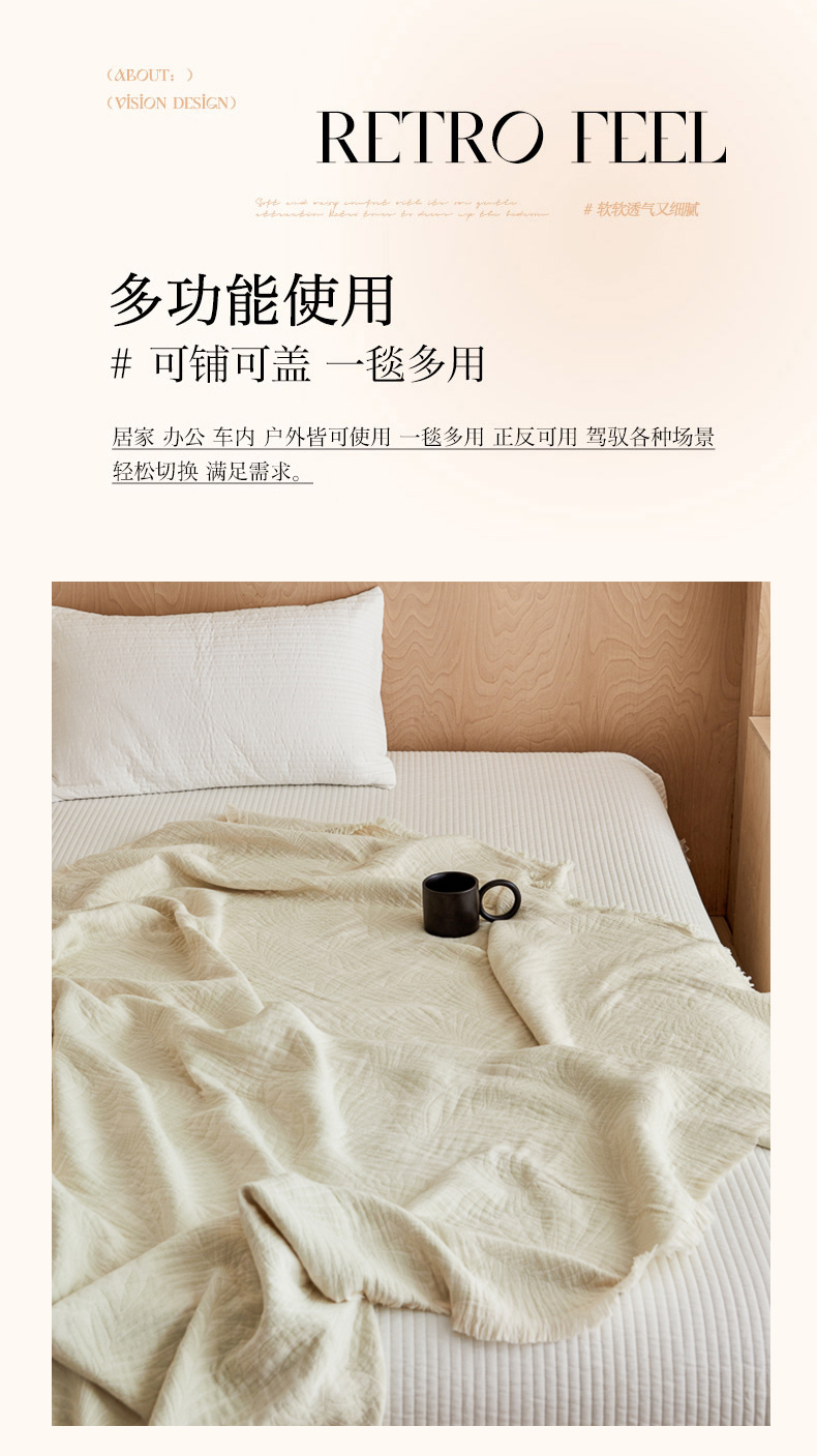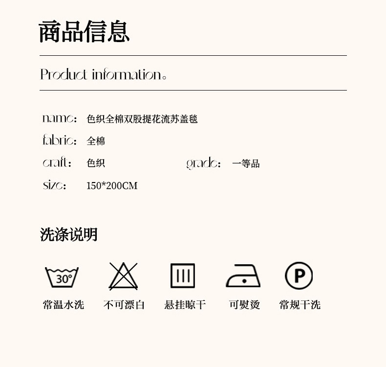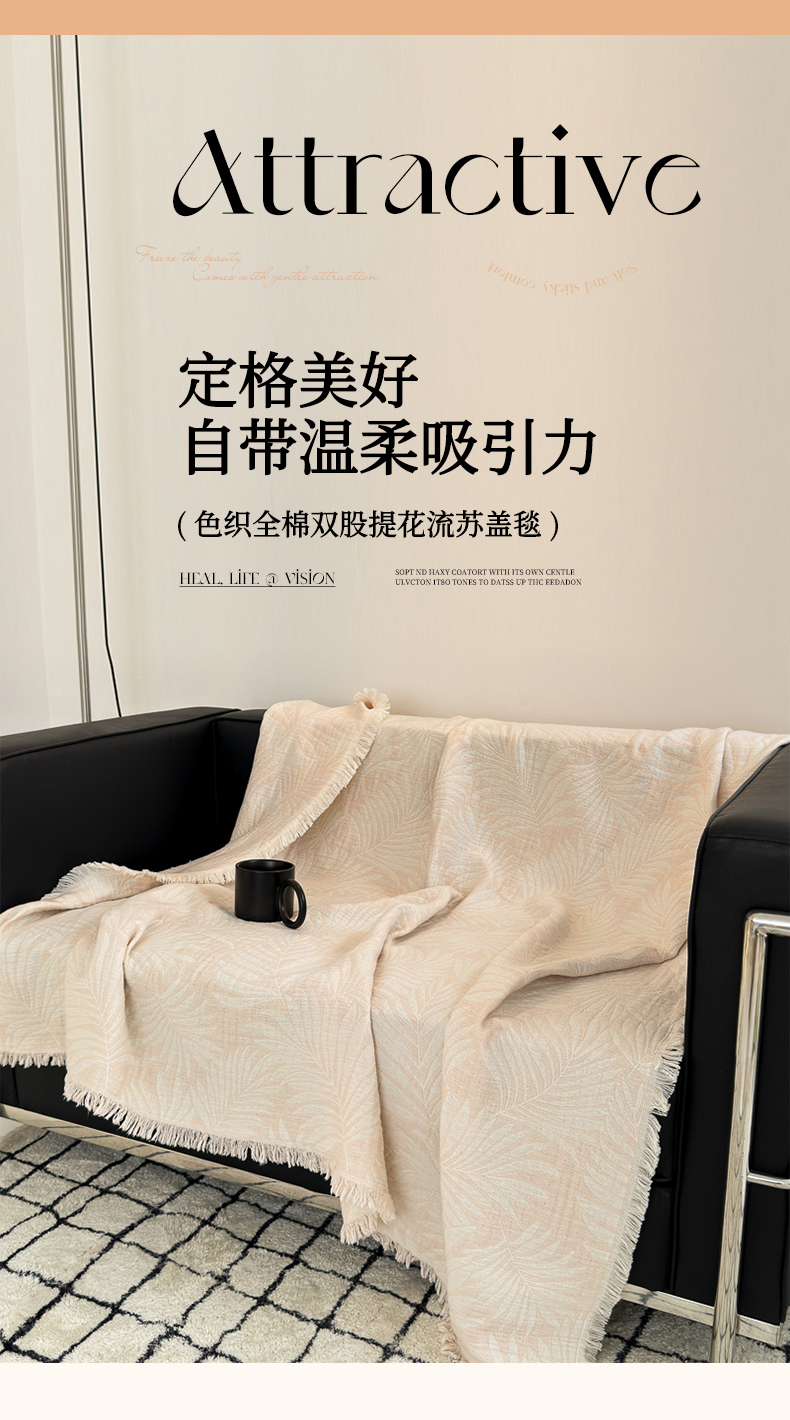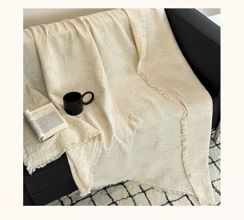 商品名称:淑女公社家纺 2024新款色织全棉双股提花流苏盖毯 雾蓝