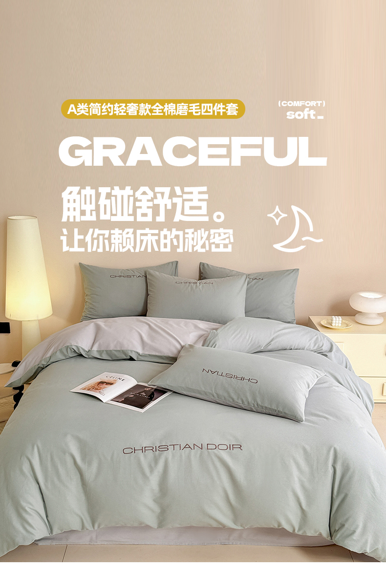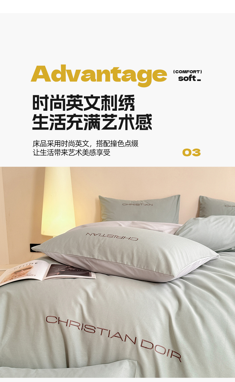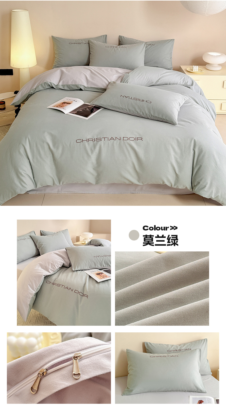 当前位置: 91家纺网 > 商品网购 > 床品套件 > 四件套 > 普通磨毛四件套 > 典曼家纺 2024新款A类简约轻奢款磨毛绣花四件套 莫兰绿
