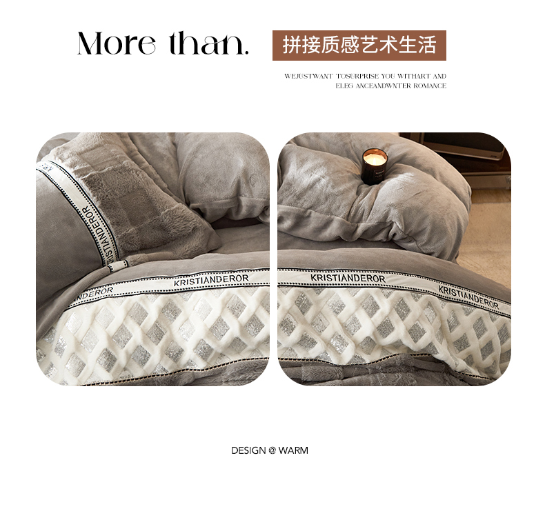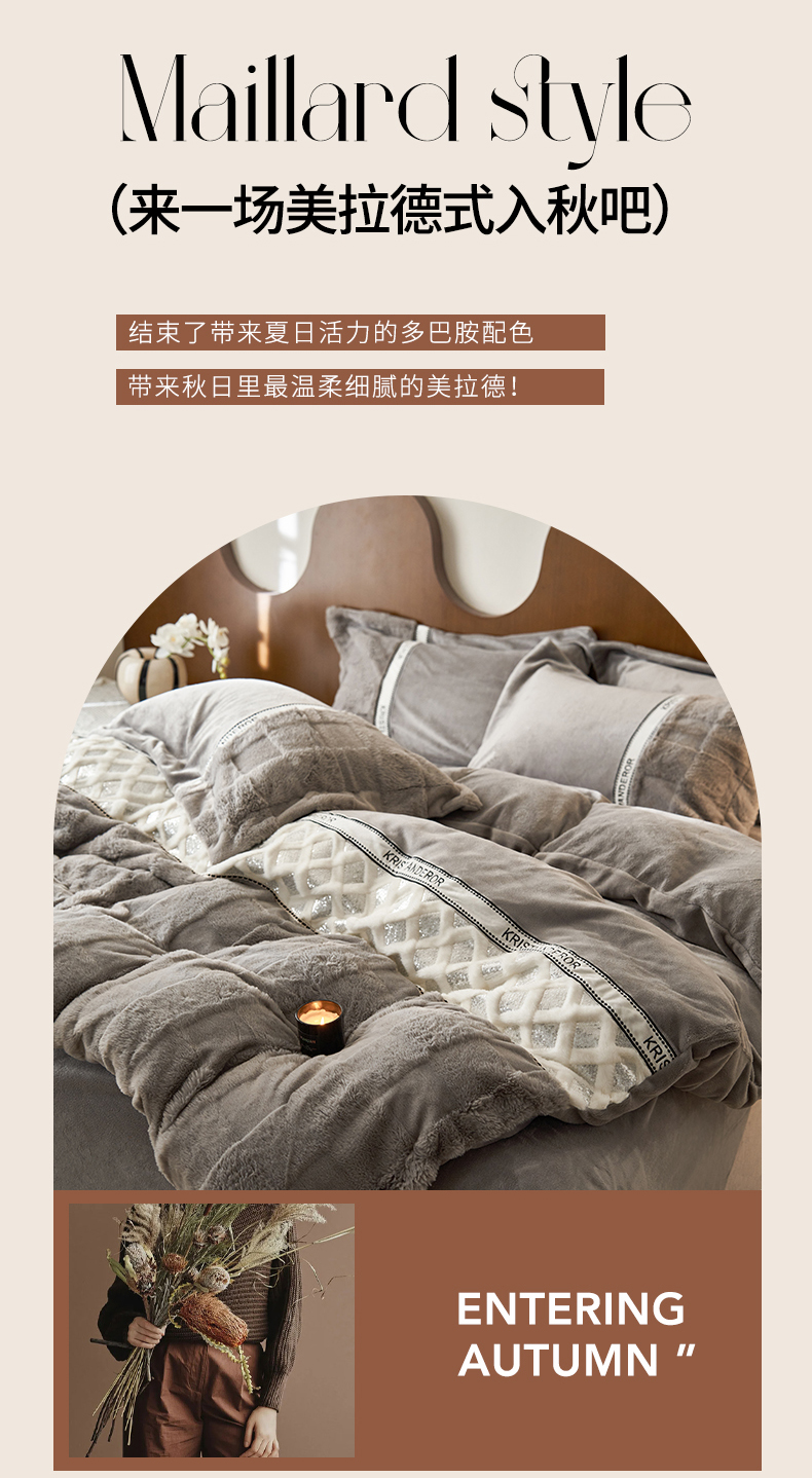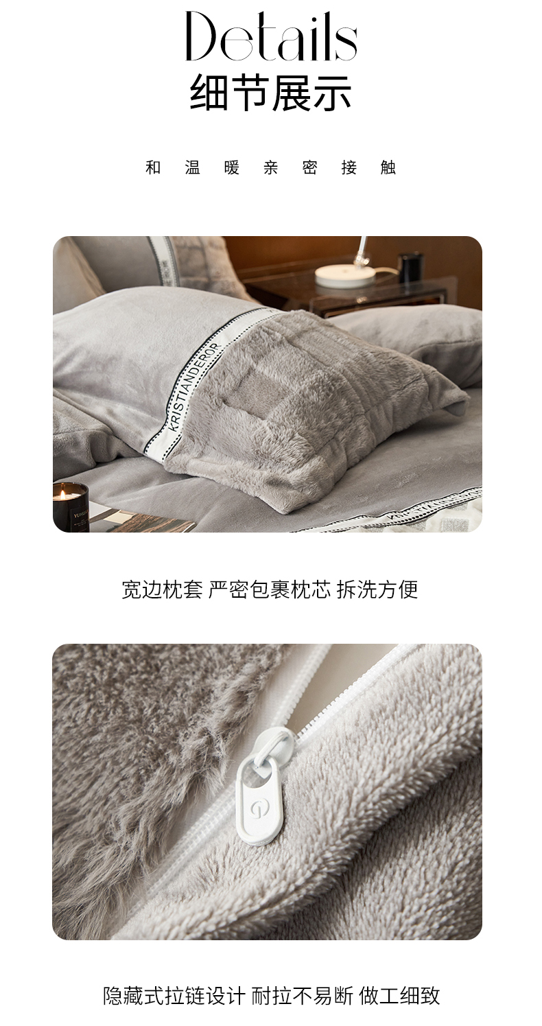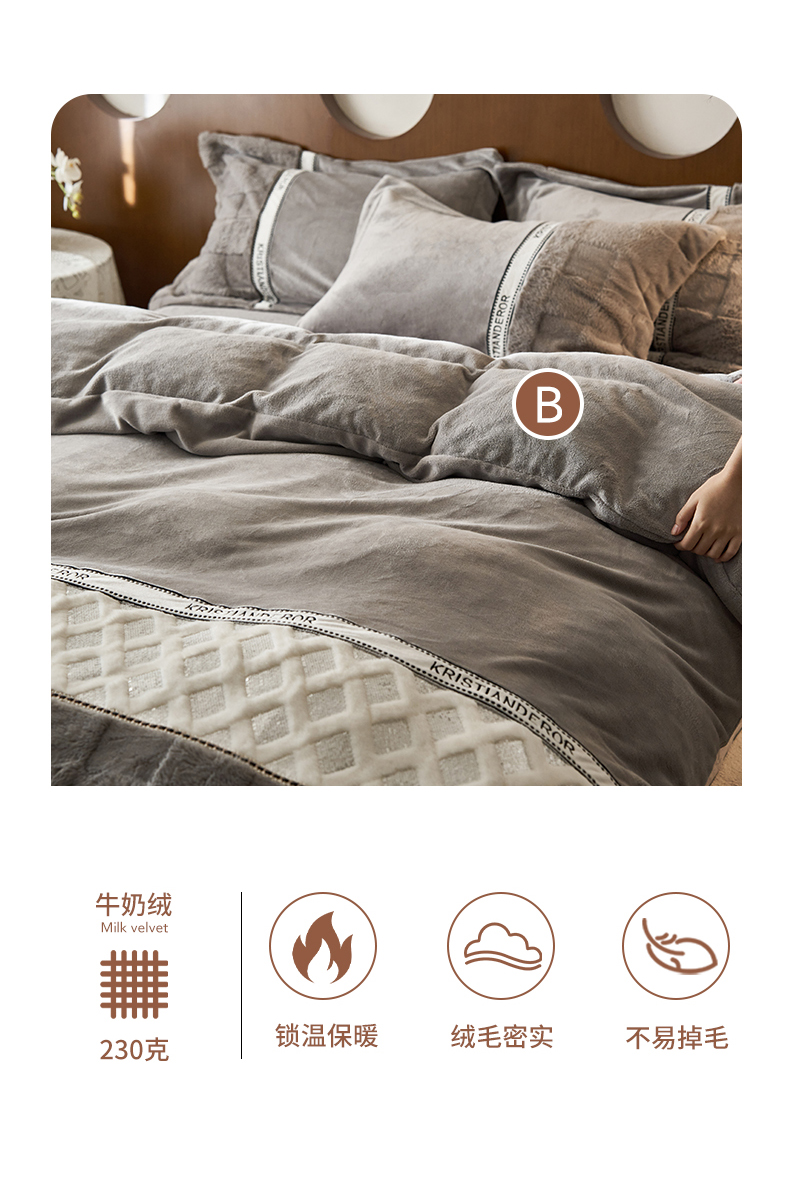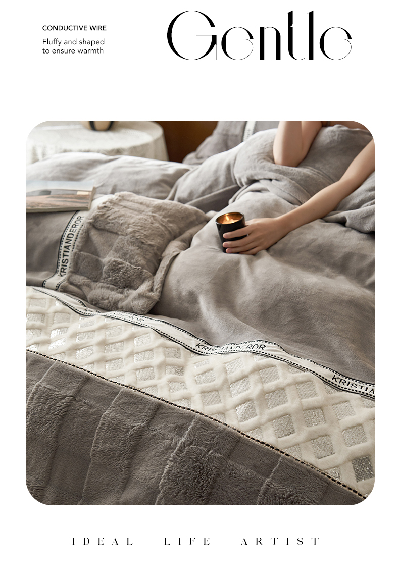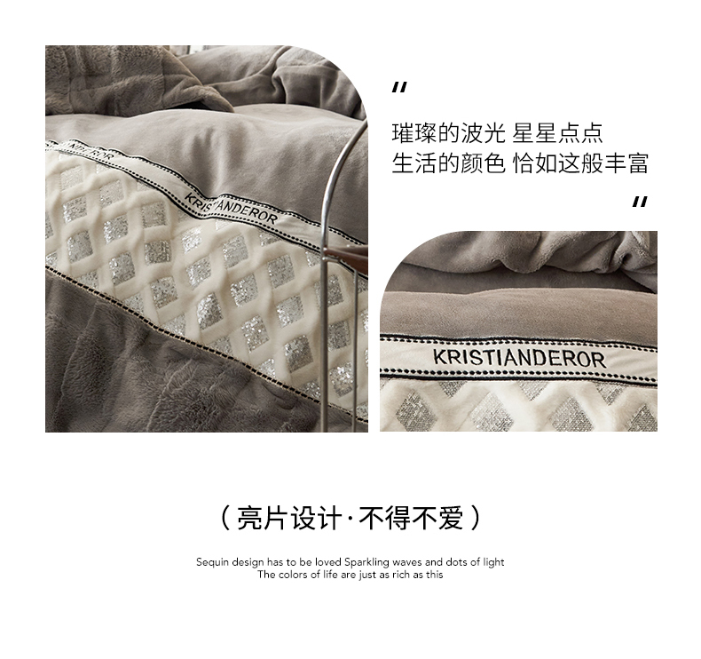 安莱生活 2024新款美拉德苏格兰獭兔牛奶绒刺绣工艺款四件套-风格一 光影银灰