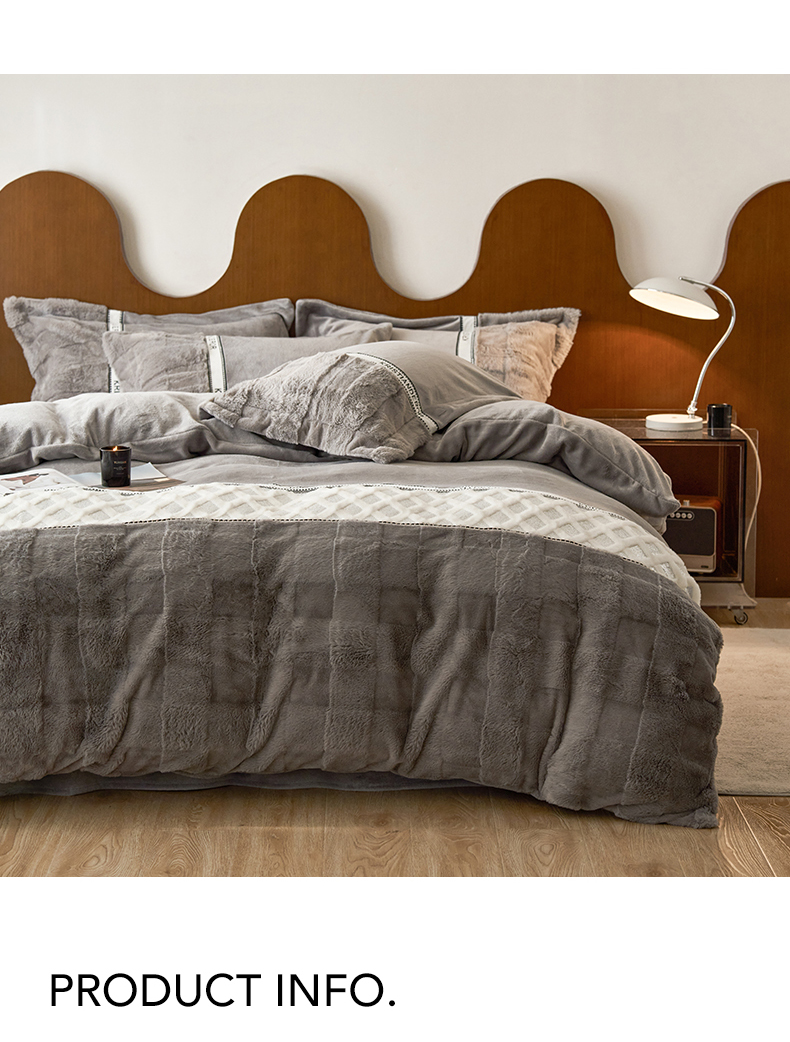 商品名称:安莱生活 2024新款美拉德苏格兰獭兔牛奶绒刺绣工艺款四件套-风格一 光影银灰