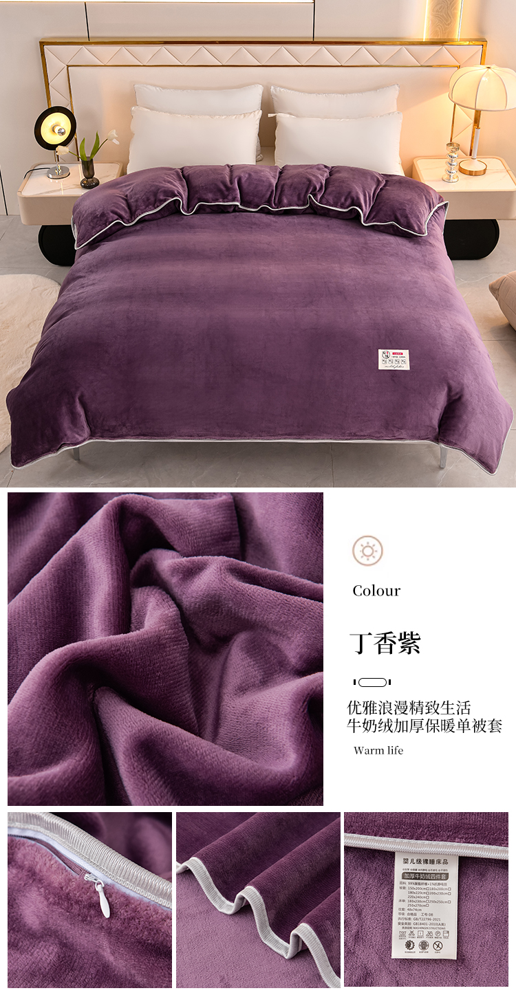 商品名称:绒品荟家纺 2025新款加厚牛奶绒单被套金貂绒法莱绒冬季法兰绒高克重被罩 丁香紫