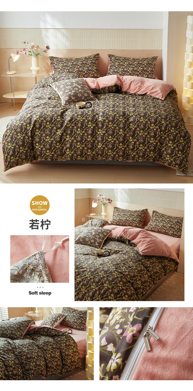 怡家居 2024秋冬新品AB版加厚保暖全棉加绒四件套 若柠
