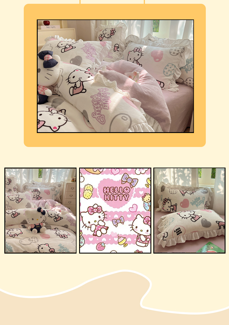 商品名称:三朵家纺 2024新款高克重加厚保暖牛奶绒三丽鸥花边四件套 花边-爱心凯蒂