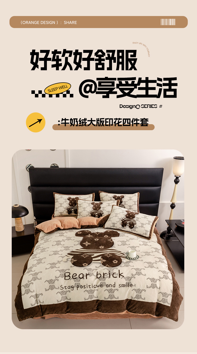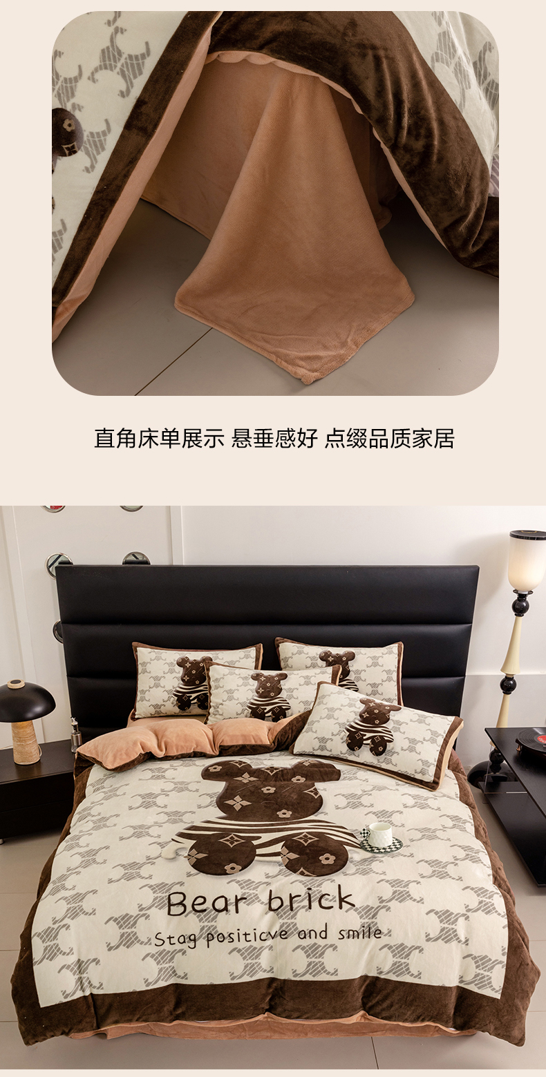色鬼布艺 2024新款高克重牛奶绒大版印花四件套 卡布熊