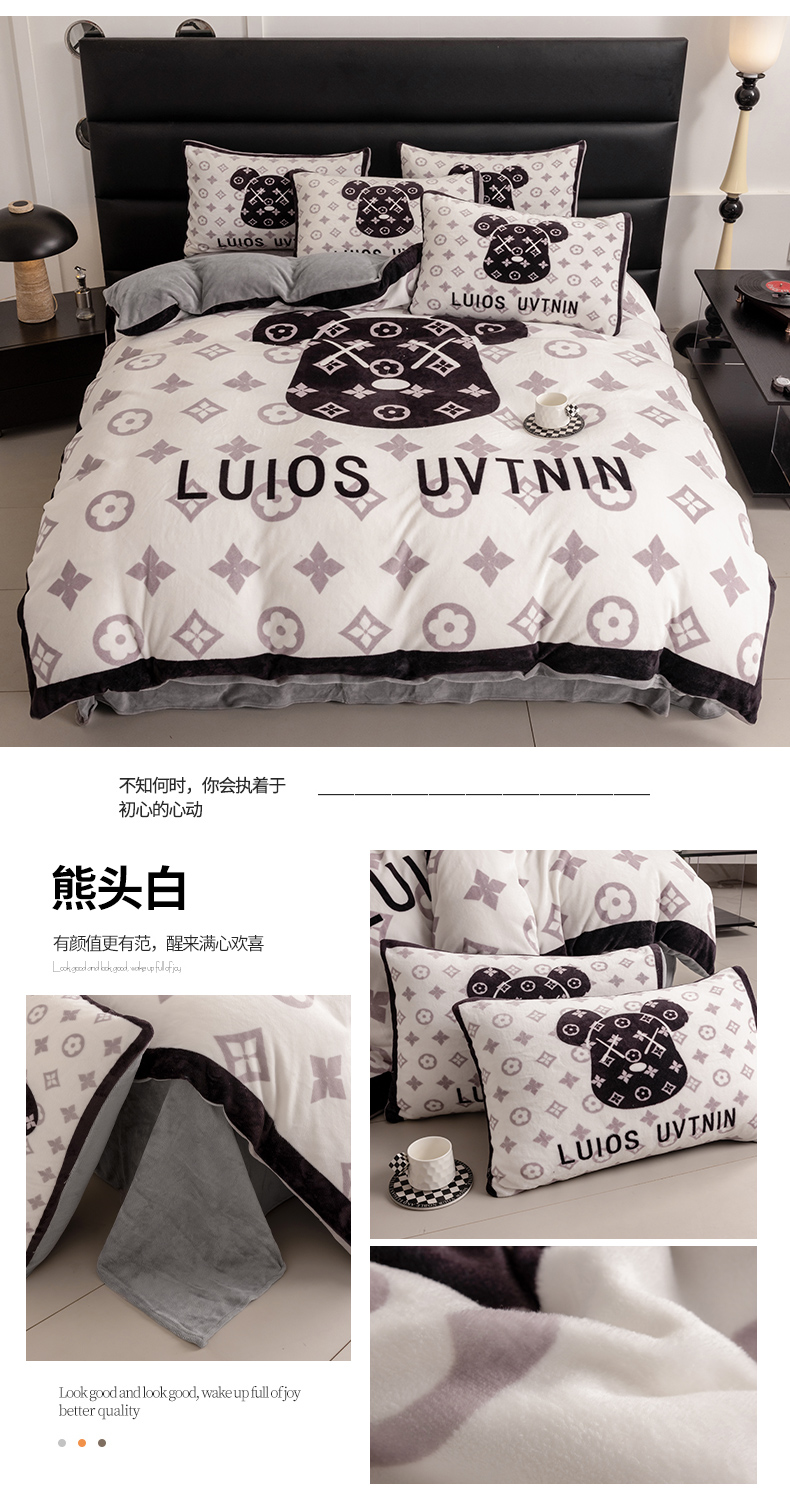 商品名称:色鬼布艺 2024新款高克重牛奶绒大版印花四件套 卡布熊