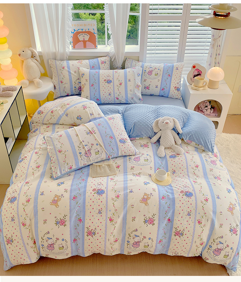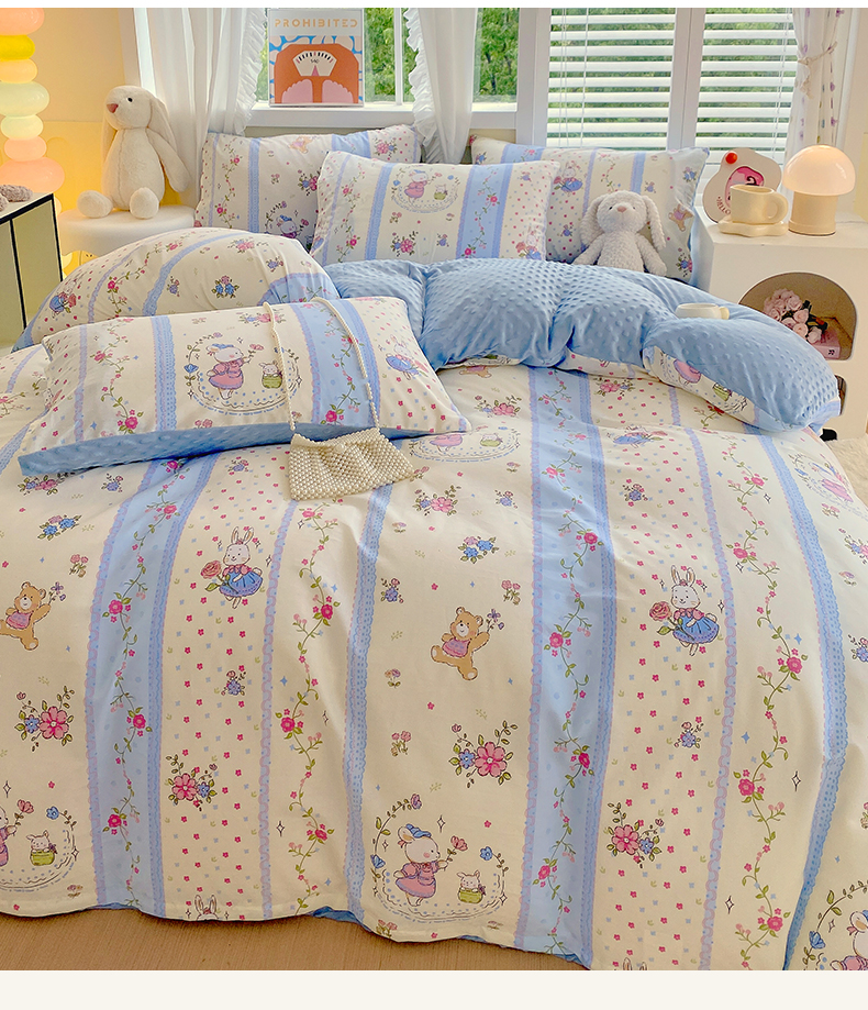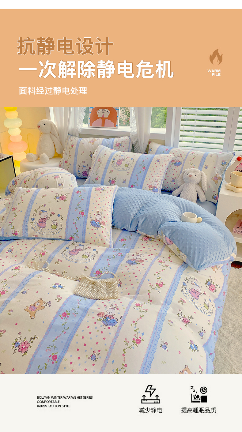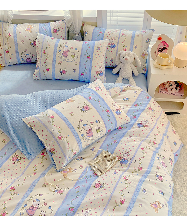 当前位置: 91家纺网 > 商品网购 > 床品套件 > 四件套 > 其它四件套 > 金鑫汇家纺 2024新款棉加豆豆绒系列四件套 快乐萌兔