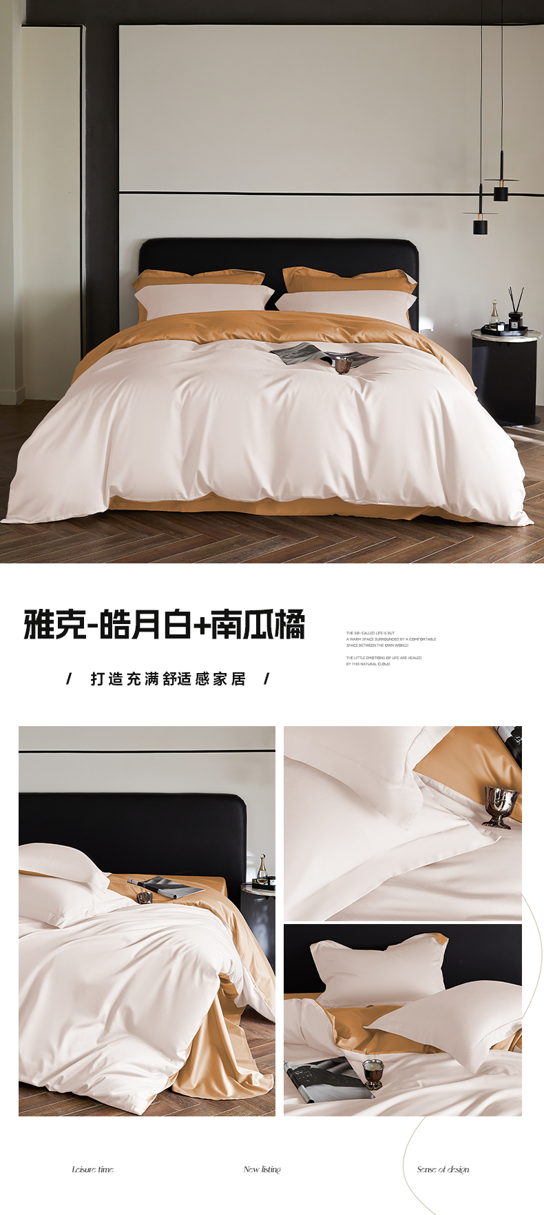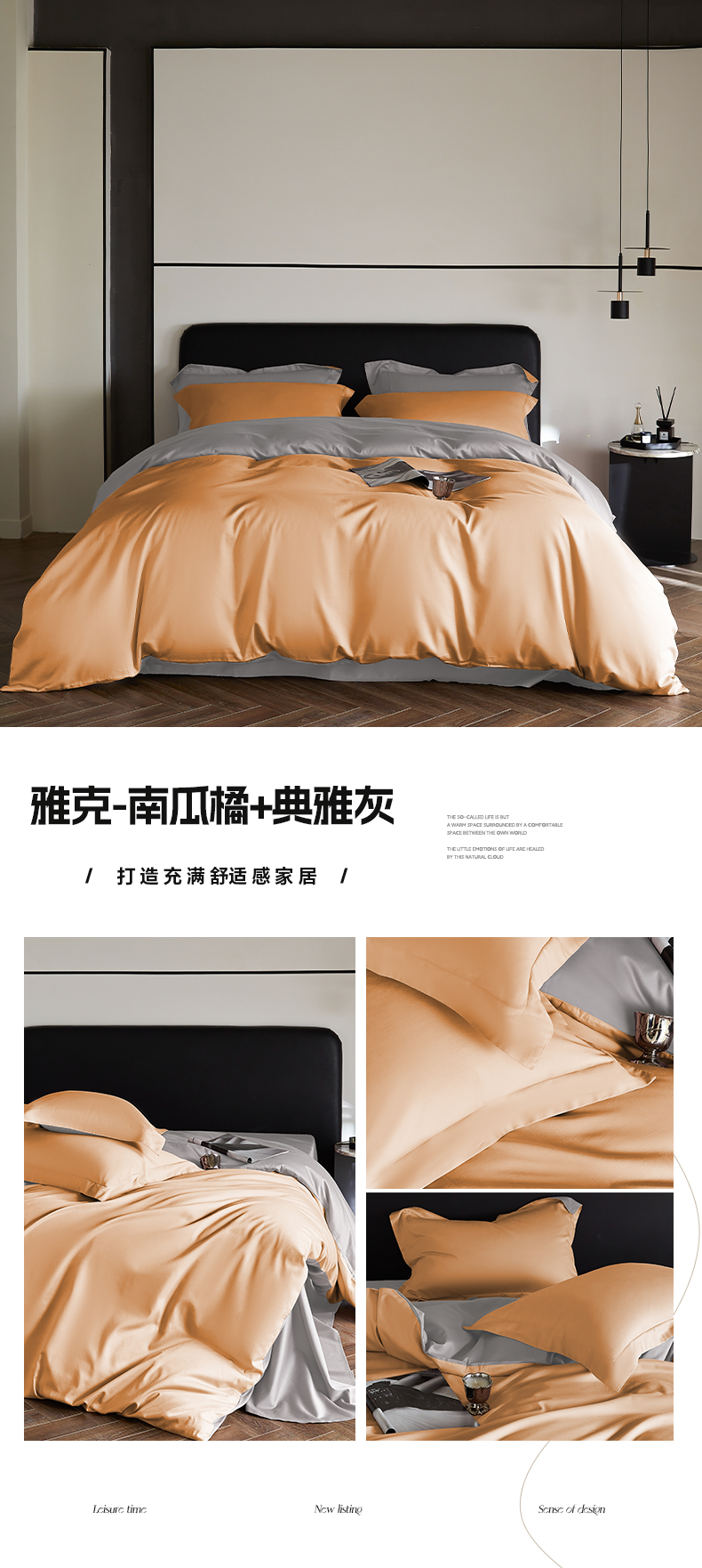 商品名称:秀色家纺 2025新款50支贡缎A类轻奢纯色长绒棉四件套全棉纯棉被套高级感床单三件套-雅克 雅克-南瓜橘+典雅灰