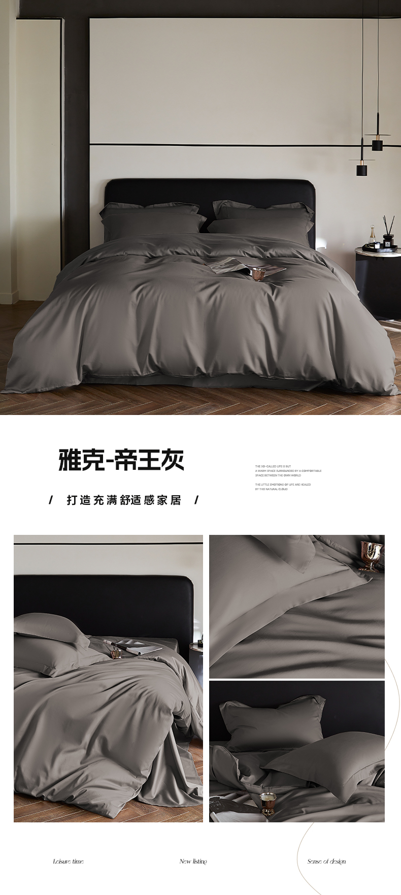 秀色家纺 2025新款50支贡缎A类轻奢纯色长绒棉四件套全棉纯棉被套高级感床单三件套-雅克 雅克-南瓜橘+典雅灰