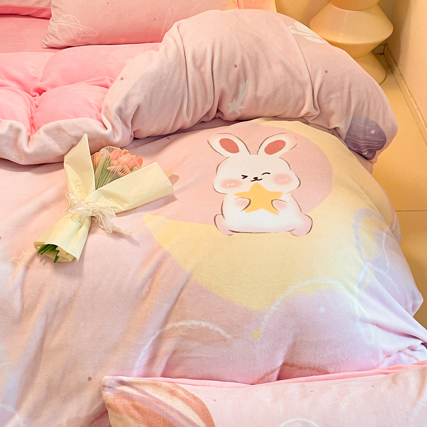 新方向 2025新款全消光A类儿童牛奶绒四件套-萌萌兔 萌萌兔-粉