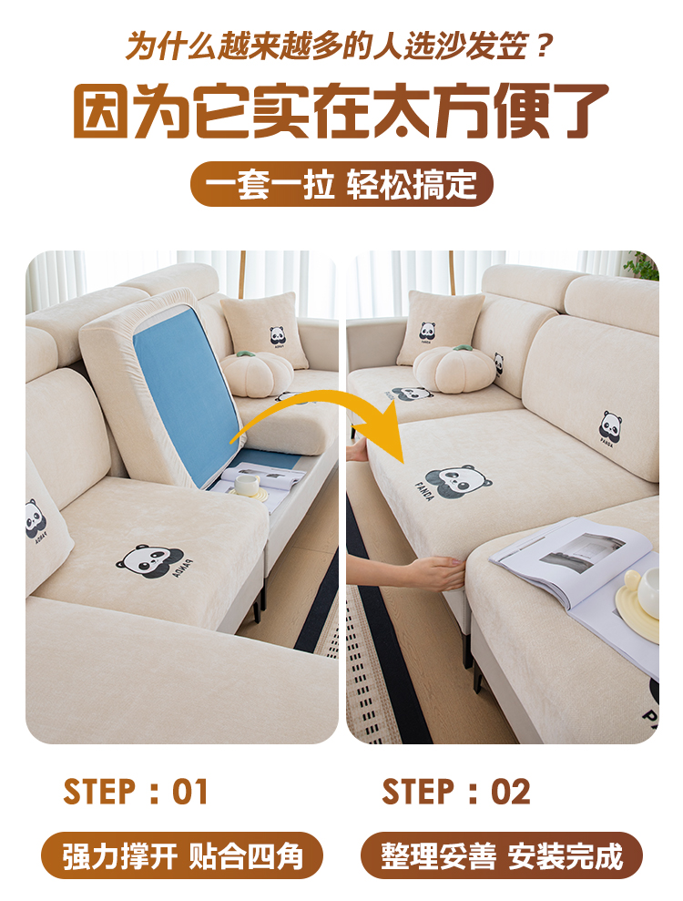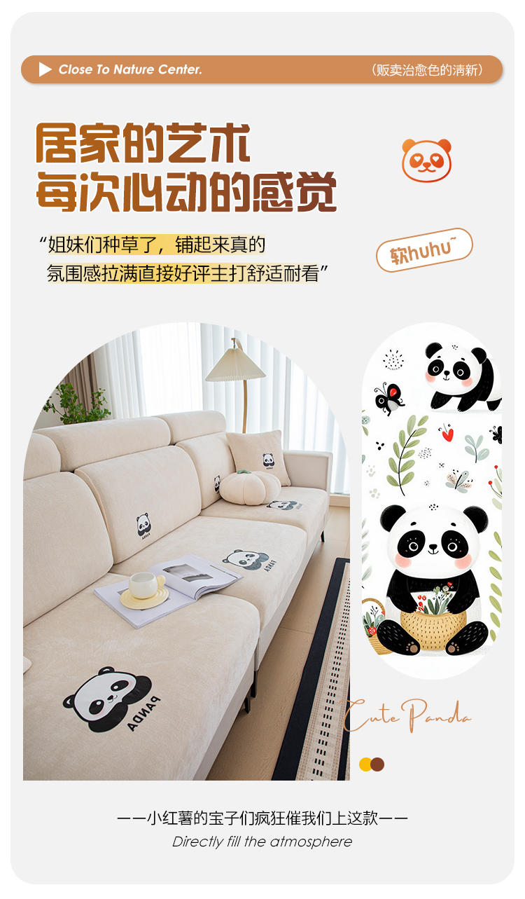 当前位置: 91家纺网 > 商品网购 > 居家布艺 > 坐垫/椅垫/沙发垫 > 沙发垫 > 沐沐 2026新款雪尼尔熊猫烫画沙发笠 亚麻白