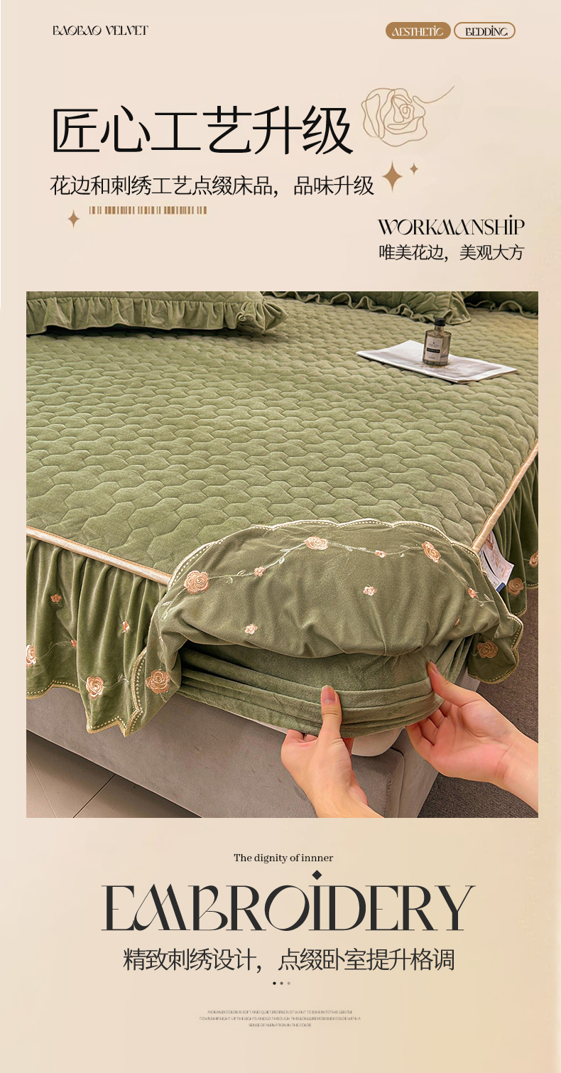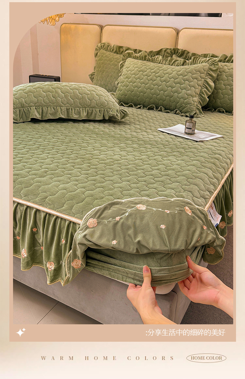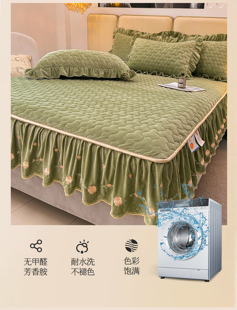 (总)恒爱家纺 2025新款牛奶绒贴布绣夹棉床裙四件套,豆沙红,浪漫紫,天空蓝,温馨粉,象牙白
