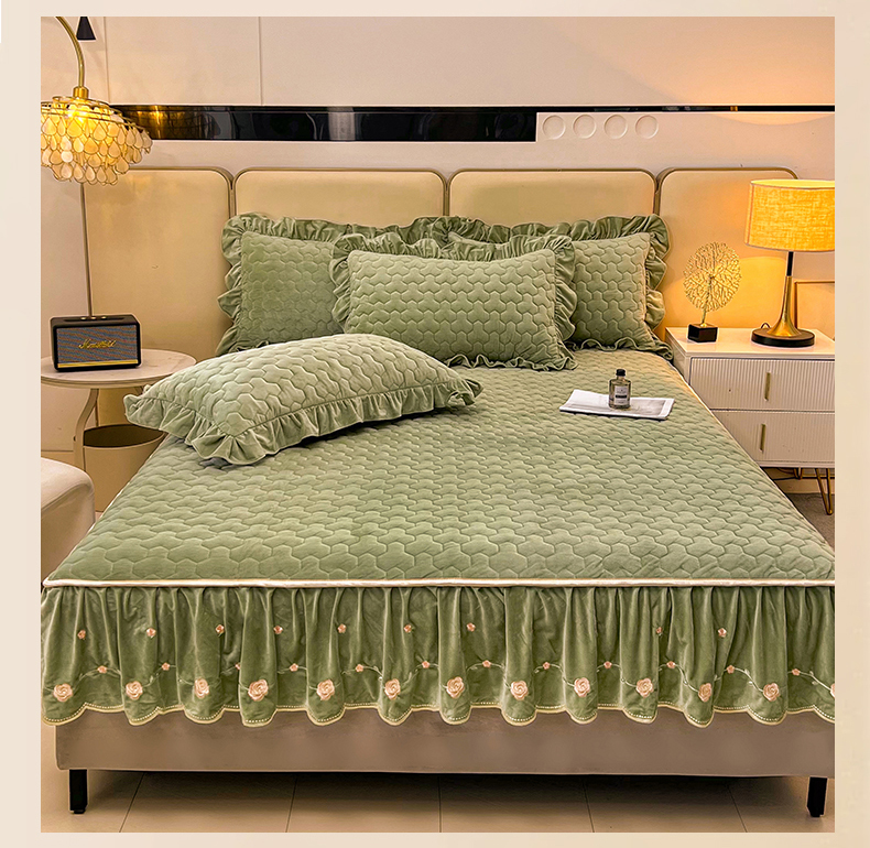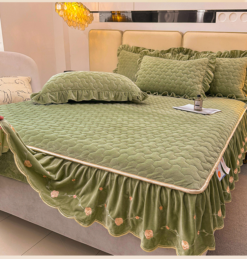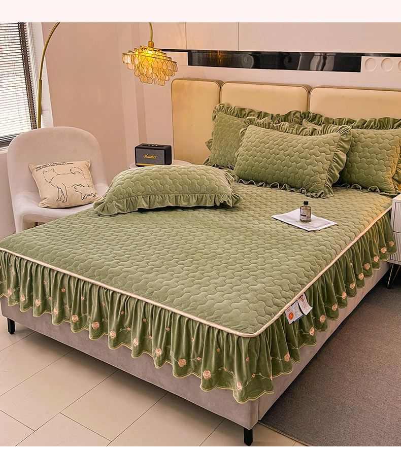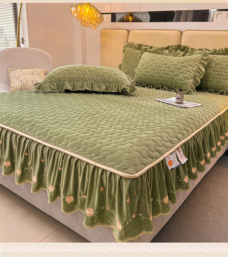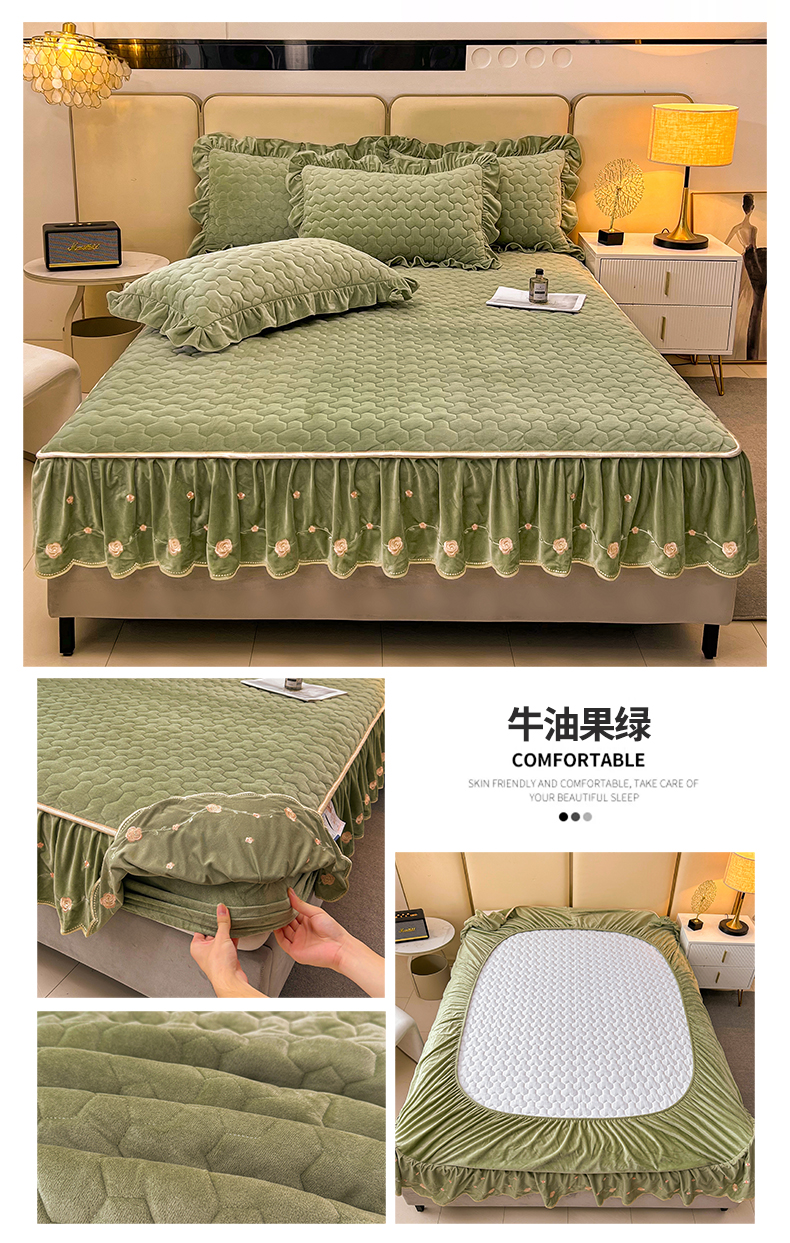 (总)恒爱家纺 2025新款牛奶绒贴布绣夹棉床裙四件套,豆沙红,浪漫紫,天空蓝,温馨粉,象牙白