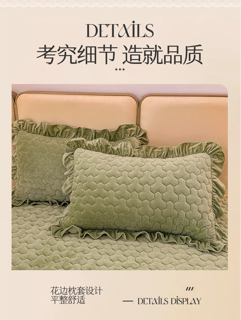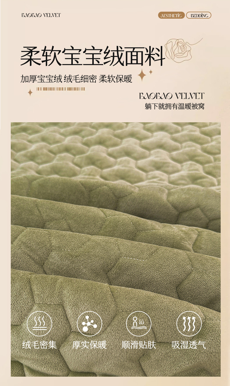 • 91家纺网 家纺一手货源 找家纺 恒爱家纺 2024新款宝宝绒霞姿月韵床笠 牛油果绿