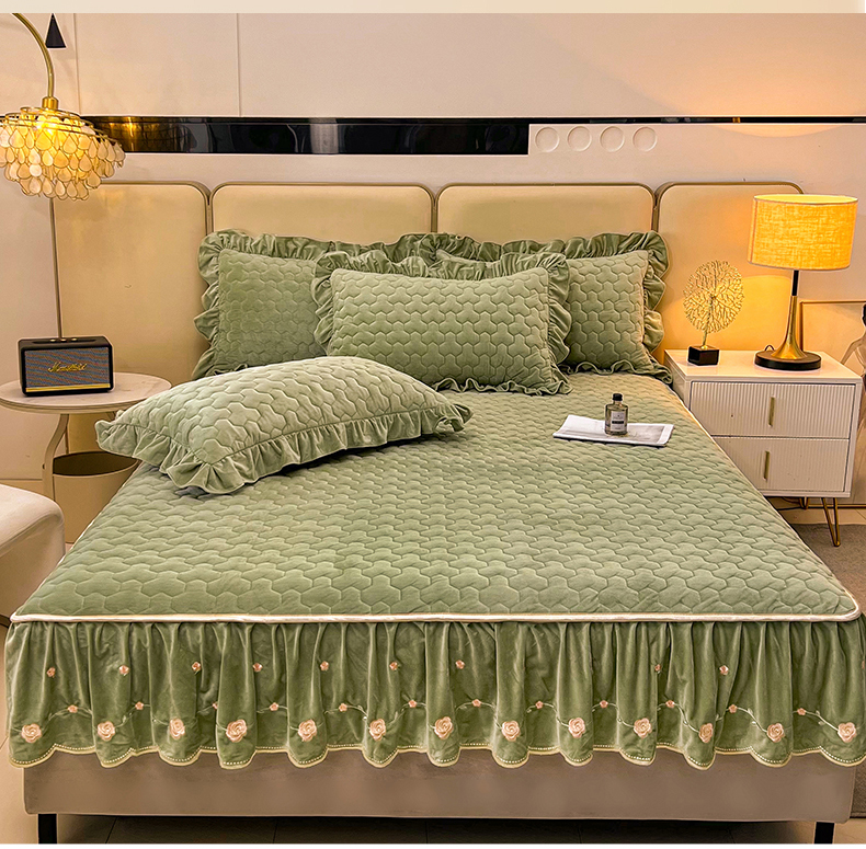 恒爱家纺 2024新款宝宝绒霞姿月韵床笠 牛油果绿