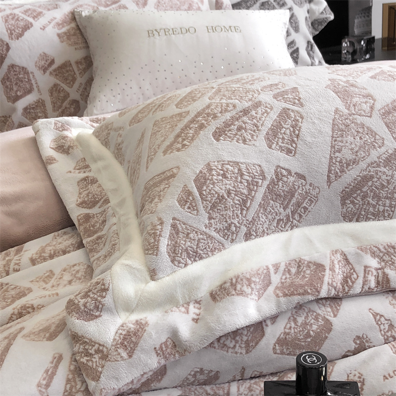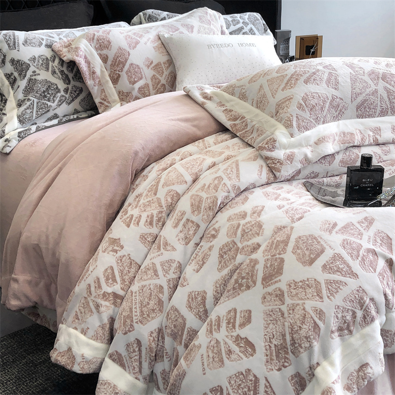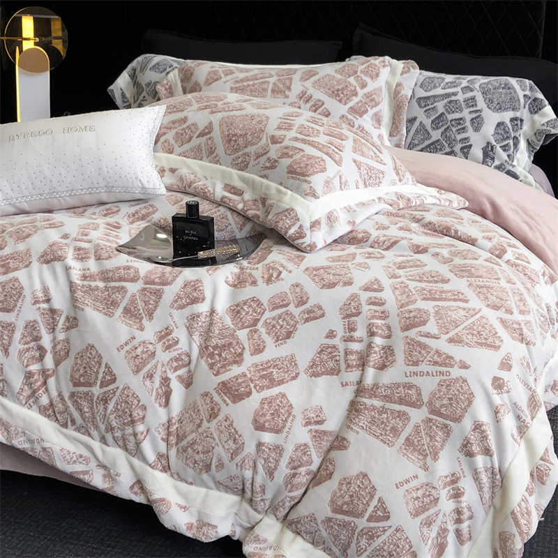 馨蕊家居 2024秋冬轻奢煦暖绒高精密刺绣绒寻密系列四件套 寻密-烟粉