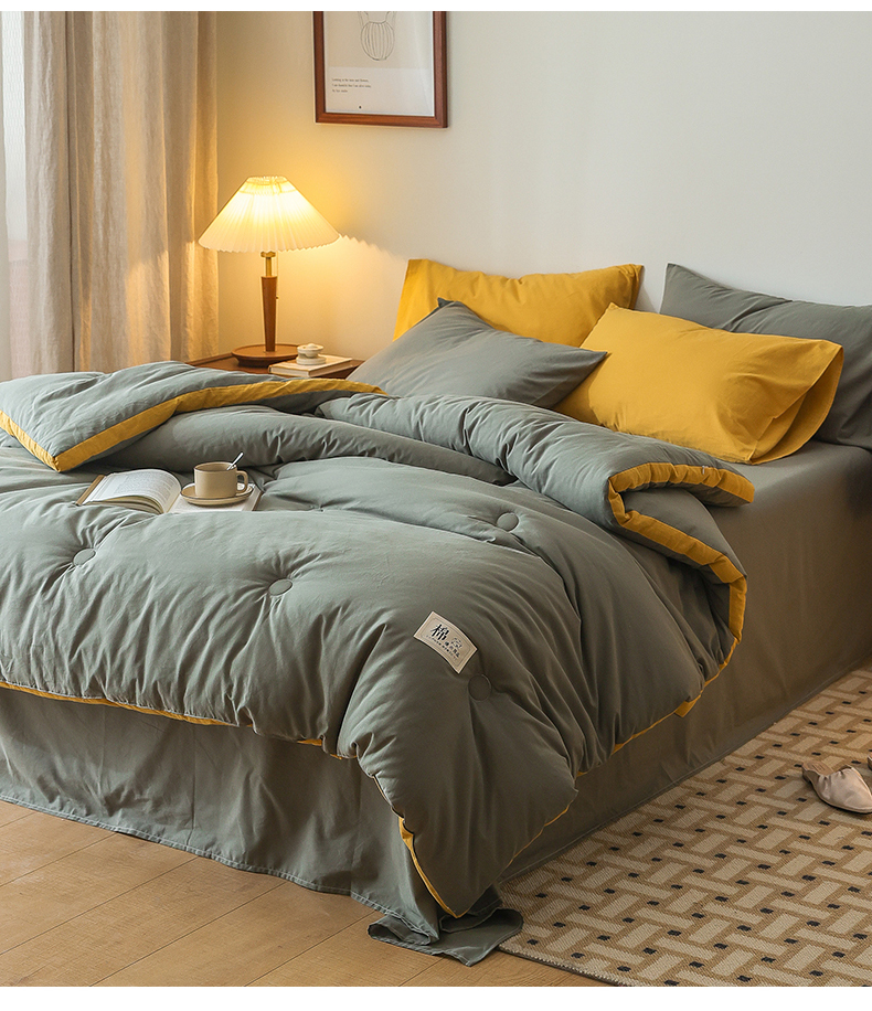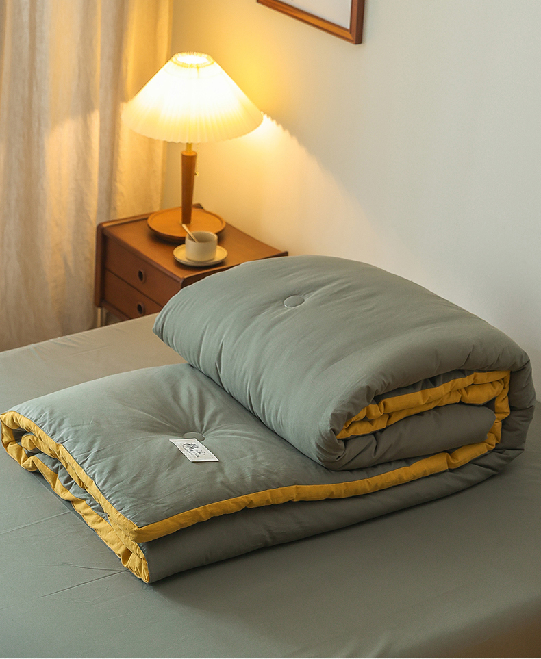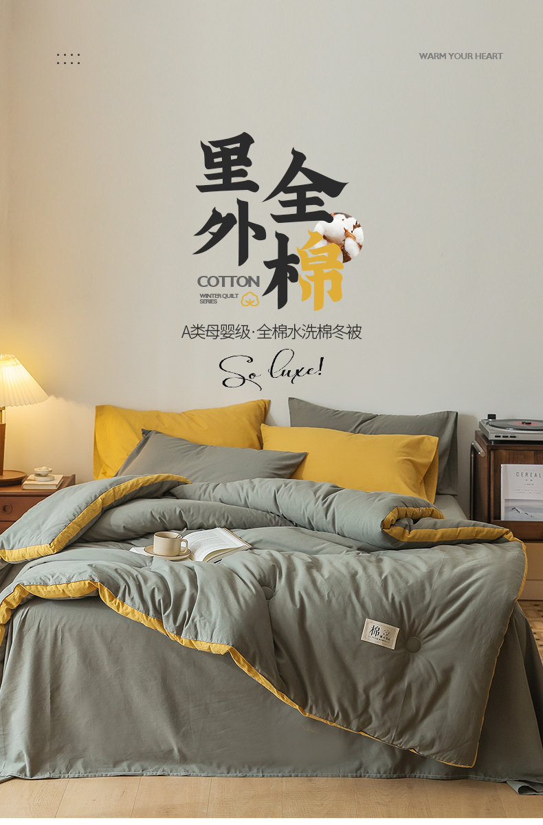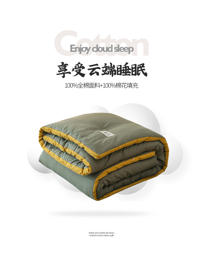 • 91家纺网 家纺一手货源 找家纺 雯雨家纺 2024新款里外全棉棉花被冬被 军绿黄