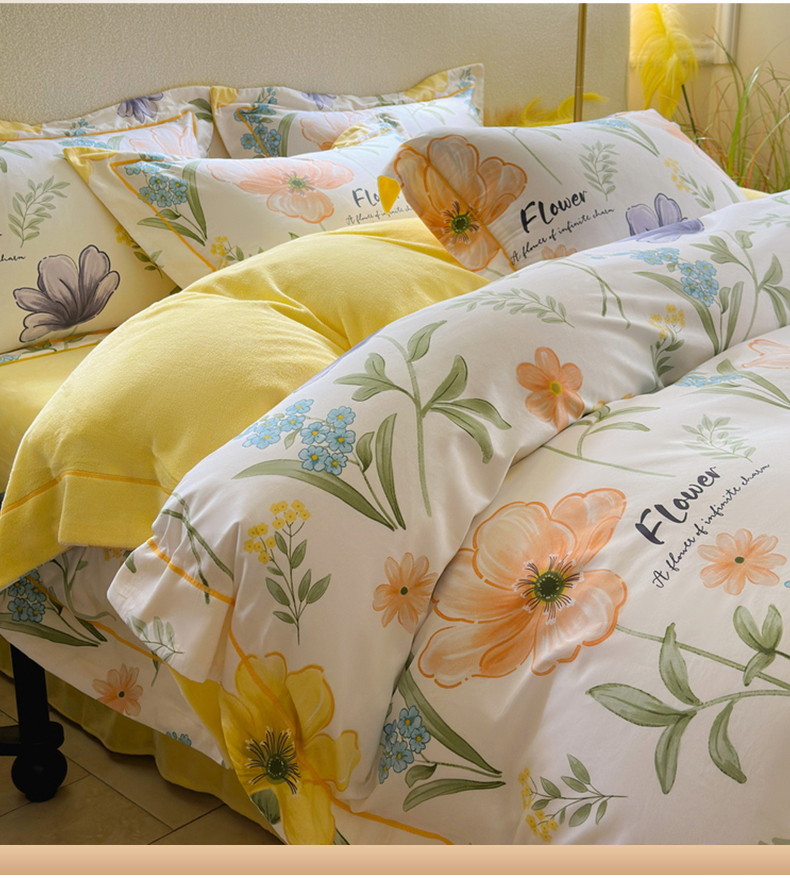(总)7V 小清新大宽边100%纯棉法式四件套轻奢13376全棉喷气宽幅长绒棉被套床单床笠套件,乐享时光,动感兔-米,半夏花海,南枝-粉,圈点幸福,小熊日记-米黄,幽韵飘香,枫叶格-蓝,简约世界,自由简约,花绘-粉,落落晨光-粉,雨蝶-绿