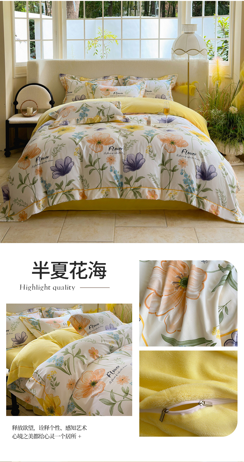 床上用品 > 被套 > 7V 2024新款单件被套A纯棉B牛奶绒轻奢大宽边一字绣A类133*76全棉喷气宽幅长绒棉高克重全工艺牛奶绒 半夏花海