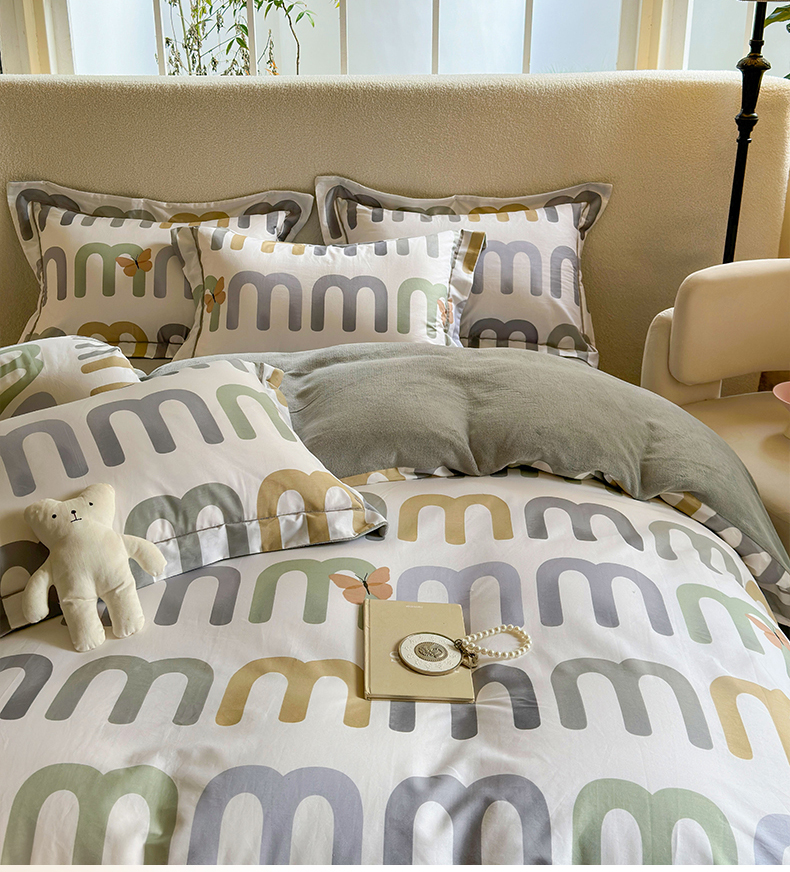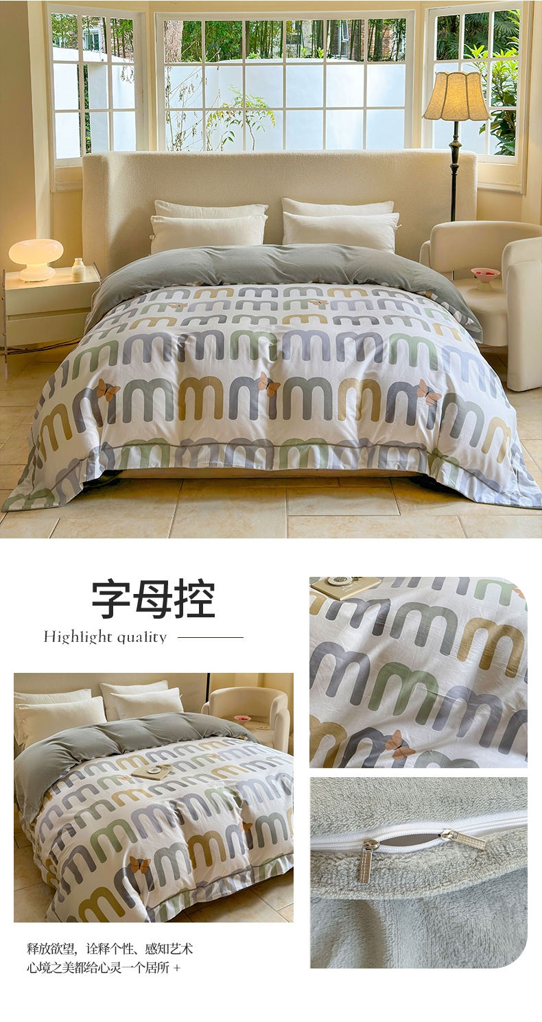 床上用品 > 被套 > 7V 2024新款单件被套A纯棉B牛奶绒轻奢大宽边一字绣A类133*76全棉喷气宽幅长绒棉高克重全工艺牛奶绒 字母控
