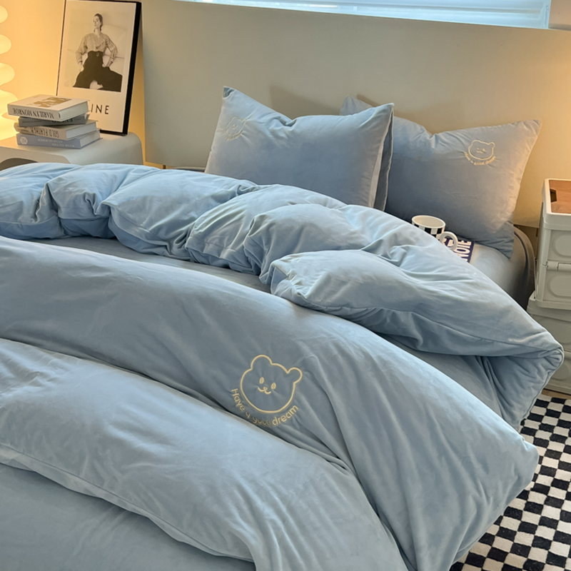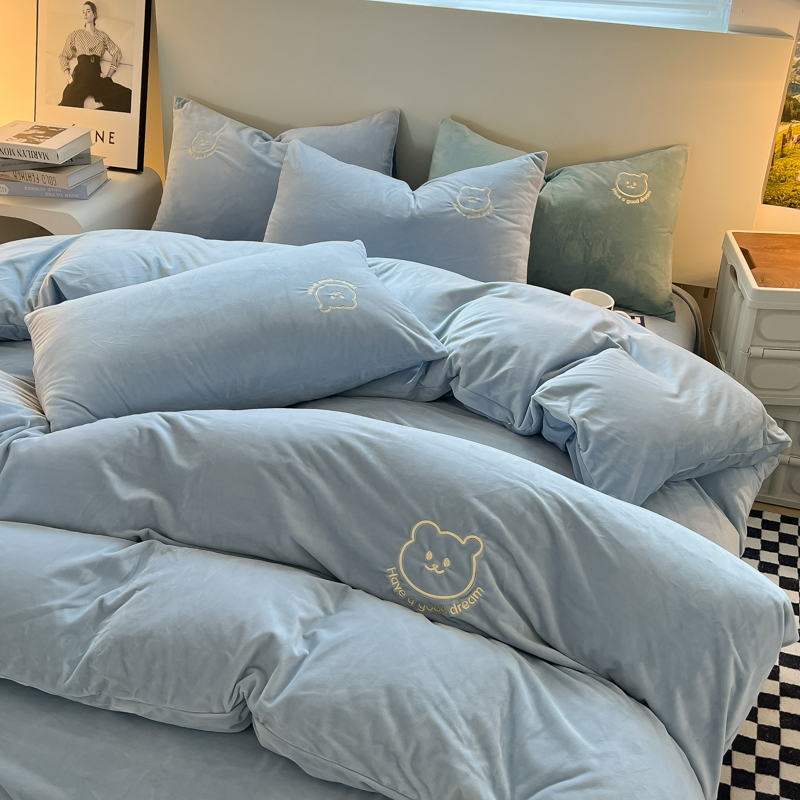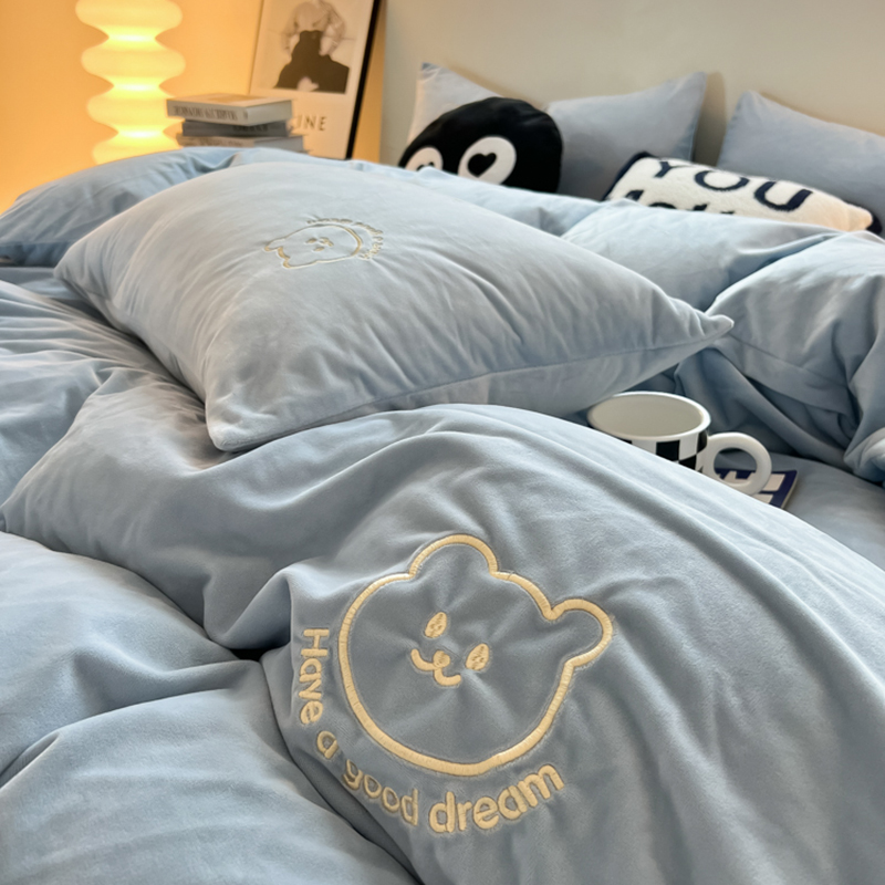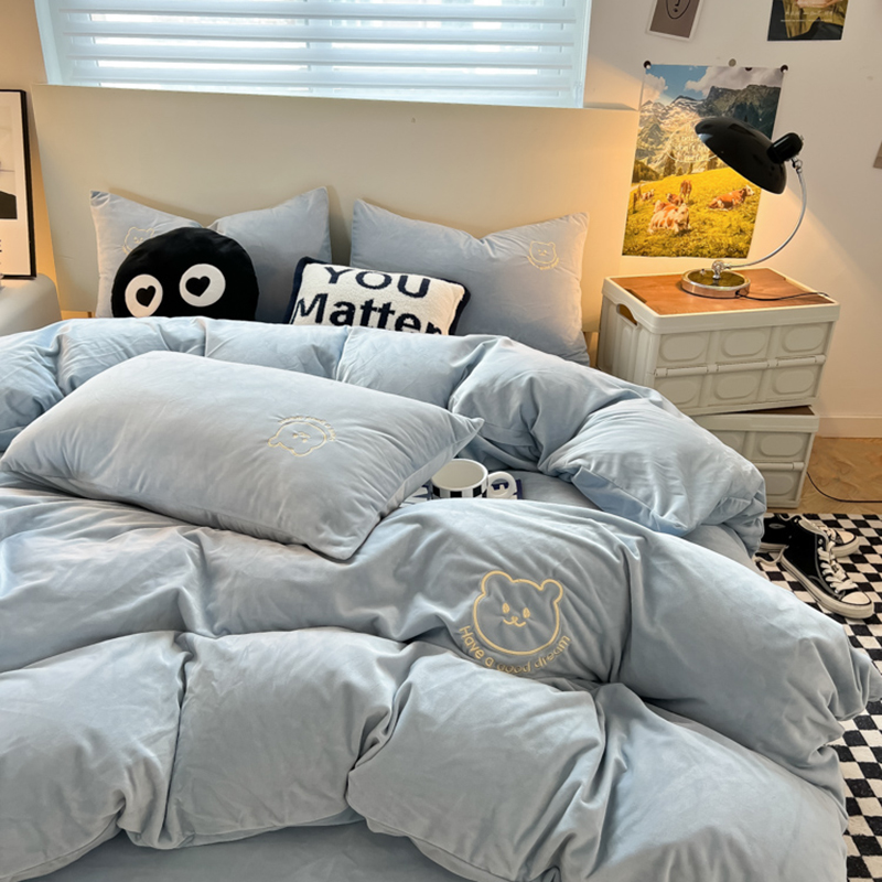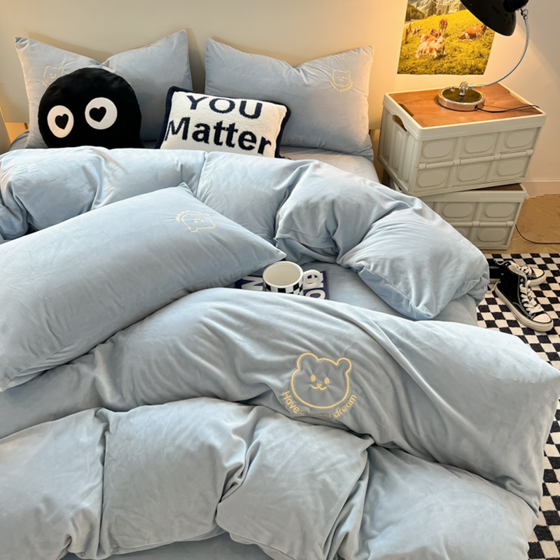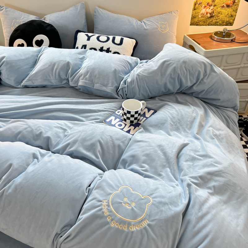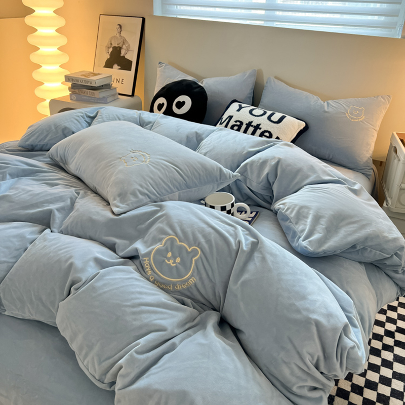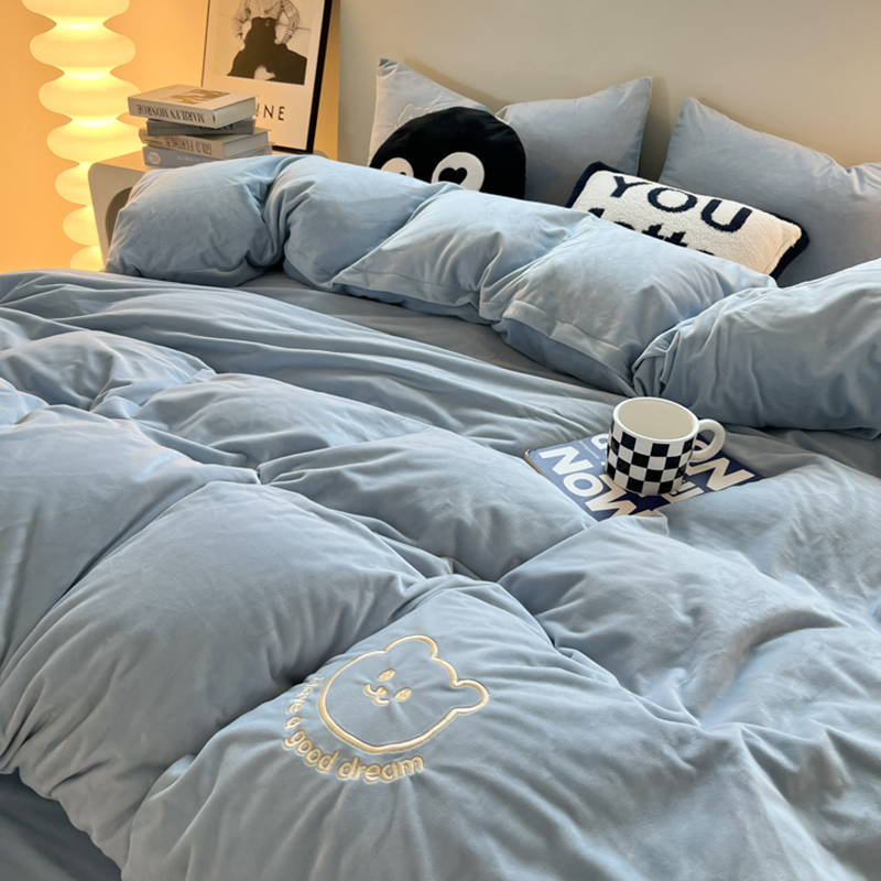 当前位置: 91家纺网 > 商品网购 > 床品套件 > 四件套 > 牛奶绒四件套 > yyds网供 【场景一】短绒小熊刺绣水晶绒四件套轻奢秋冬牛奶绒简约-小熊系列 小熊-浅兰