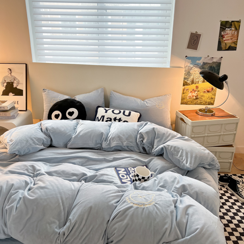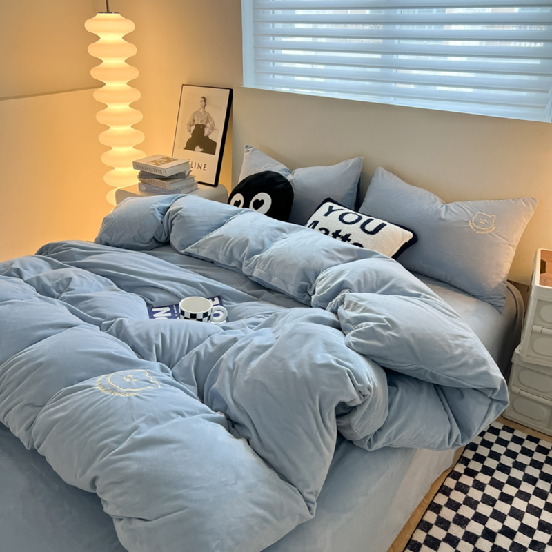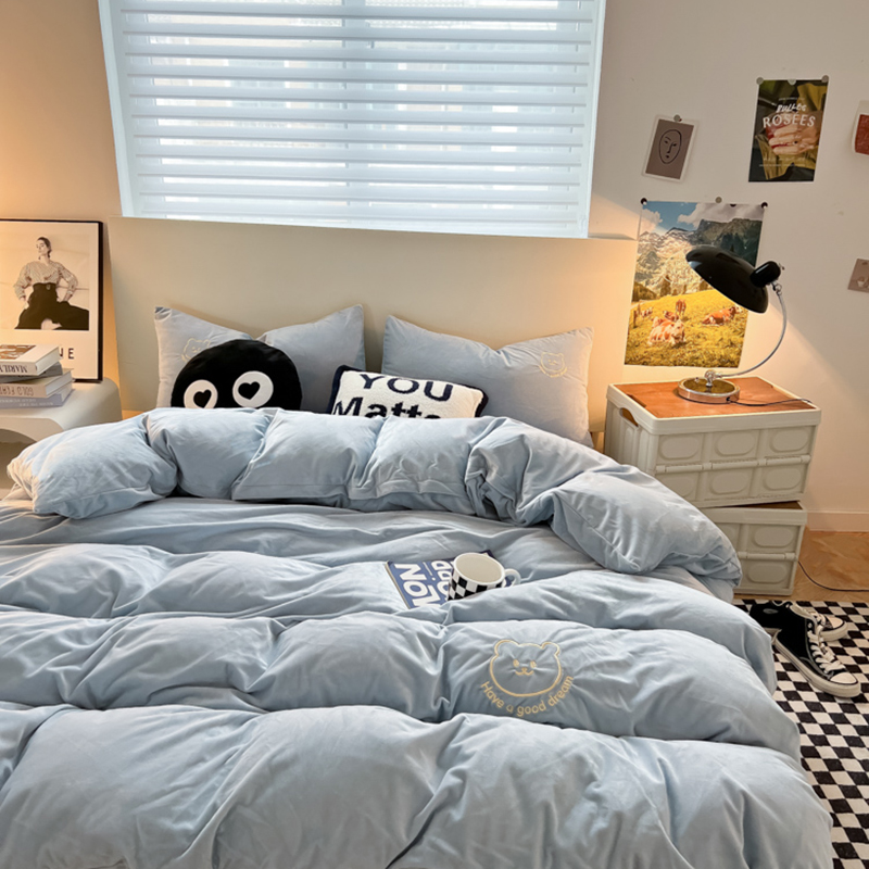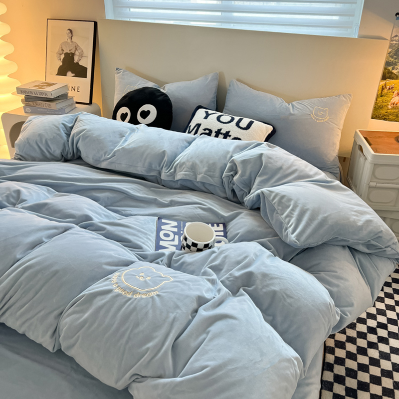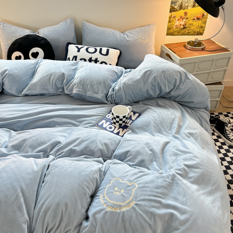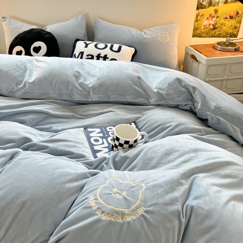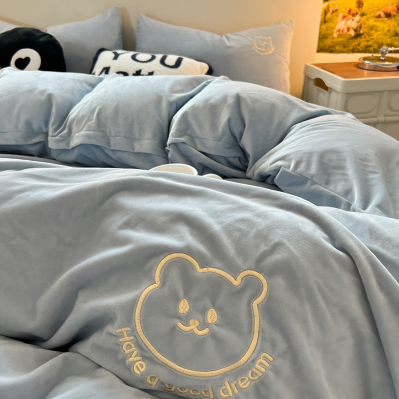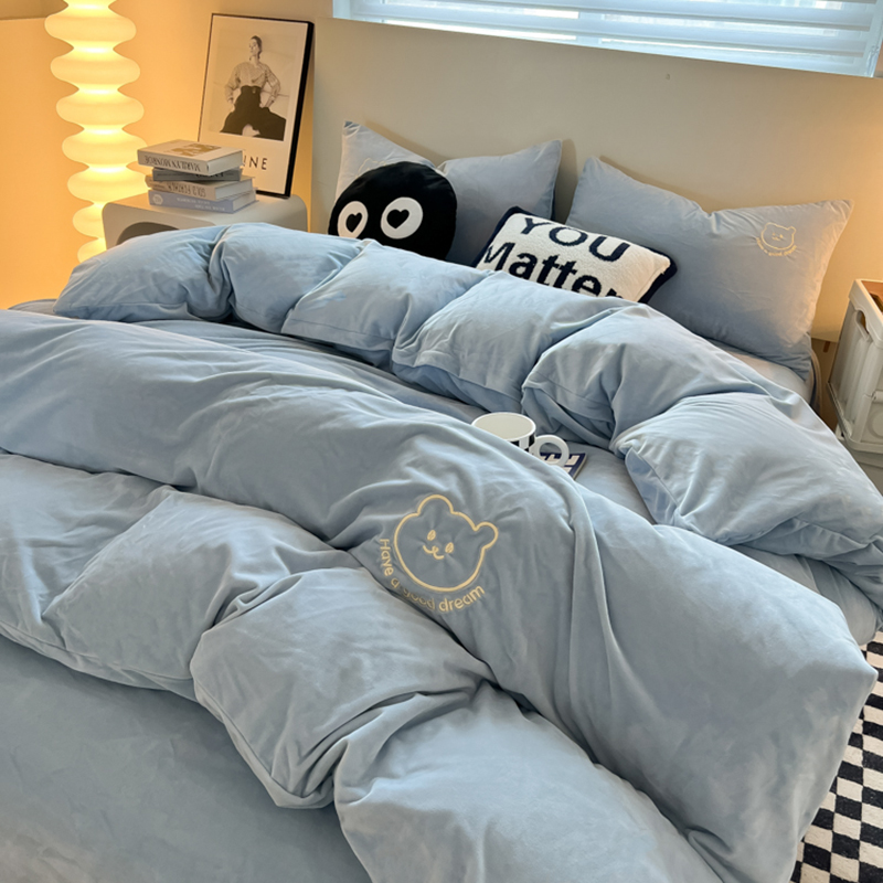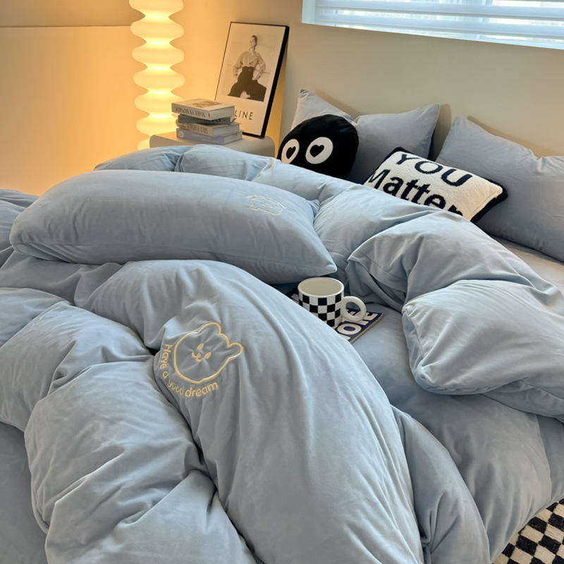当前位置: 91家纺网 > 商品网购 > 床品套件 > 四件套 > 牛奶绒四件套 > yyds网供 【场景一】短绒小熊刺绣水晶绒四件套轻奢秋冬牛奶绒简约-小熊系列 小熊-浅兰