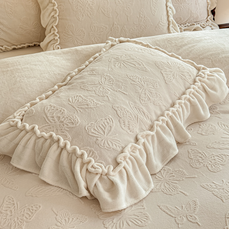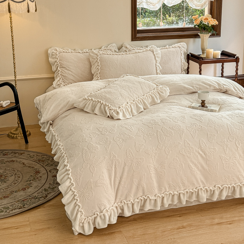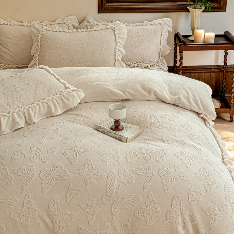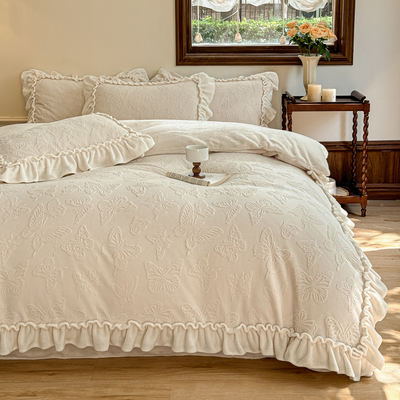 当前位置: 91家纺网 > 商品网购 > 床品套件 > 四件套 > 牛奶绒四件套 > 小主驾到 2024新款雕花绒牛奶绒花边款轻奢法式蝴蝶烂花公主风四件套 梦笙蝶白