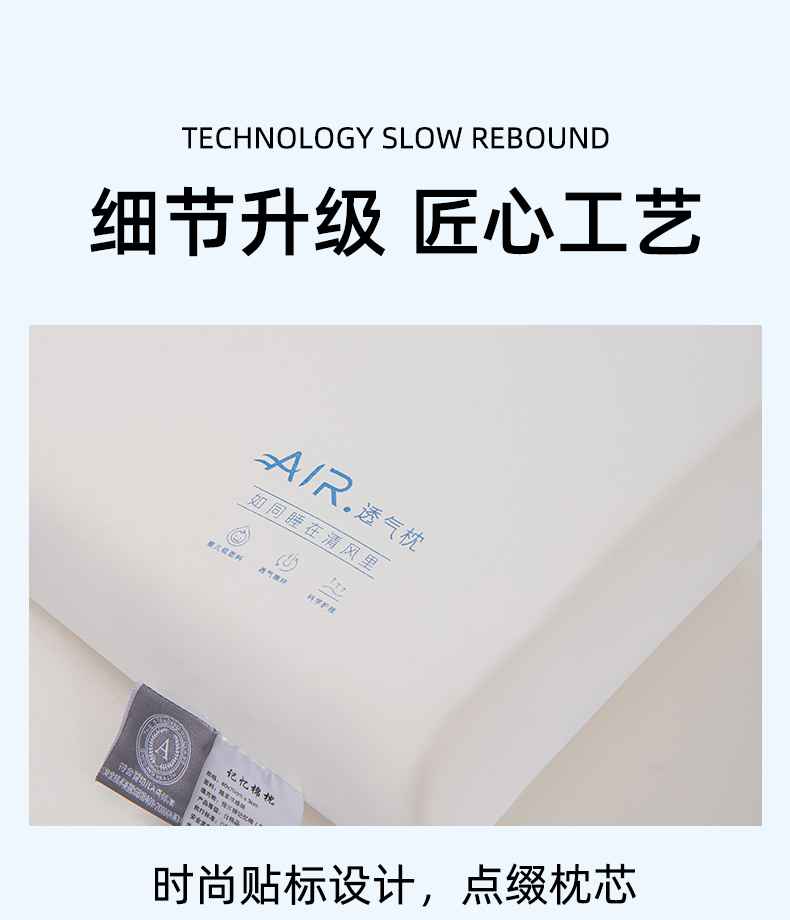 当前位置: 91家纺网 > 商品网购 > 枕头/枕芯/保健枕/颈椎枕 > 普通枕芯 > 织布人 2024新款记忆枕A类牛奶丝AIR透气零压慢回弹记忆枕头枕芯 AIR透气记忆枕-白色42*70cm/一对