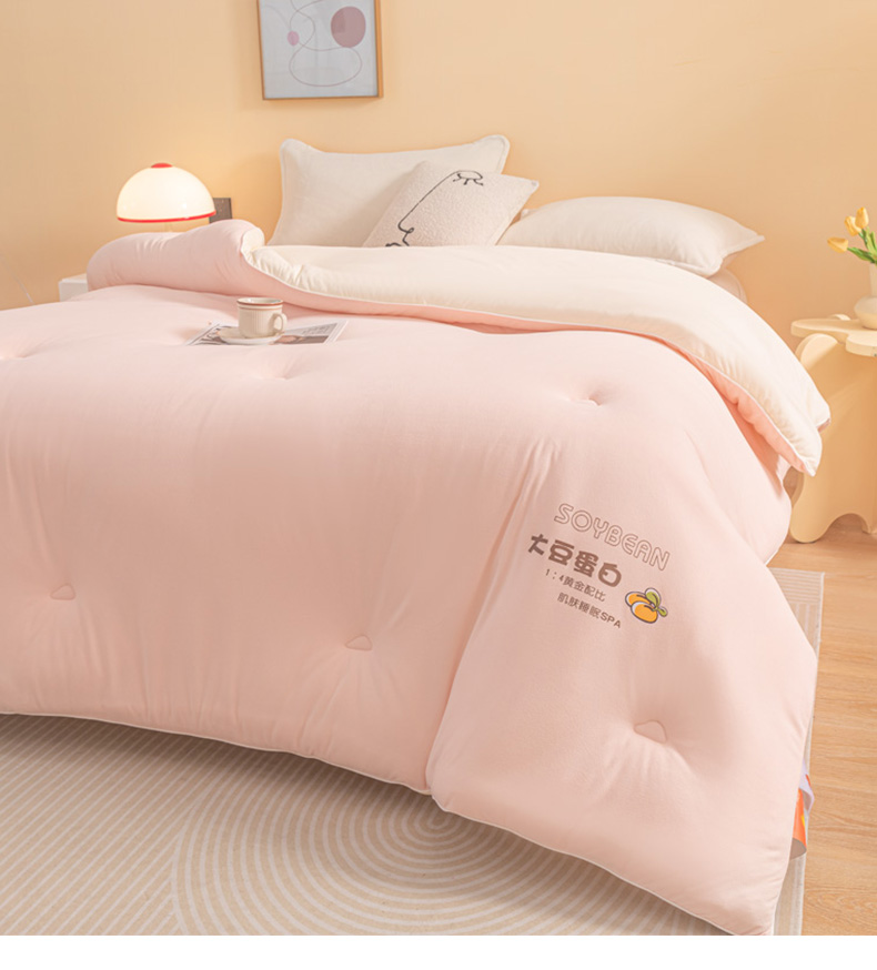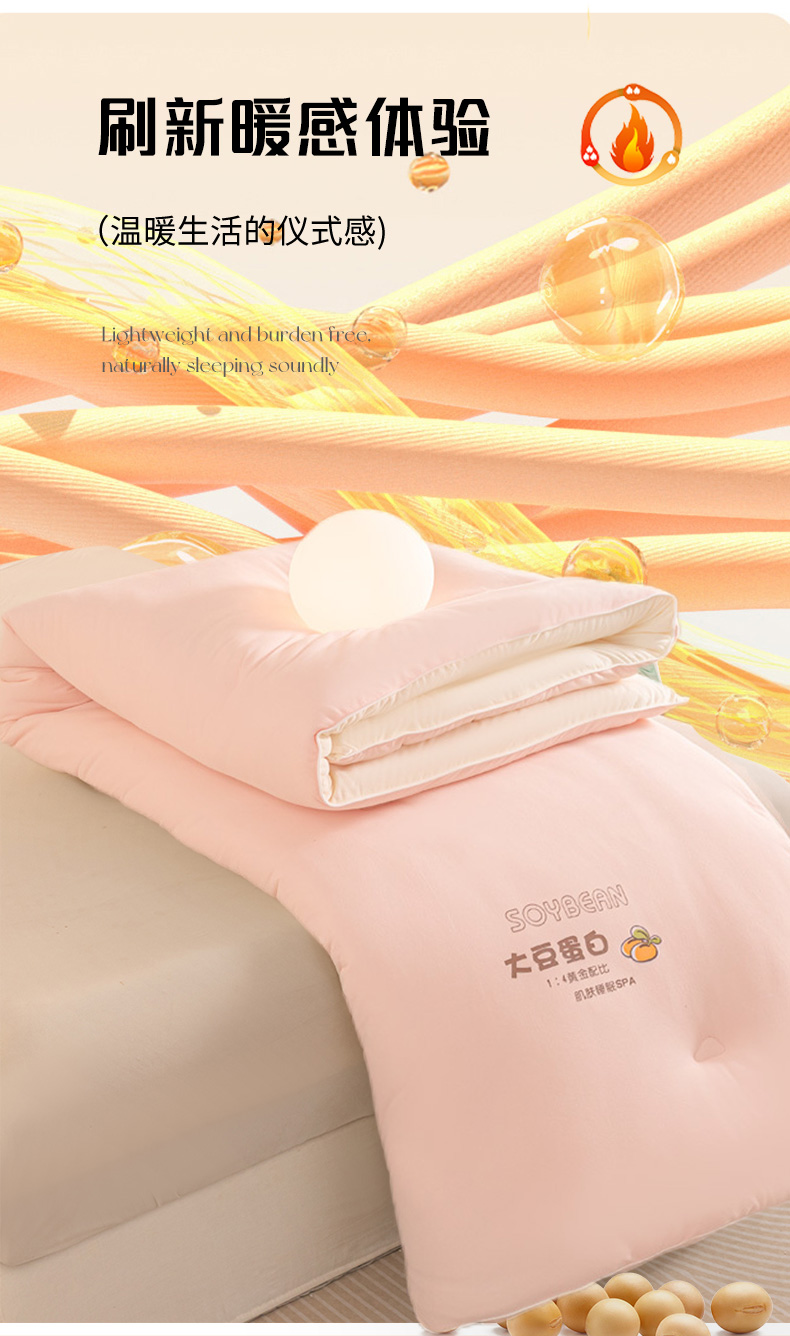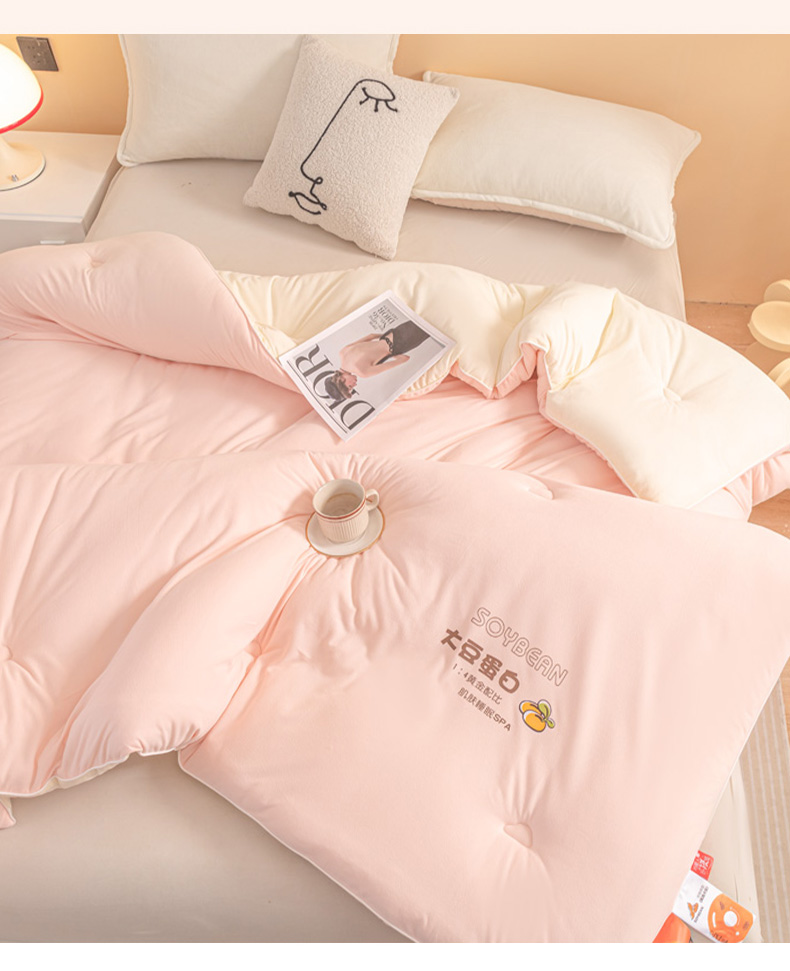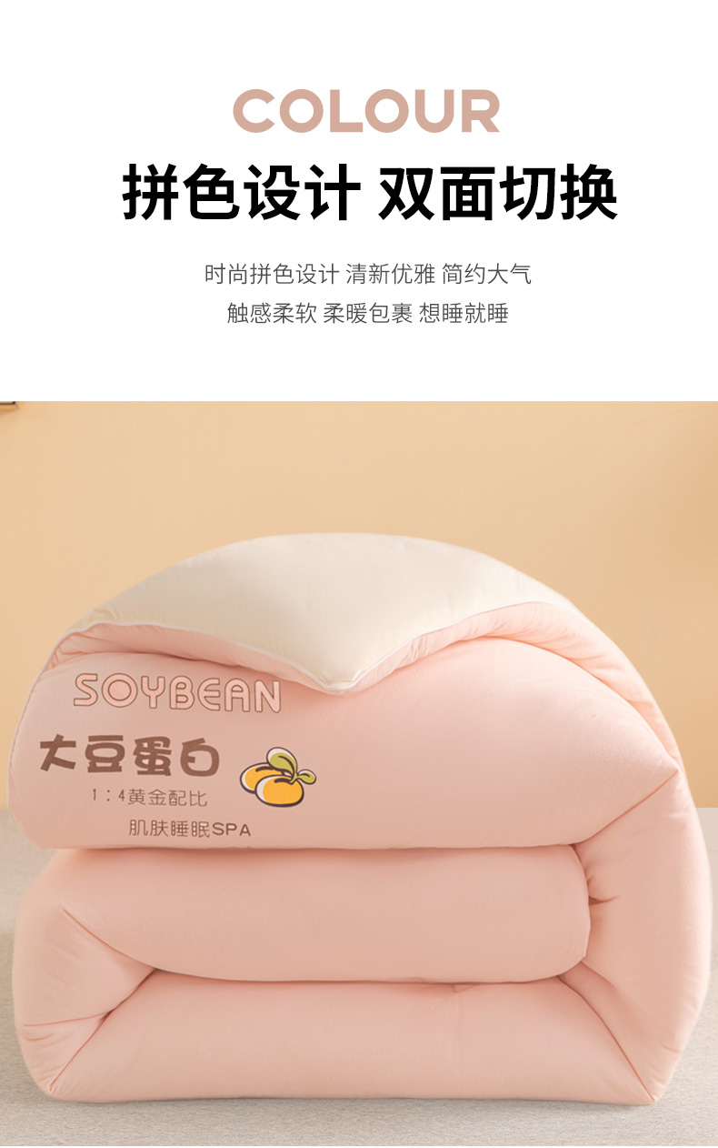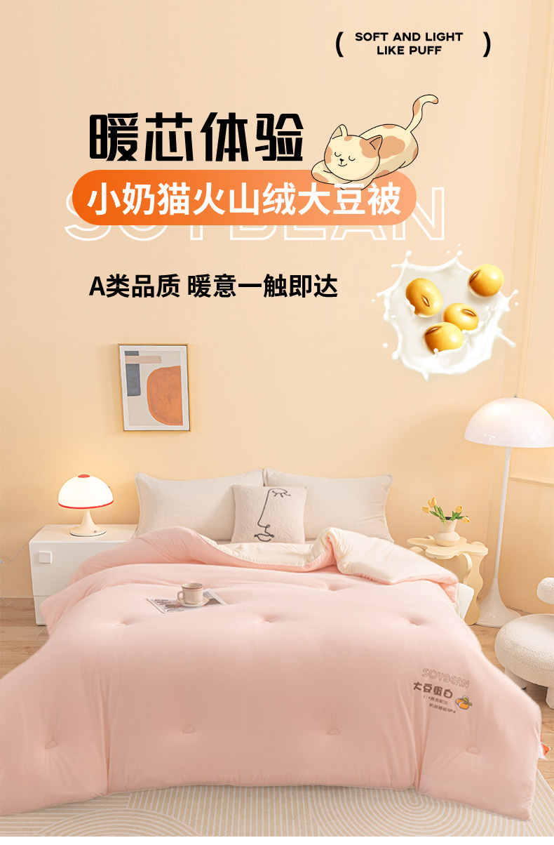 商品名称:金喜 2024爆款AB双拼奶盖被火山绒针织软软奶盖被春秋被冬被四季被 奶油粉米黄双拼