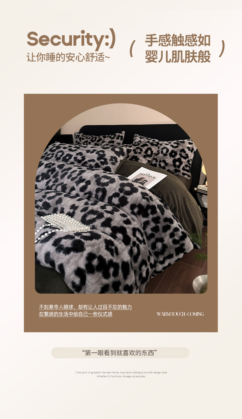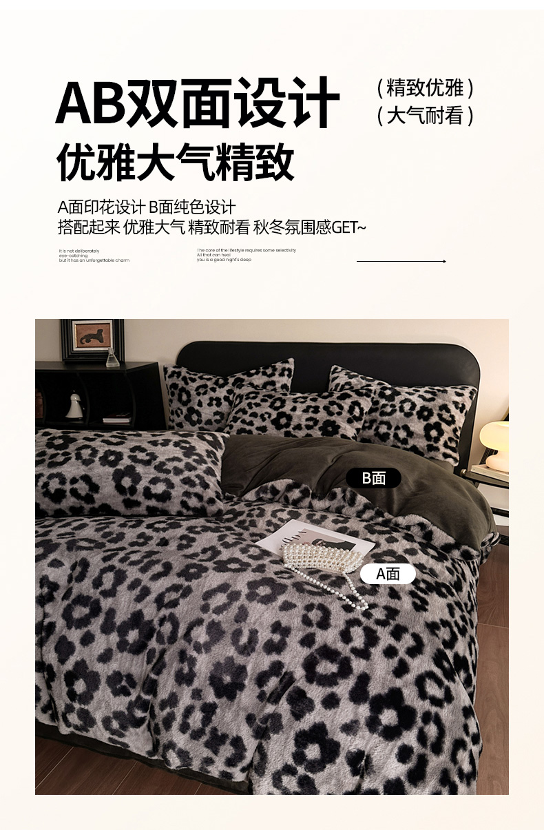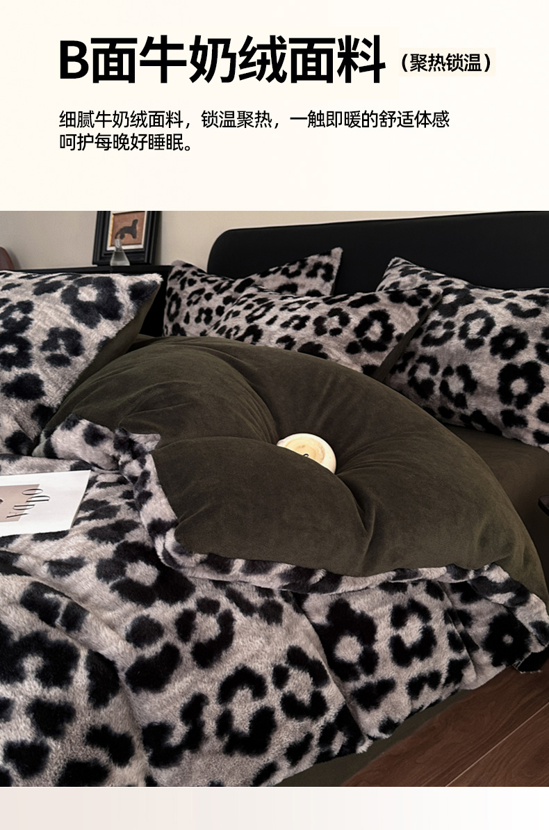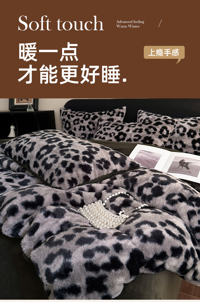 丝印良品 2024秋冬新款丹麦兔毛绒牛奶绒四件套豹纹-灰