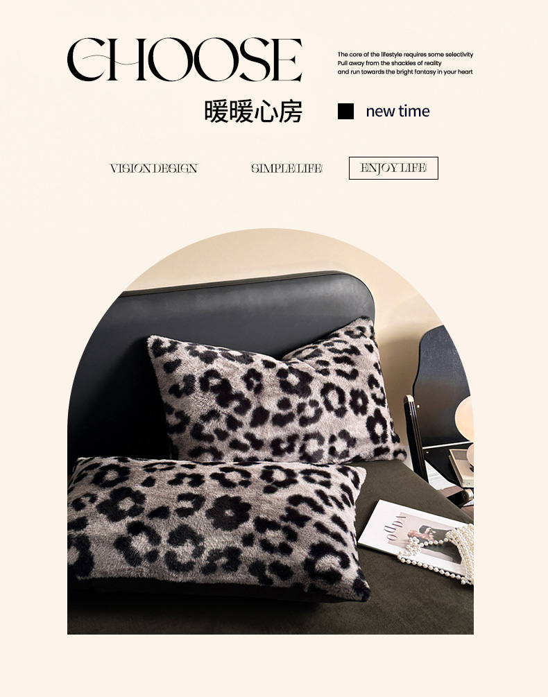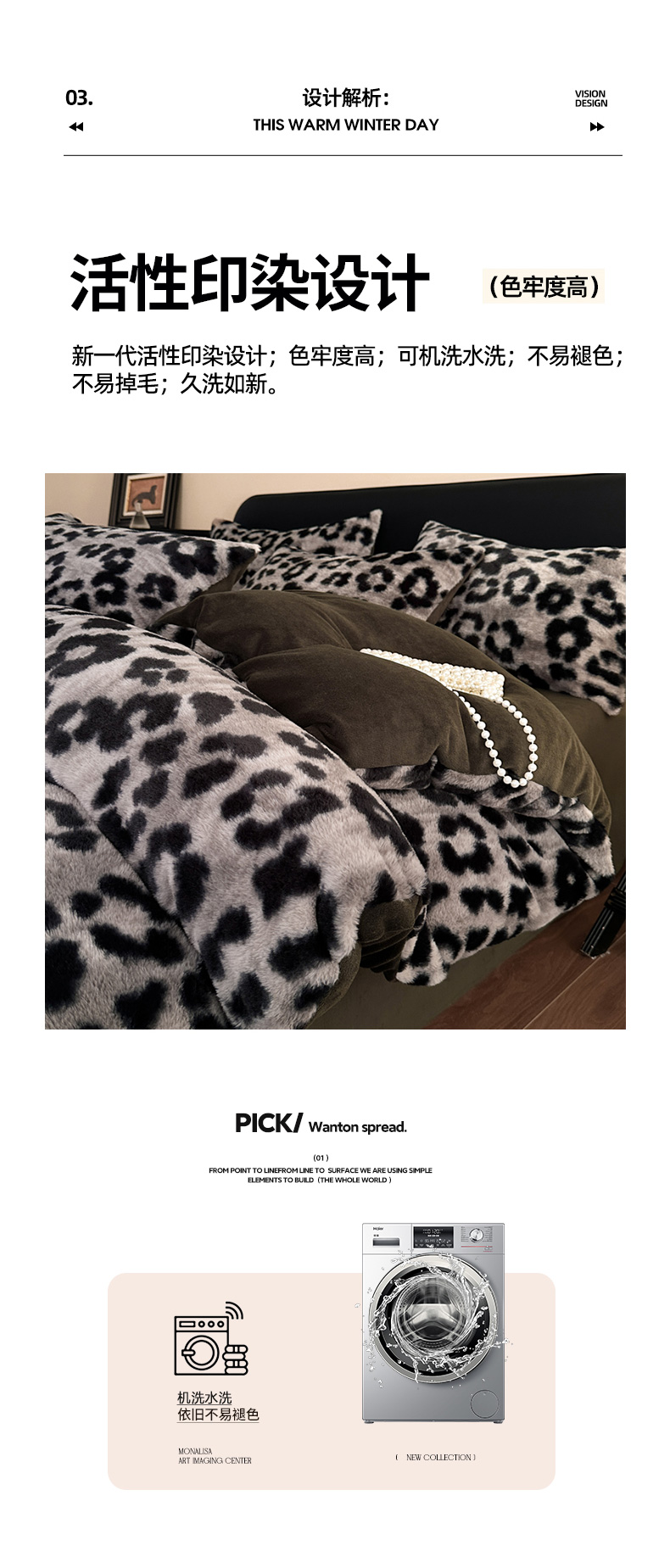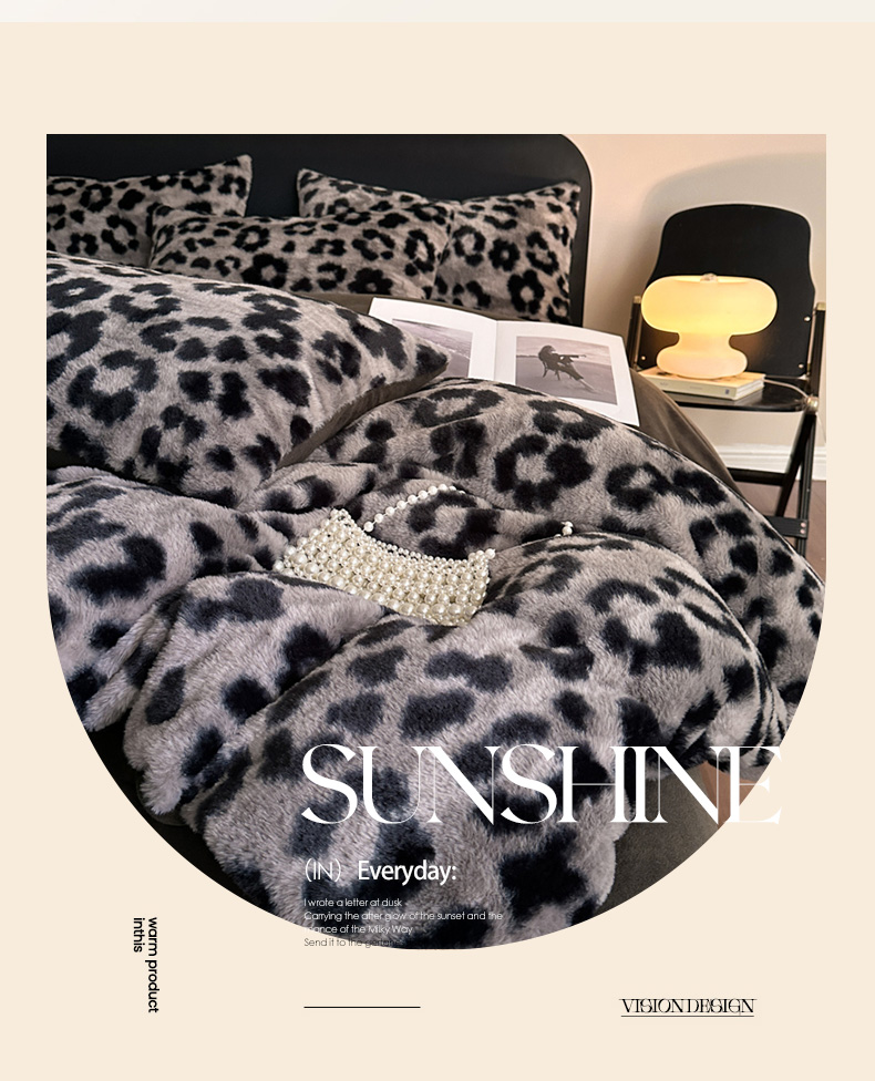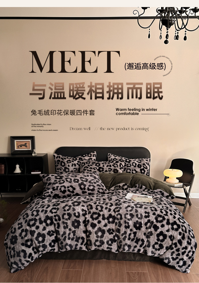 丝印良品 2024秋冬新款丹麦兔毛绒牛奶绒四件套豹纹-灰